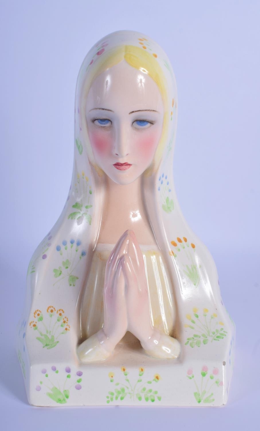 A RARE LENCI EARTHENWARE BUST OF MADONNA C1932 by Paola Bologna, modelled praying, wearing a floral veil. 22 cm x 12 m.