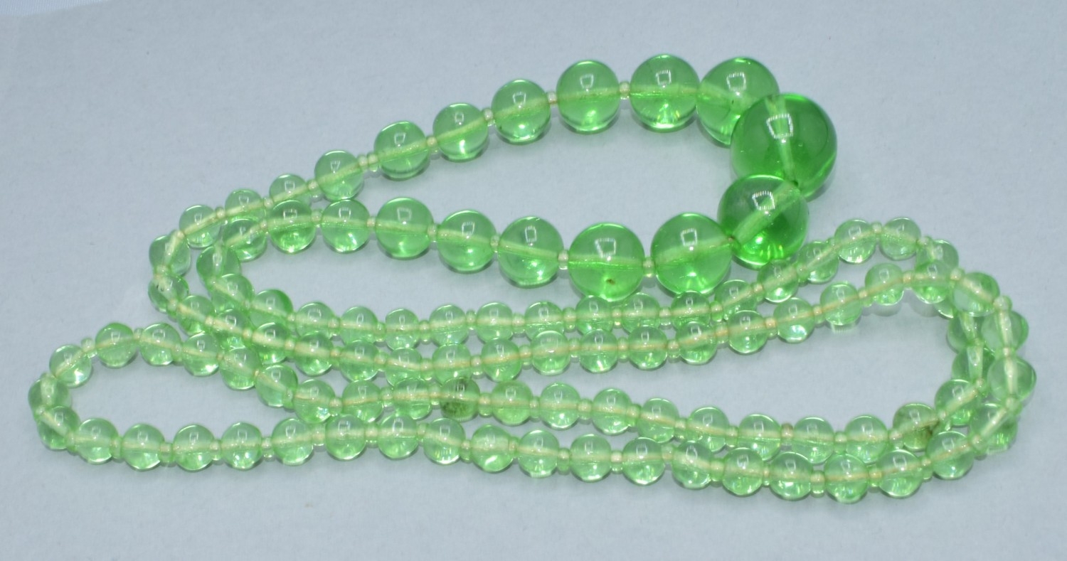 Vintage Uranium graduated bead necklace (glows in the UV light) 70cm long
