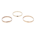 THREE MODERN 9CT GOLD THREE COLOUR BRACELETS OF VARYING DESI...