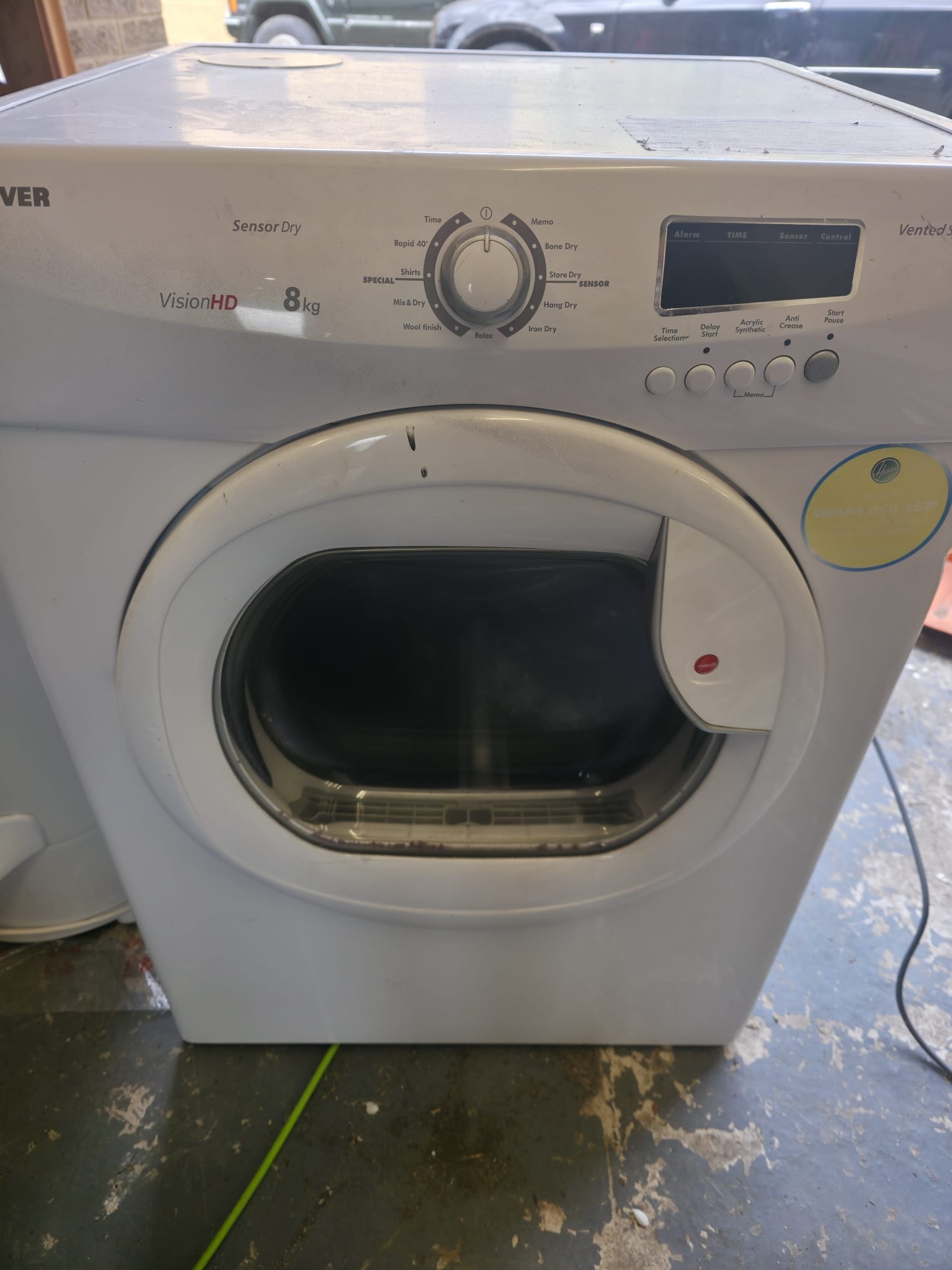 A pair of domestic appliances comprising a Hoover VisionHD 8kg vented tumble dryer with sensor dry programmes and digital display, together with a White Knight spin dryer.