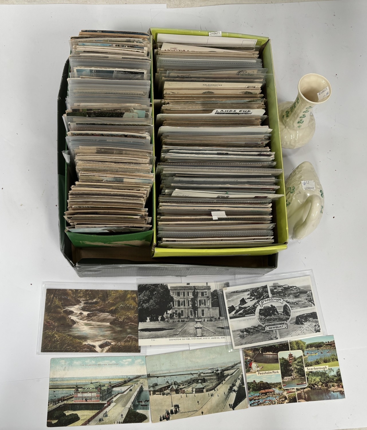 A Belleek Swan and vase; a large selection of unmounted postcards