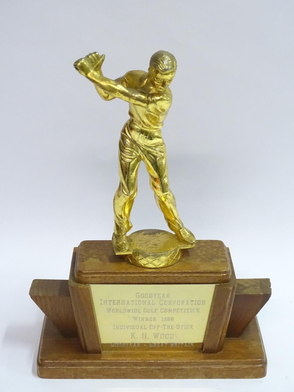 Golf: A 1966 Goodyear International Corporation Worldwide Golf Competition Winner (trophy) Individual off-the-stick KHWood Goodyear Great Britain, 12 3/4'' high