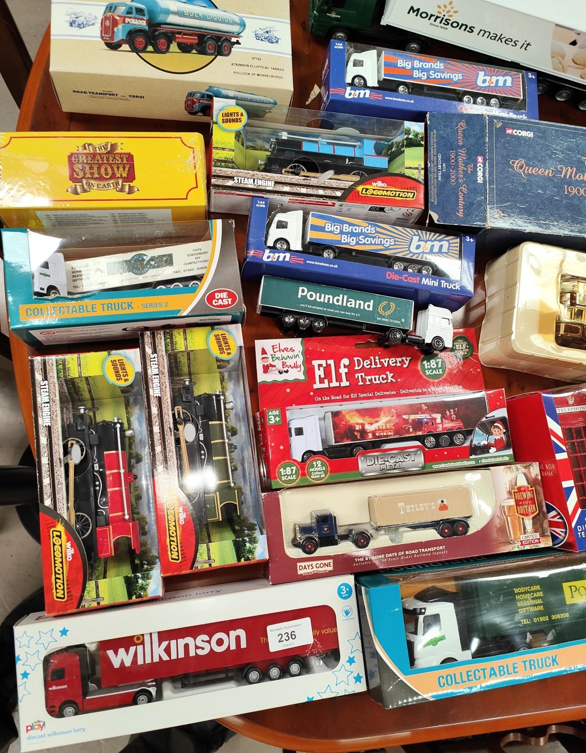A selection of mainly boxed diecast lorry and long haulage vehicles and other including Corgi Classics Atkinson Tanker, Queen mother Tram etc