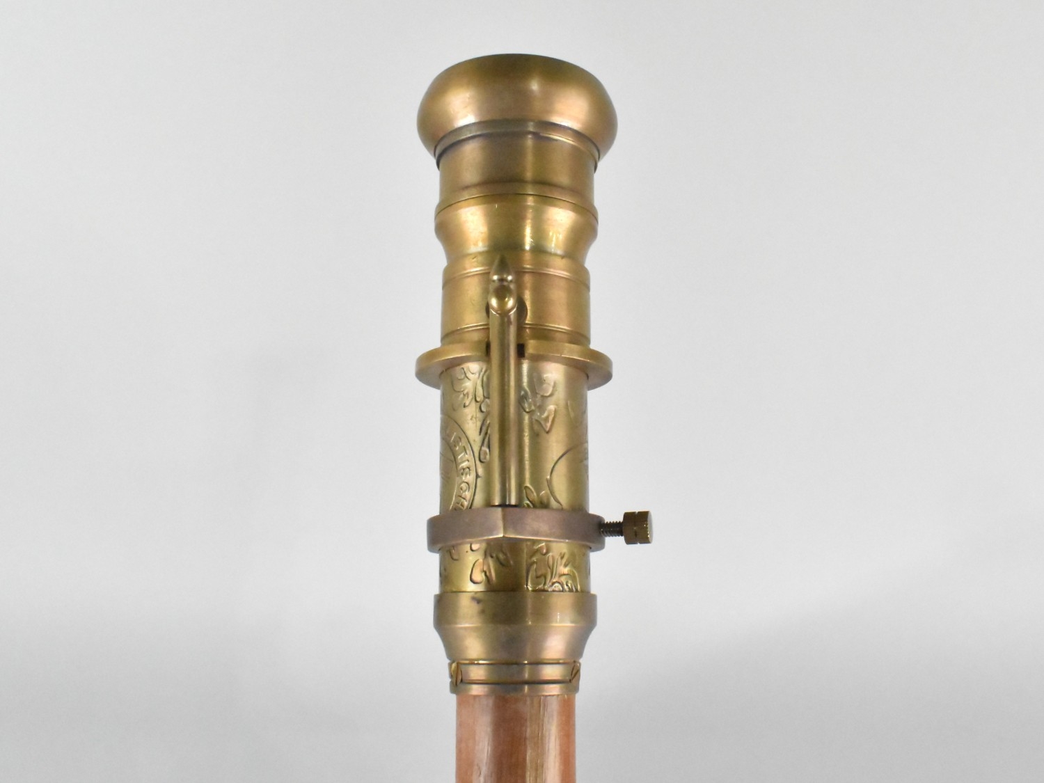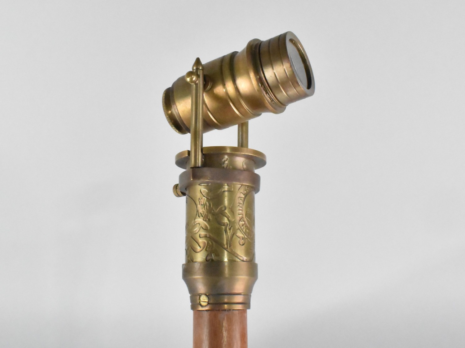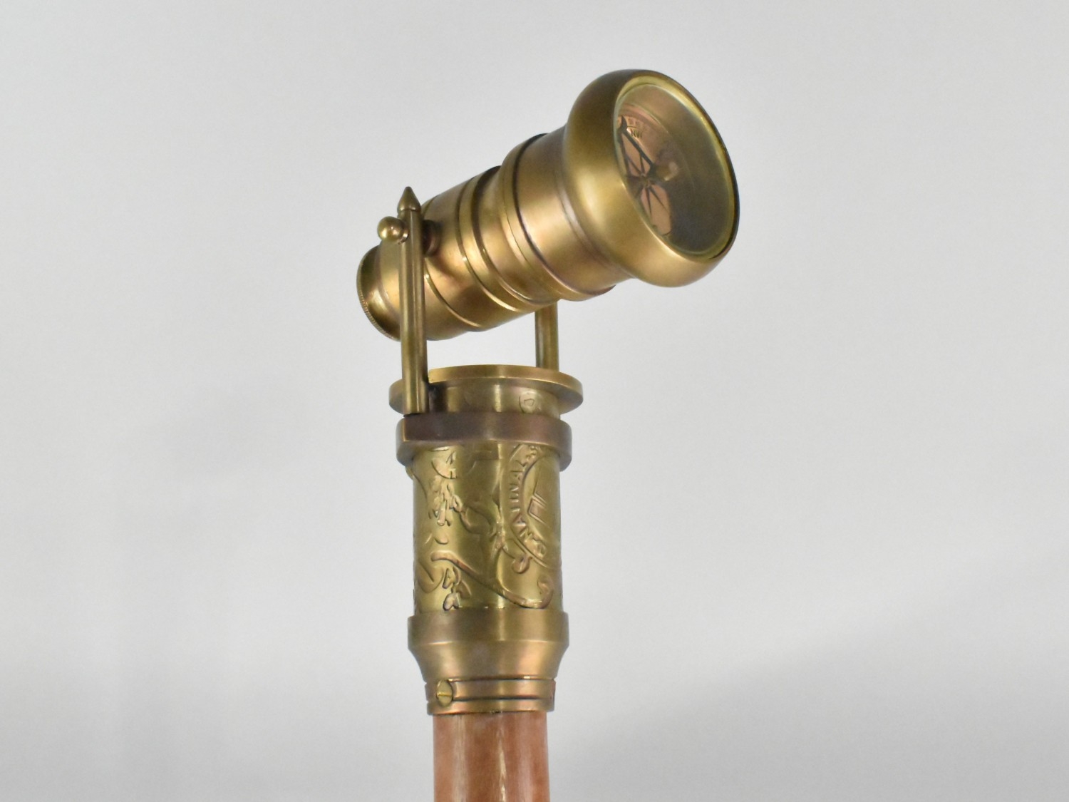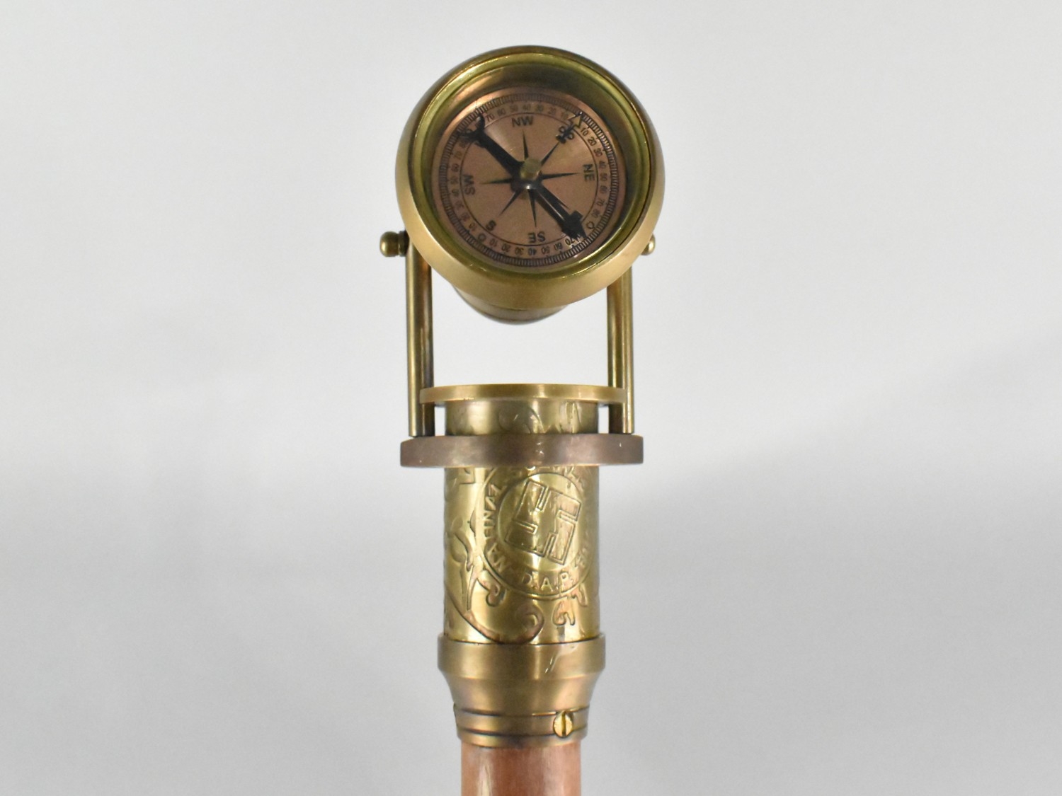 A Wooden Walking Cane with Brass Handle which Converts to Telescope and has Screw off Compass Top