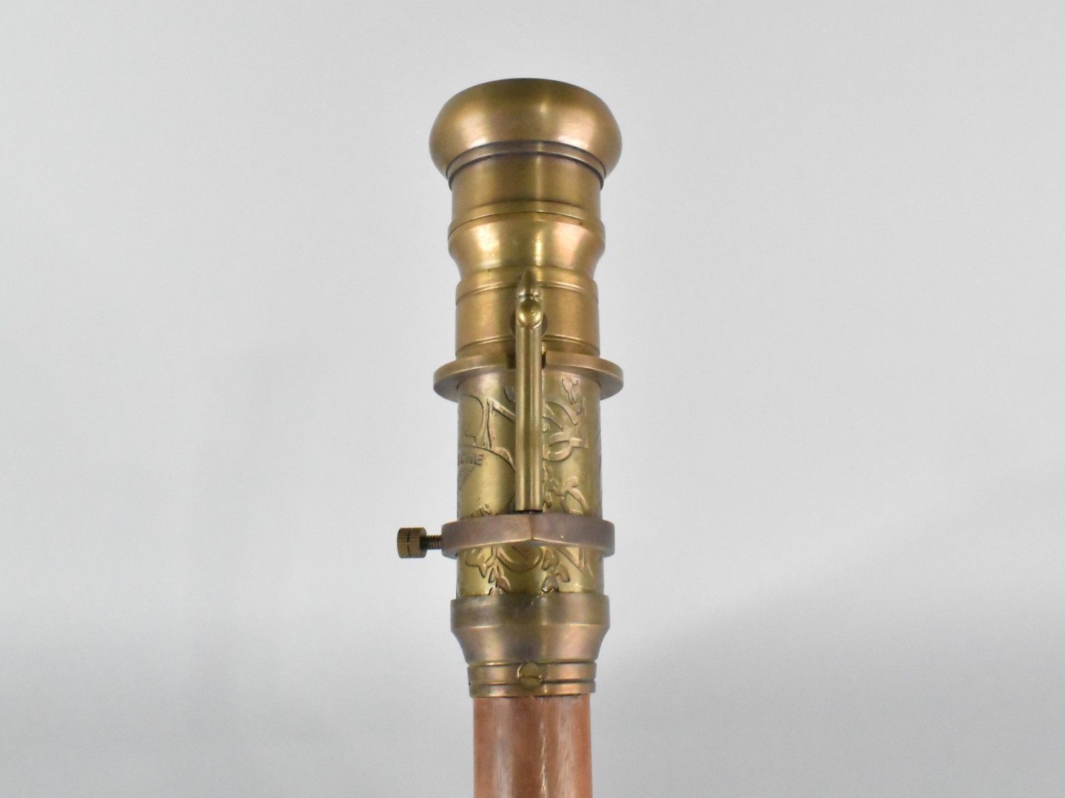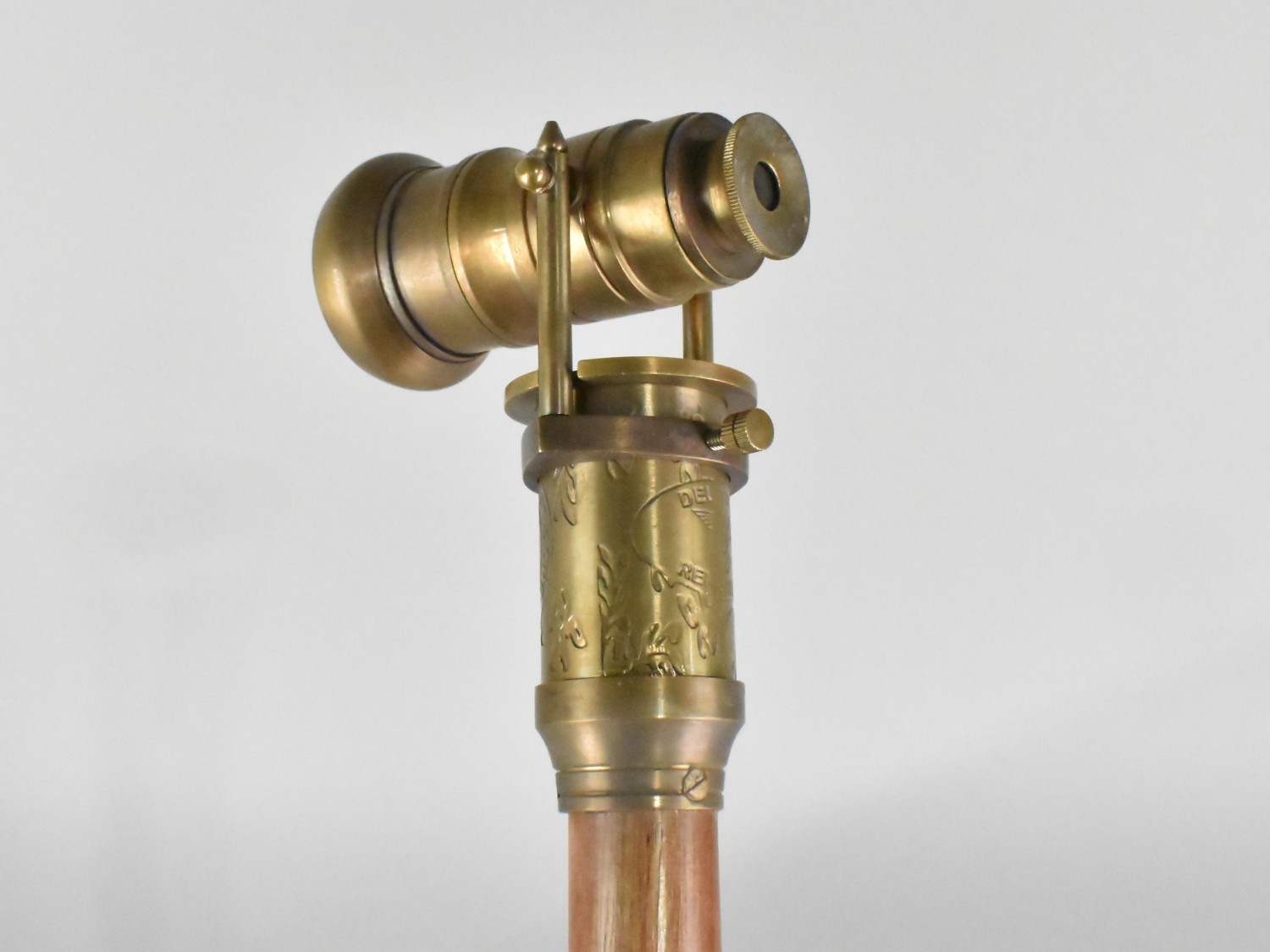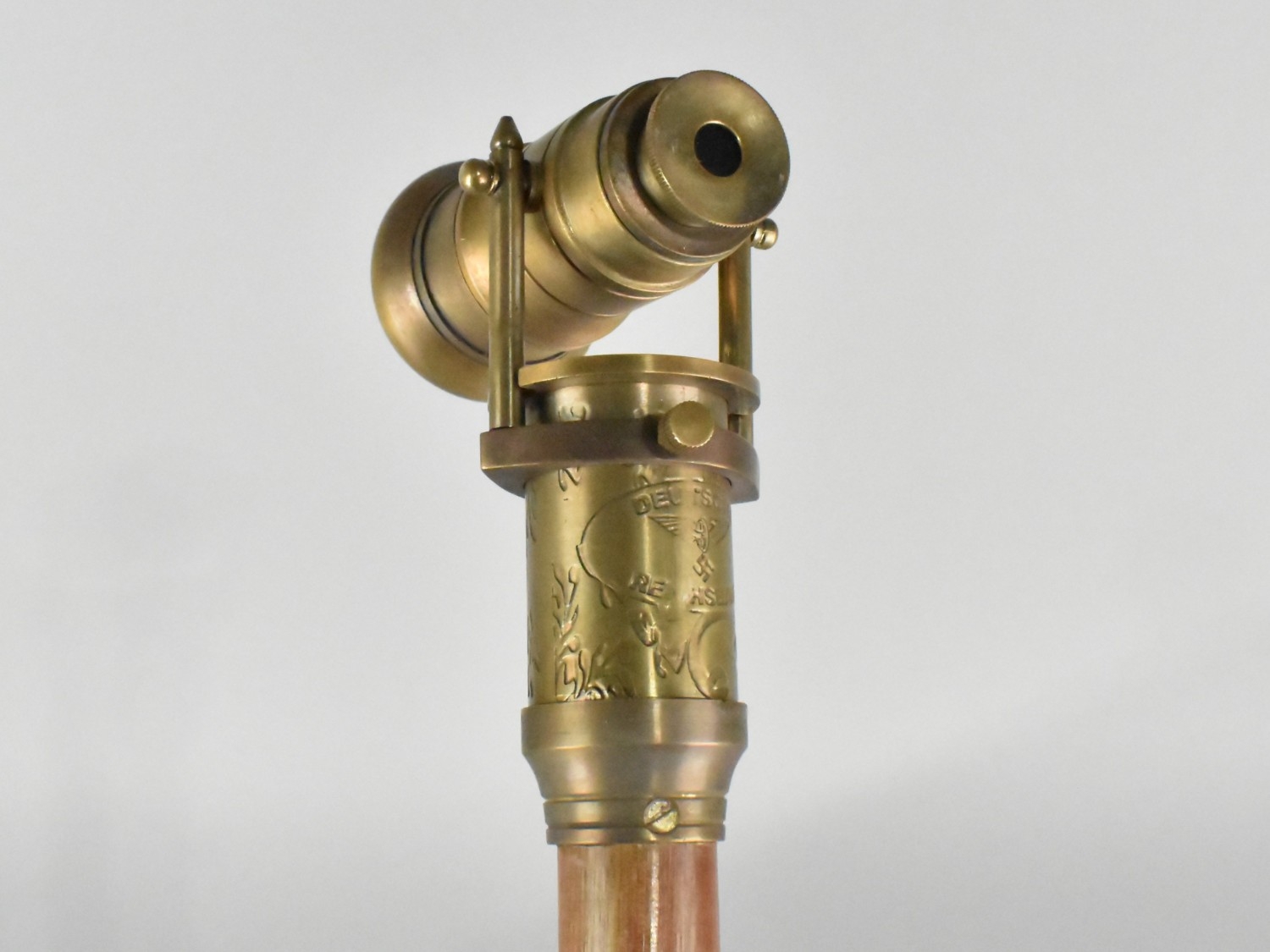 A Wooden Walking Cane with Brass Handle which Converts to Telescope and has Screw off Compass Top