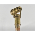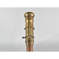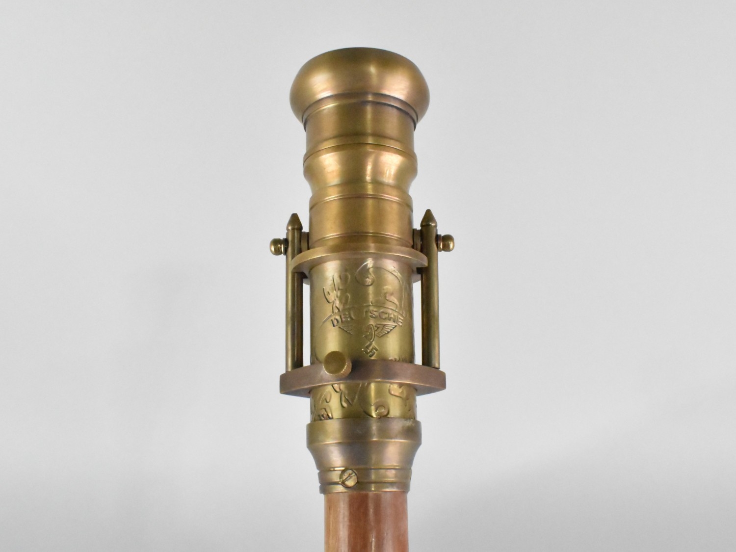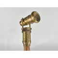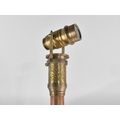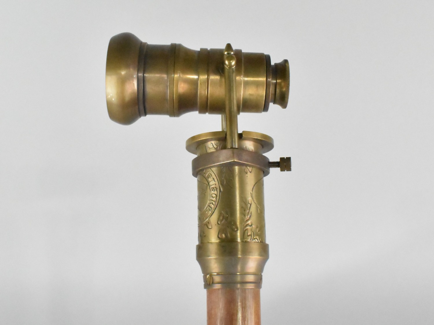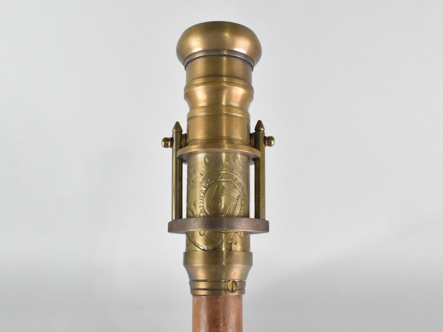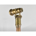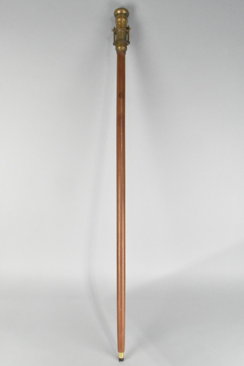 A Wooden Walking Cane with Brass Handle which Converts to Telescope and has Screw off Compass Top