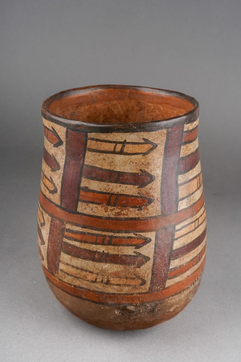 Nazca culture, Peruvian polychrome tall beaker, made from terracotta, approx. 15 cm tall