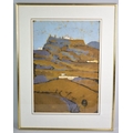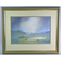A Framed Mid Century Painted Silk, Continental Landscape, Subject 34x49cm