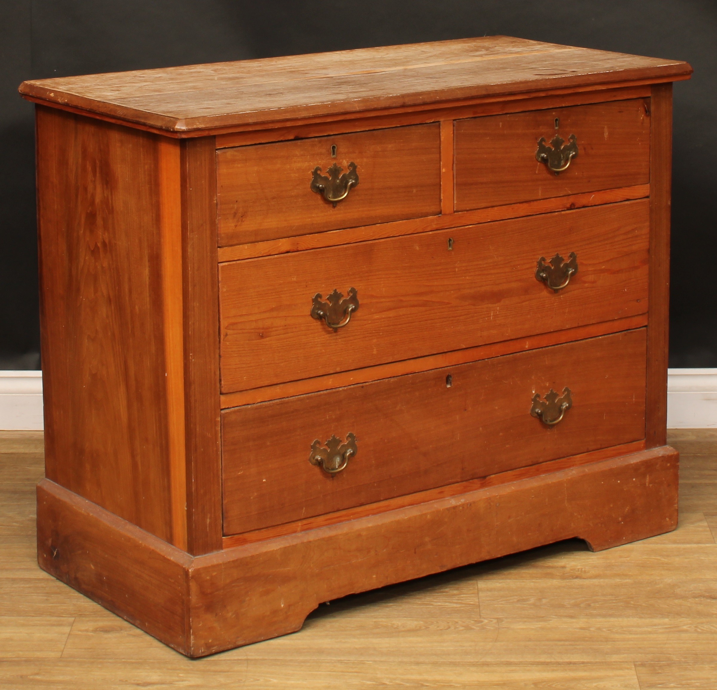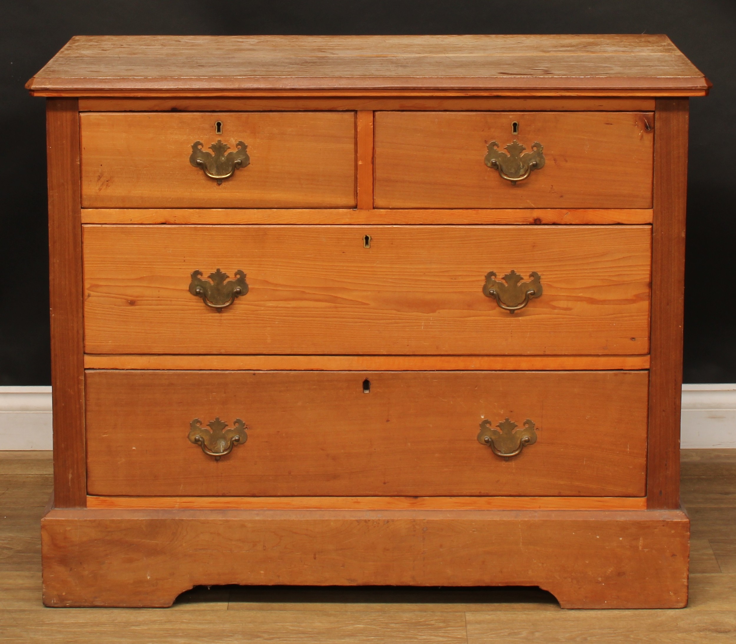 An early 20th century pine chest, of two short and two long drawers, 82cm high, 102cm wide, 52cm deep
