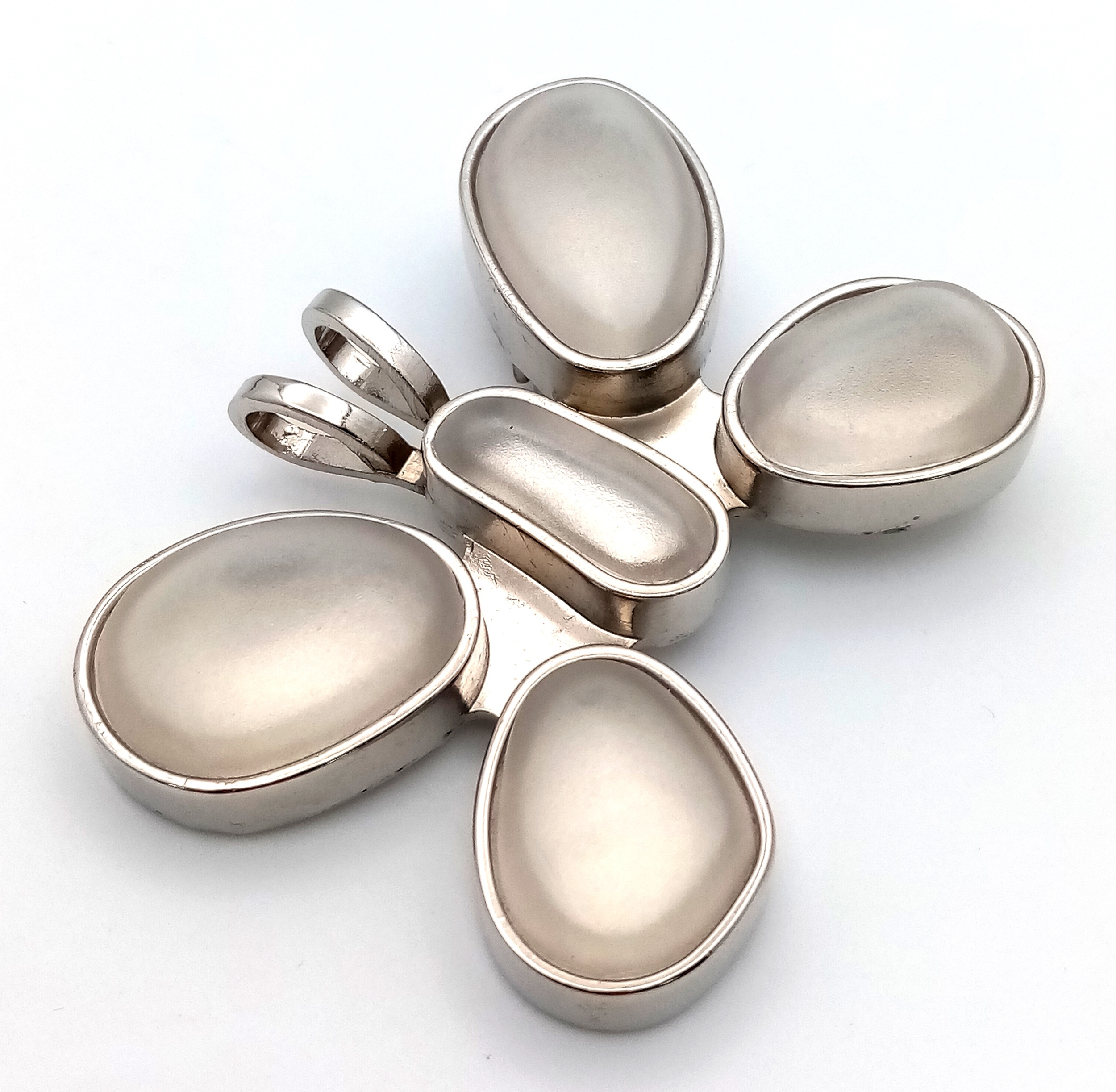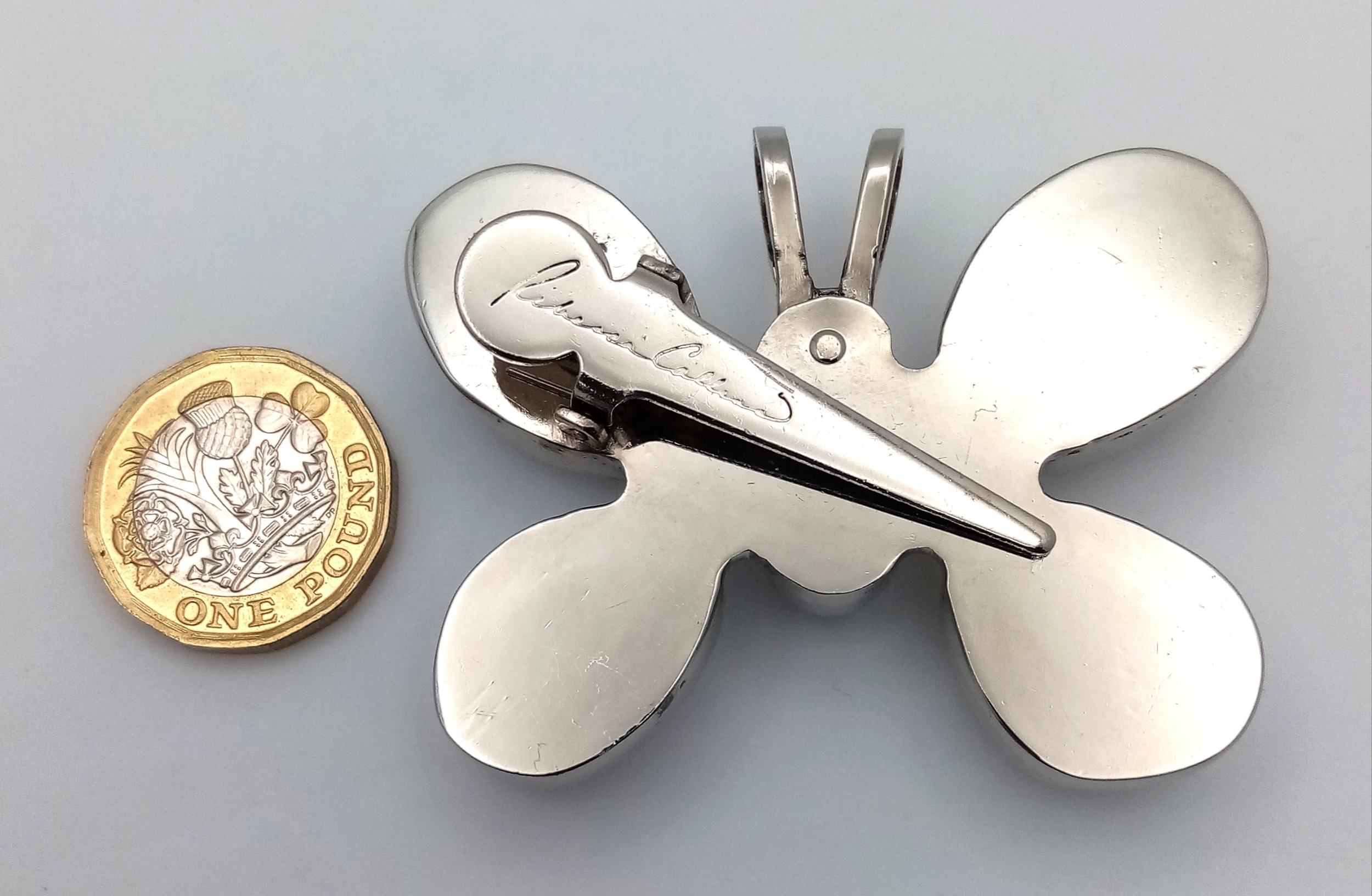A large designer Rebecca Collins silver-tone large stone set butterfly pendant. 5 X 7 cm.