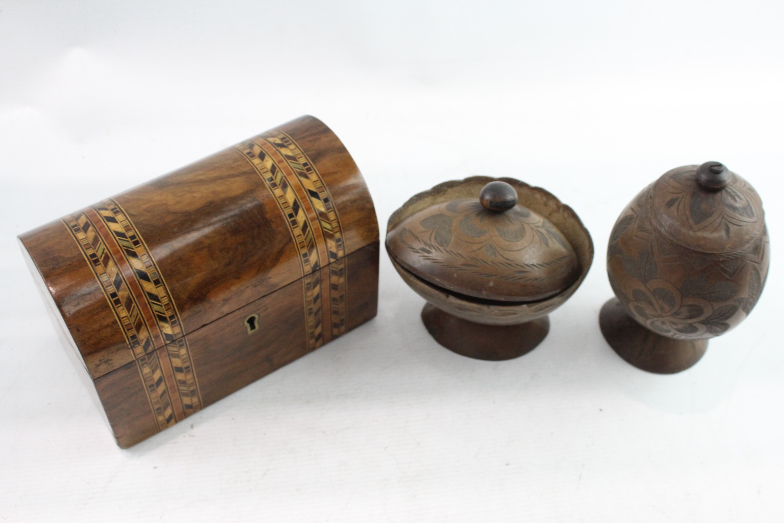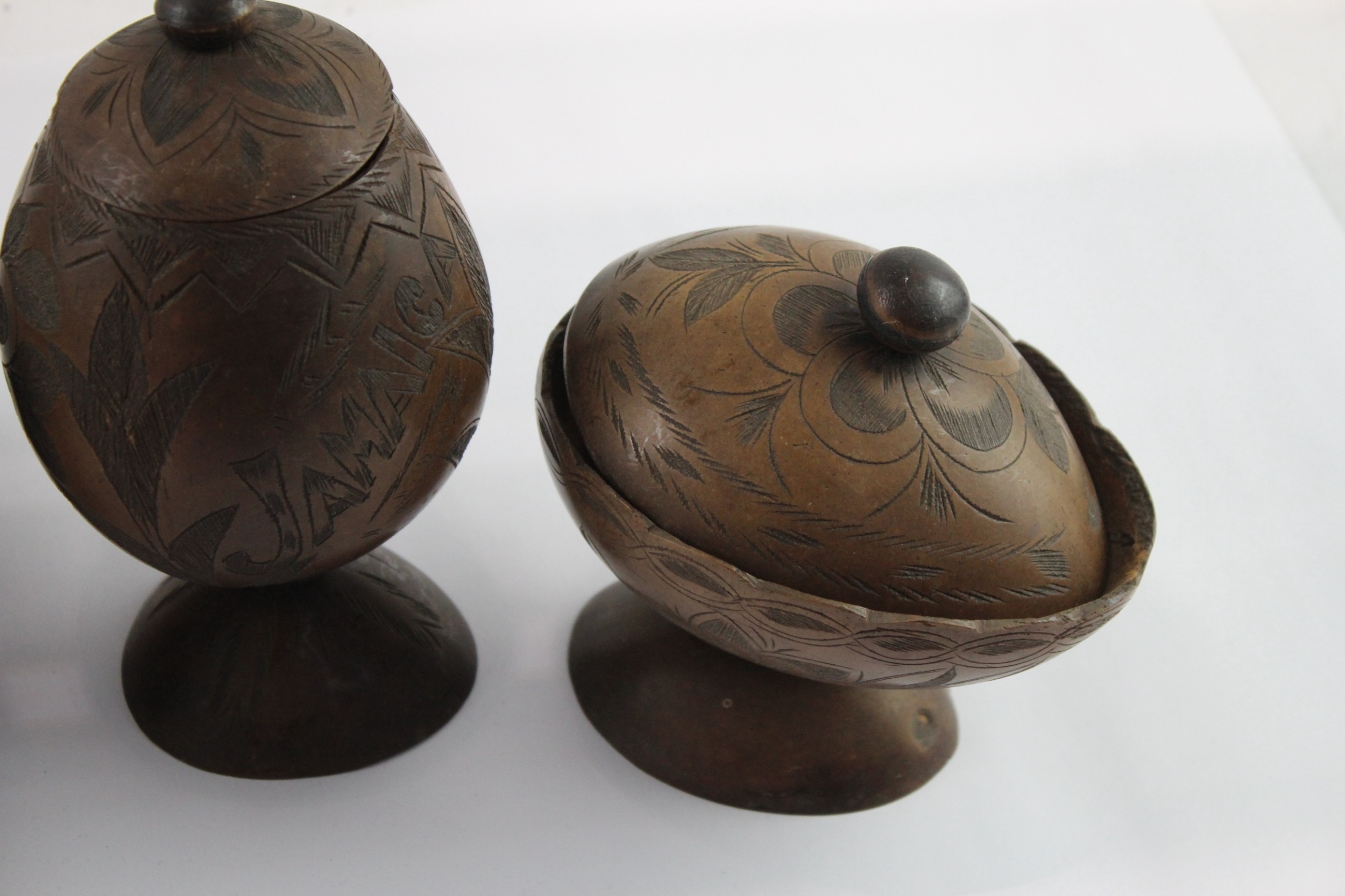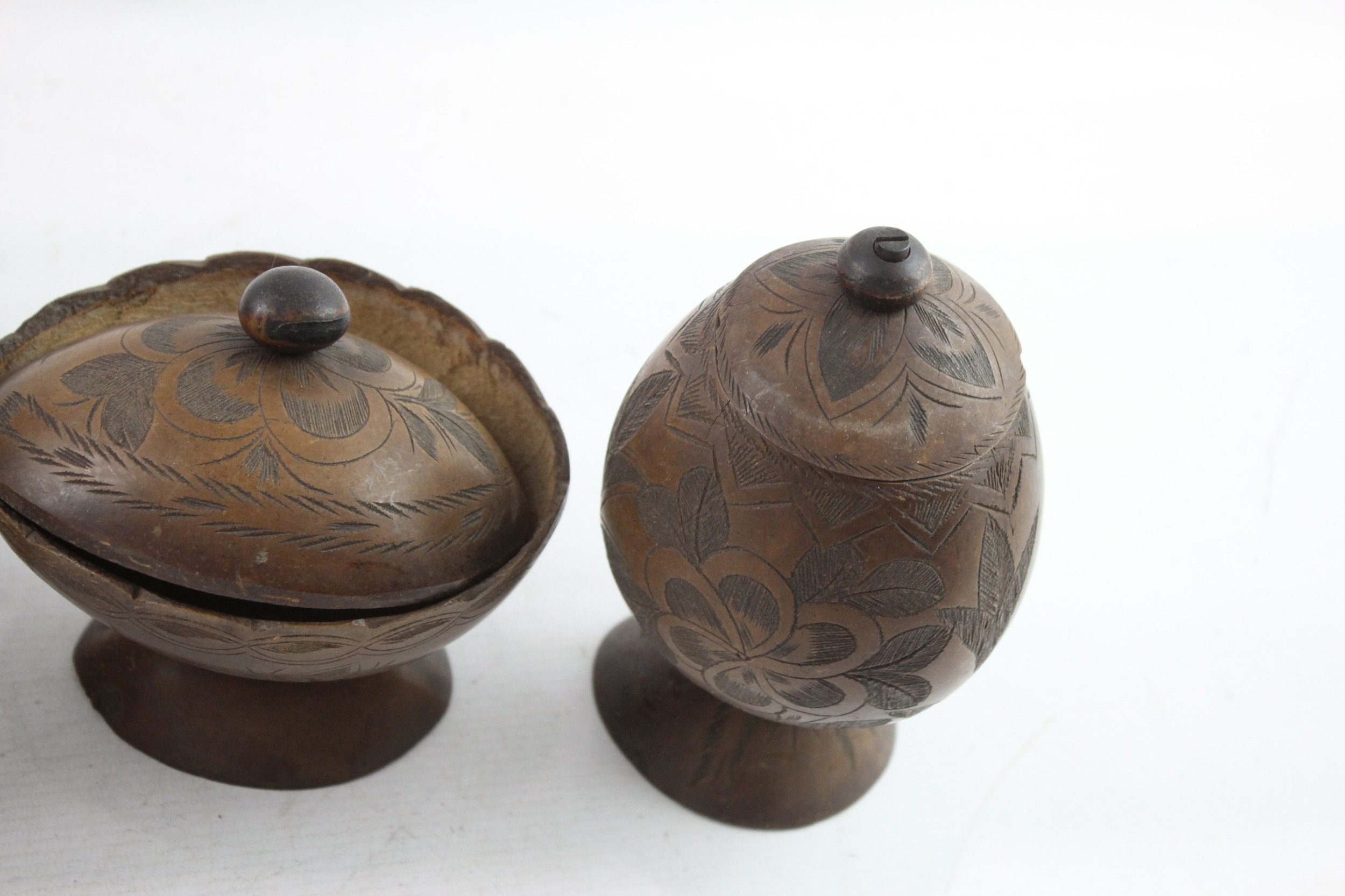 Vintage Wooden Boxed - Lidded, Hand Carved, Pots