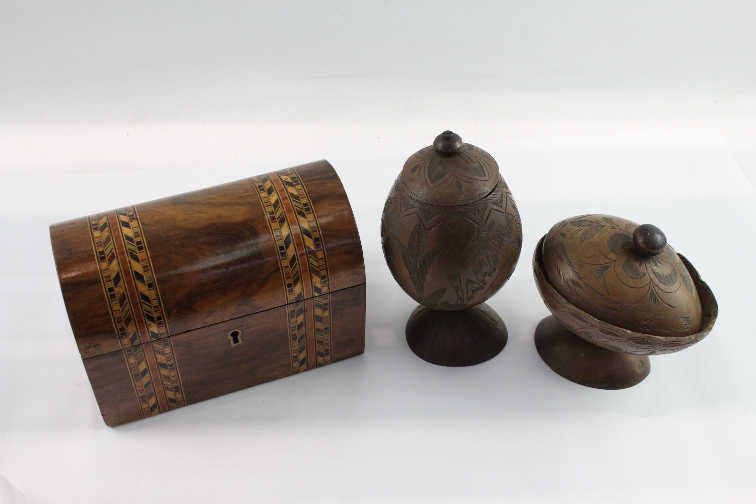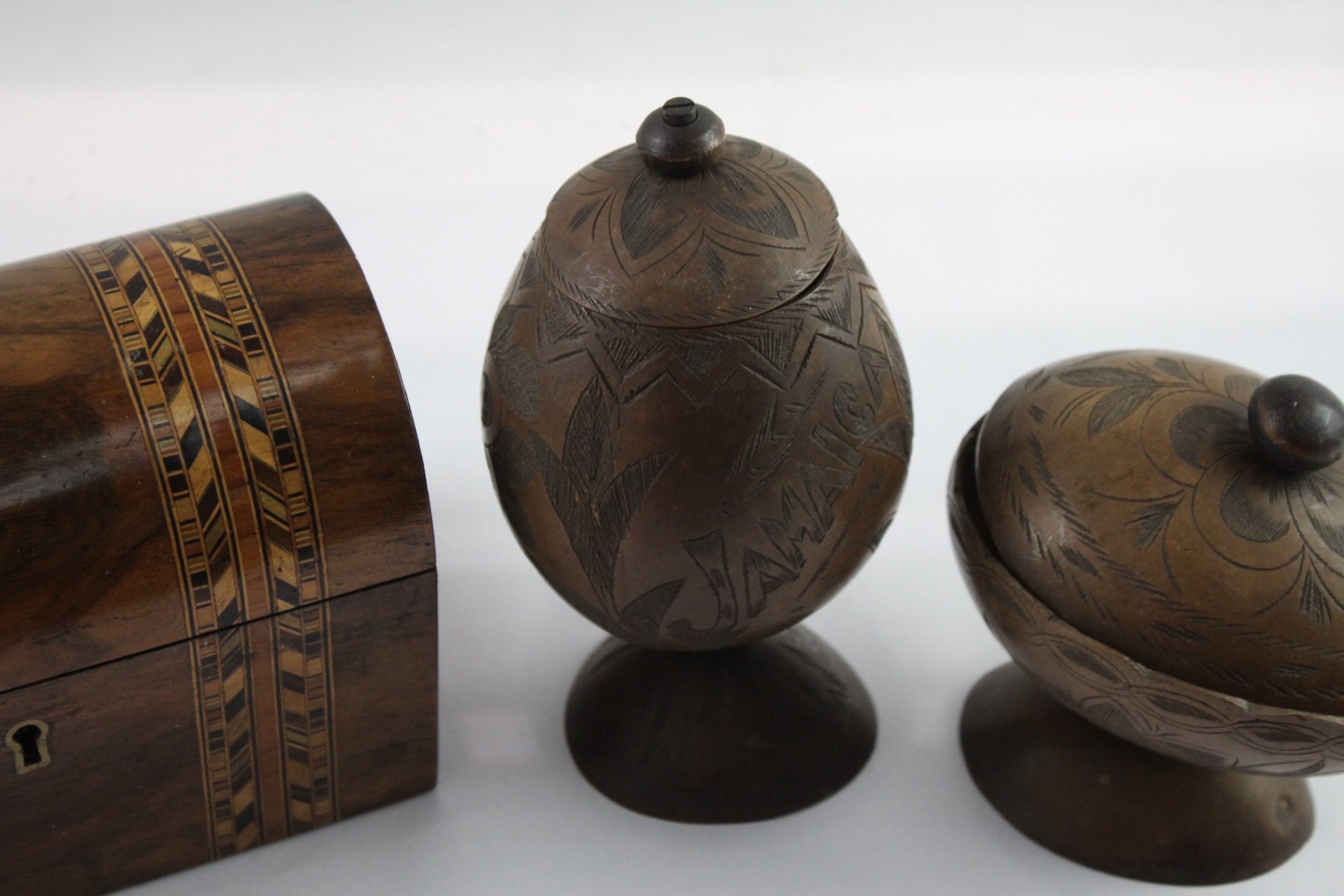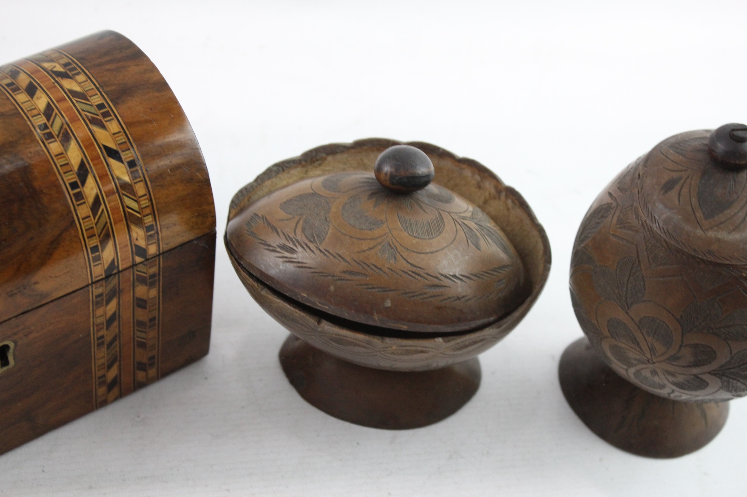 Vintage Wooden Boxed - Lidded, Hand Carved, Pots