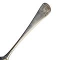 Hallmarked London, 1751, Hanoverian Rattail pattern with engraved heraldry crest for Scottish Clan Douglas, depicting King Robert the Bruce’s heart flanked by two wings surmounted with additional crown coronet to reverse terminals.