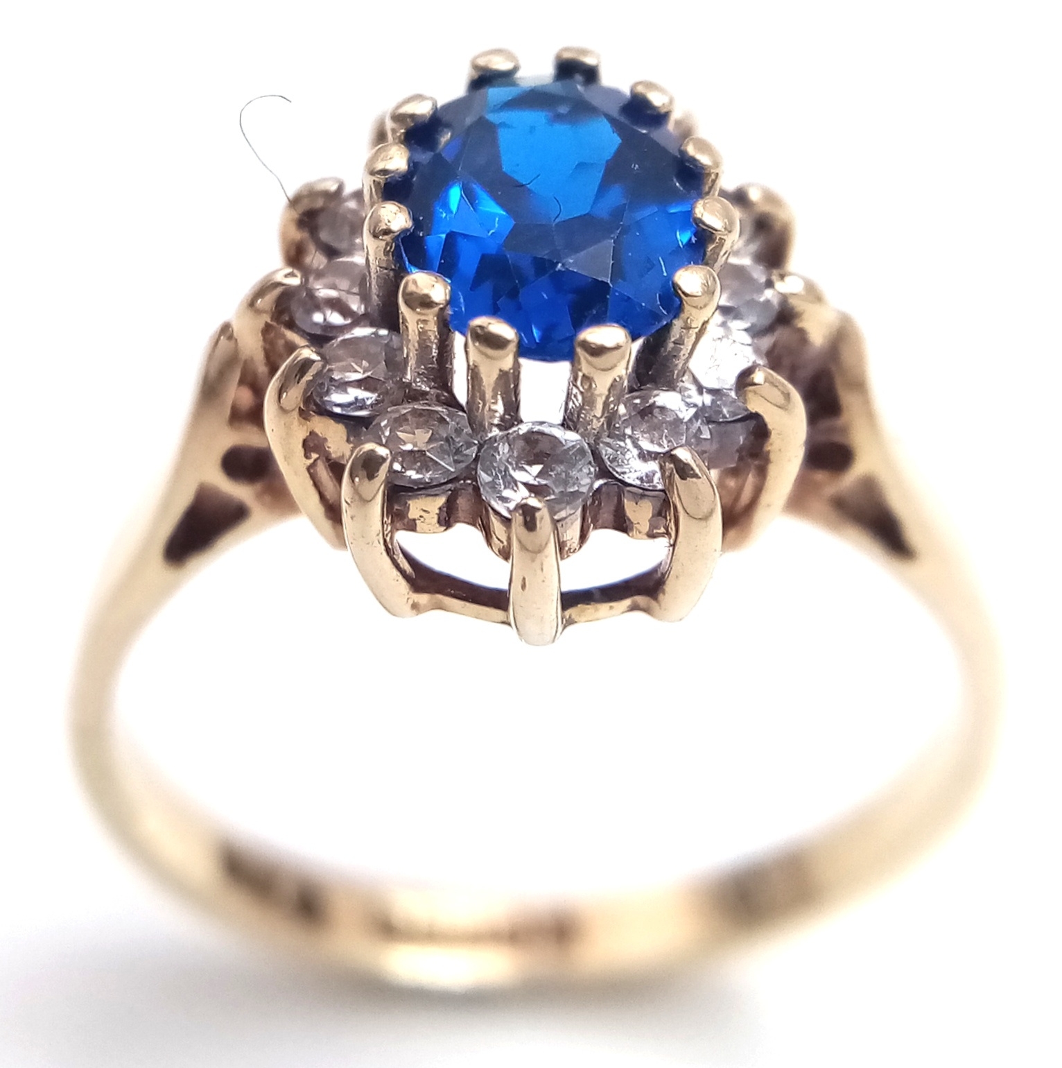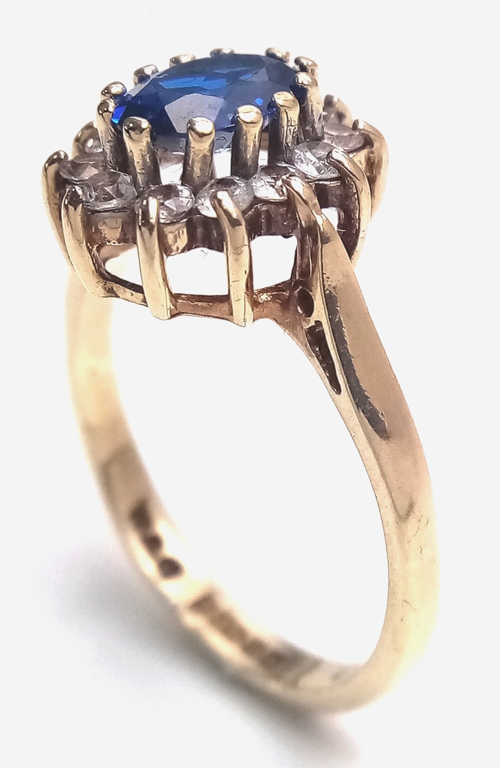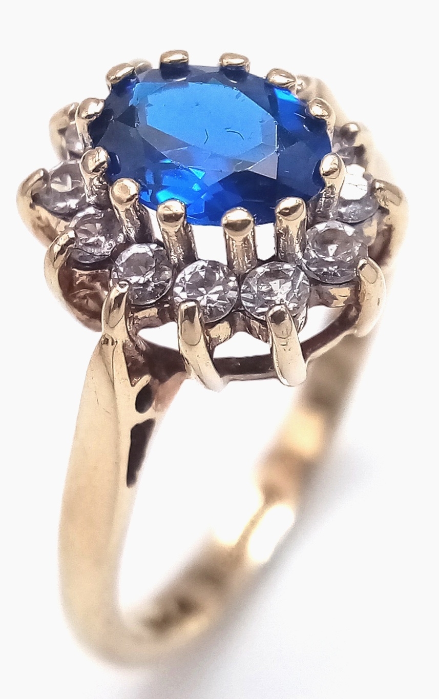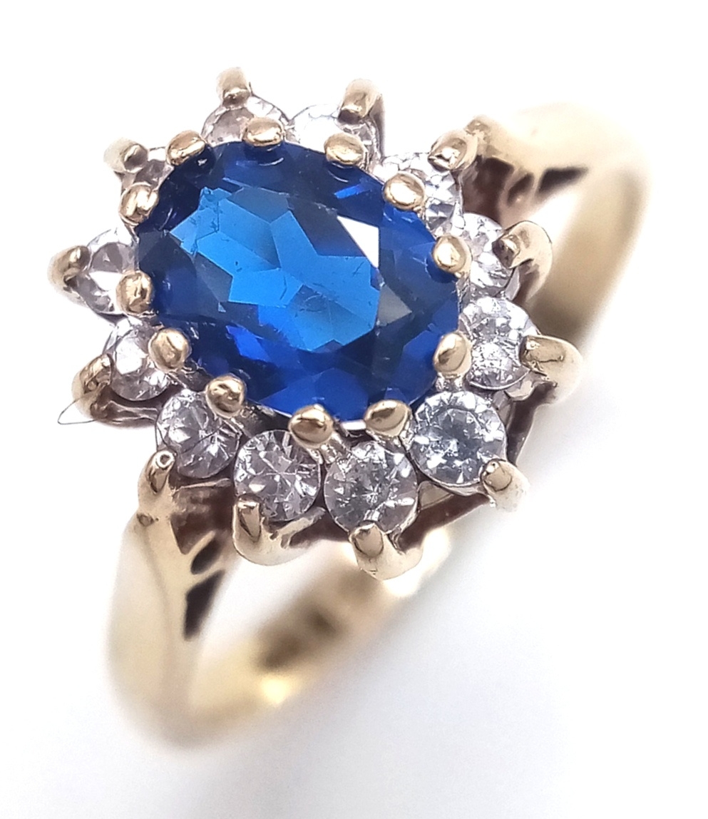 Impressive 9 CARAT GOLD, SAPPHIRE and ZIRCONIA ‘DIANA’ RING. Full UK hallmark. 2.5 Grams. Size L 1/2 - M. Stunning Ring , Please see pictures.