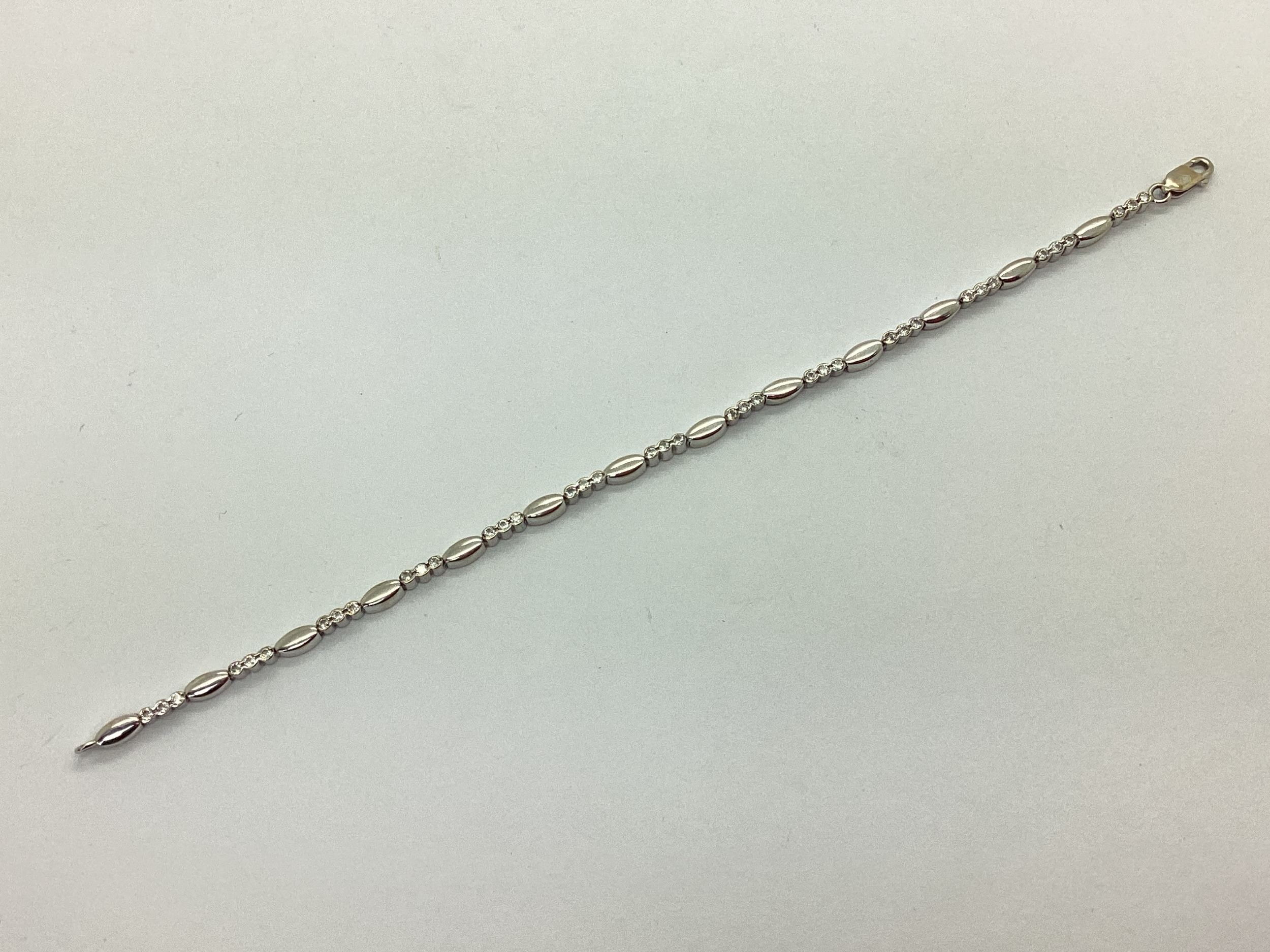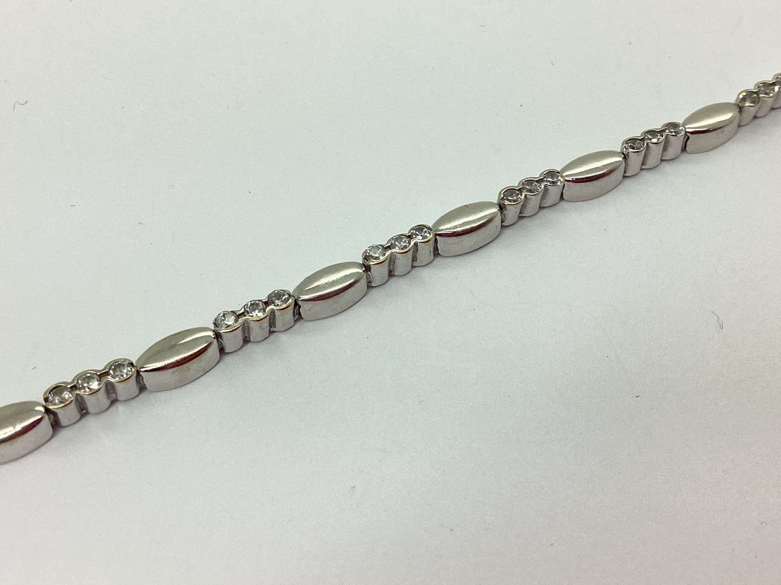 A Fancy 9ct White Gold Bracelet, alternate rubover set, 19cm long (7.6grams).