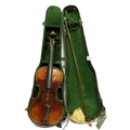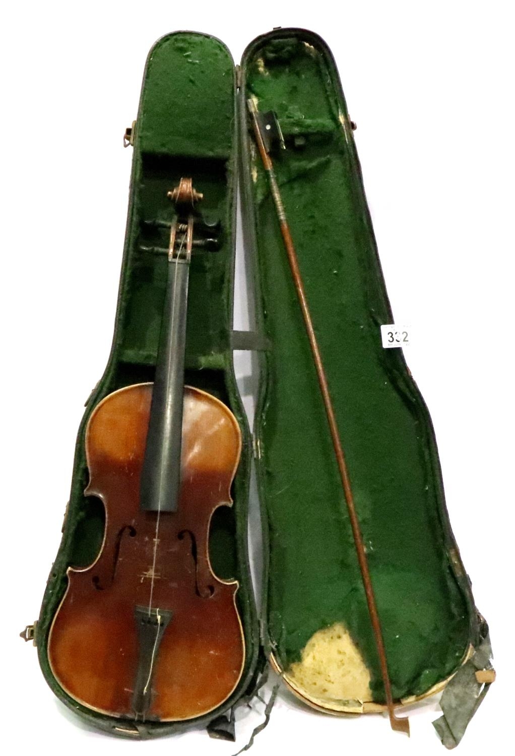 Cased antique violin and bow. P&P Group 3 (£25+VAT for the first lot and £5+VAT for subsequent lots)