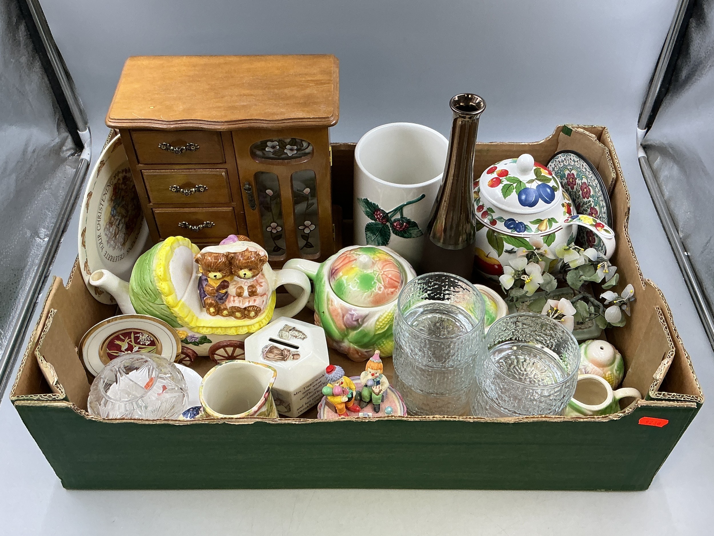 Mixed Selection Includes Wooden Jewellery Cabinet, Wedgwood Money Box, Dessert Set, Novelty Teapot, Music Box, Artificial Bonsai Tree and More