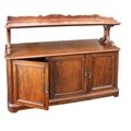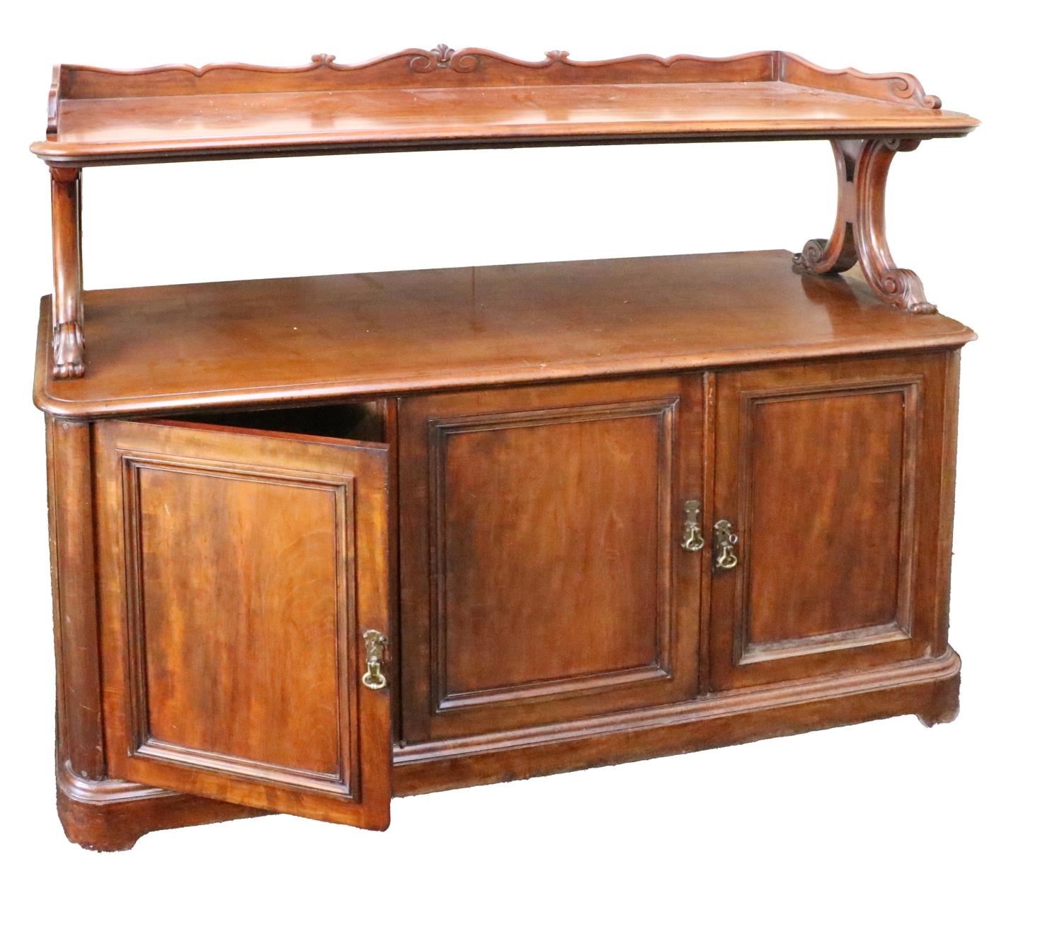 A Victorian mahogany Buffet, with carved and shaped gallery back above shaped supports and open shelf, on a base with three panel doors, approx. 153cms wide x 122cms high x 56cms deep (60" x 50" x 22"). (1)