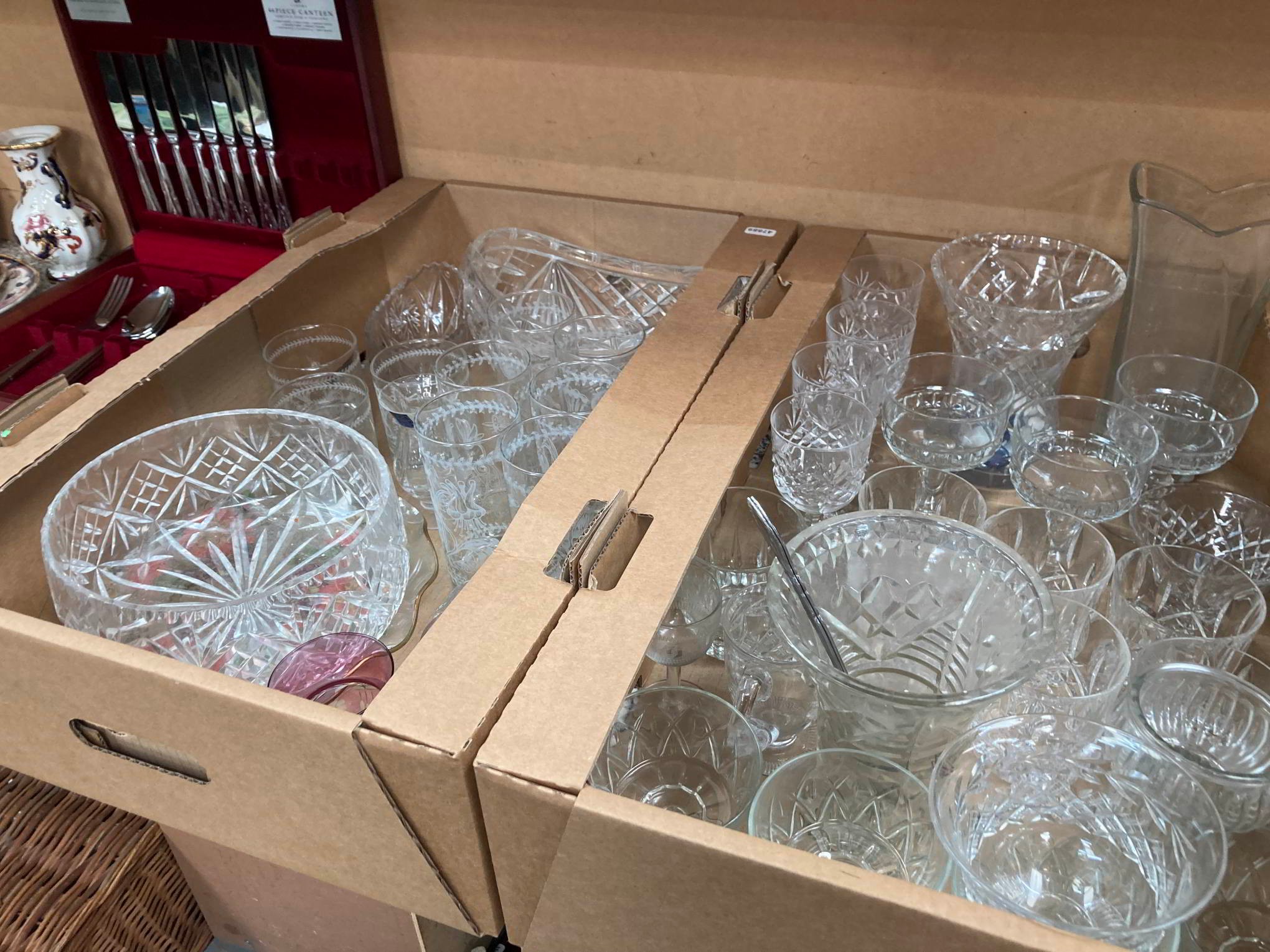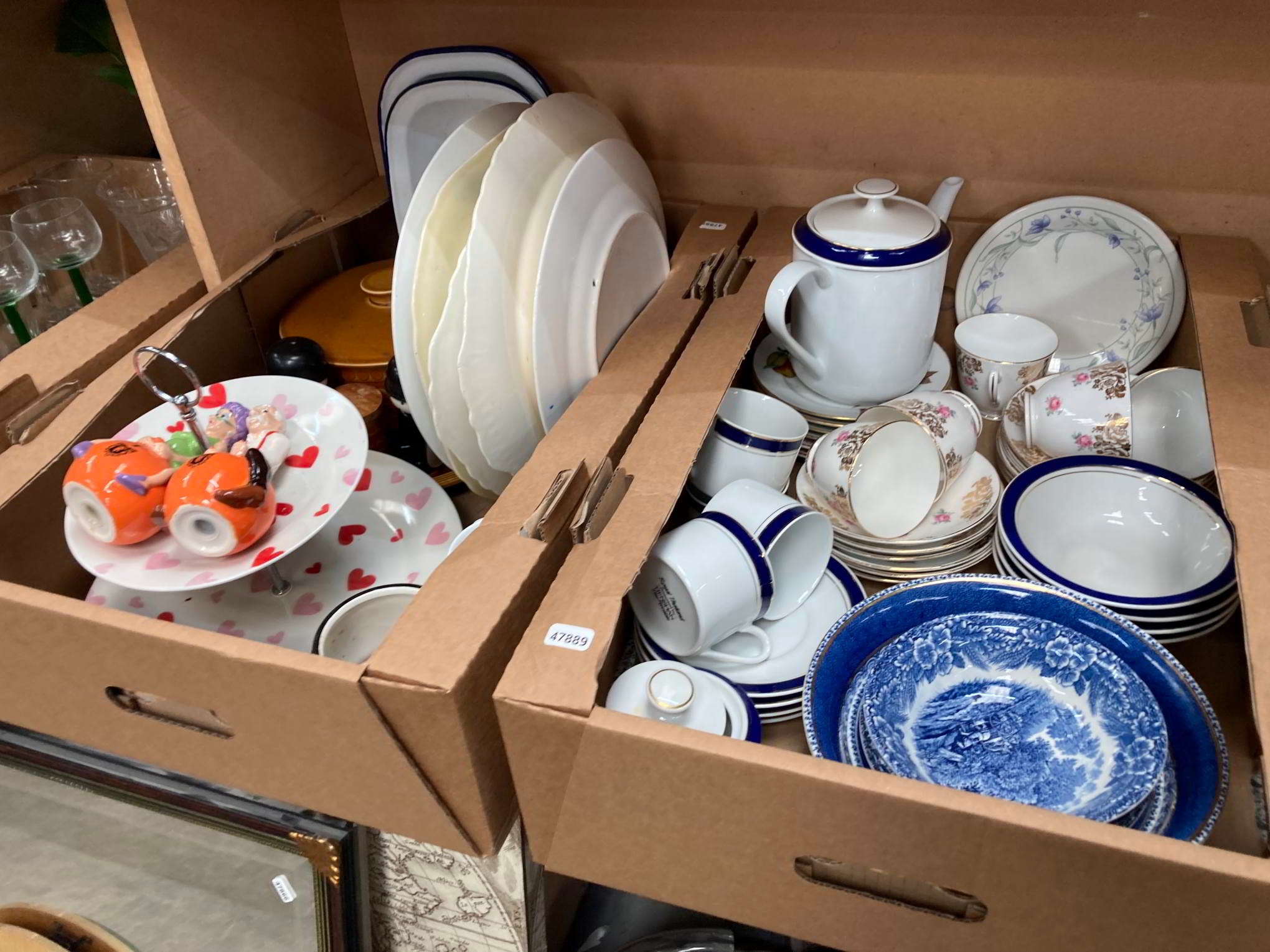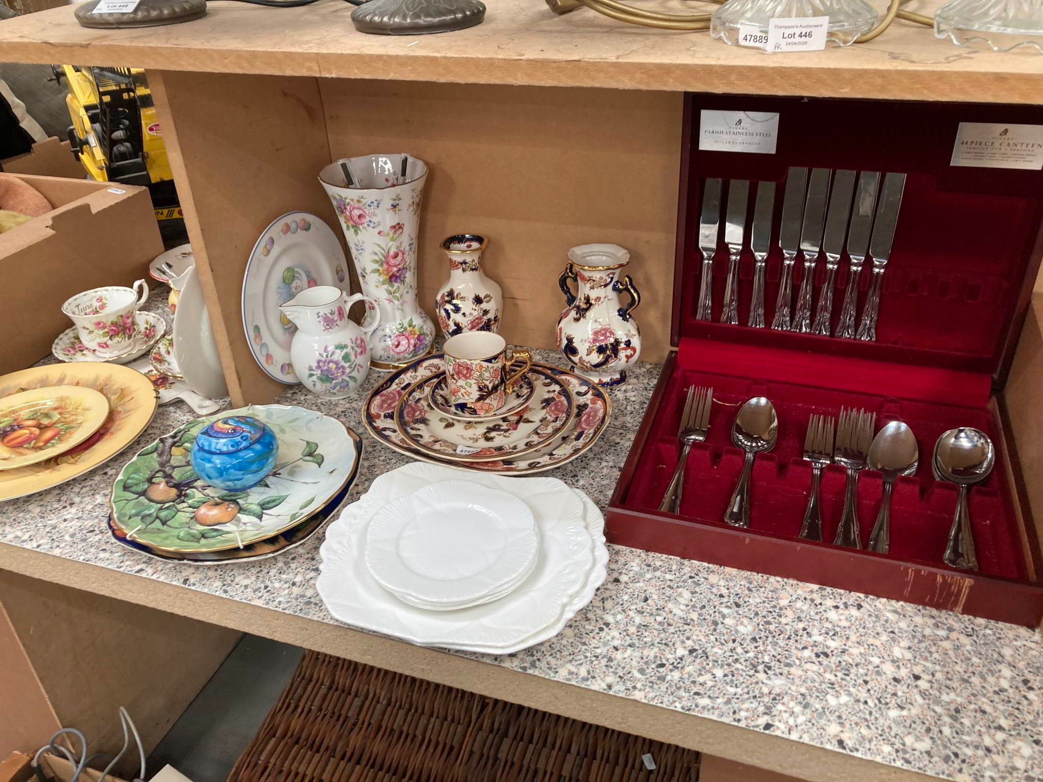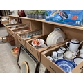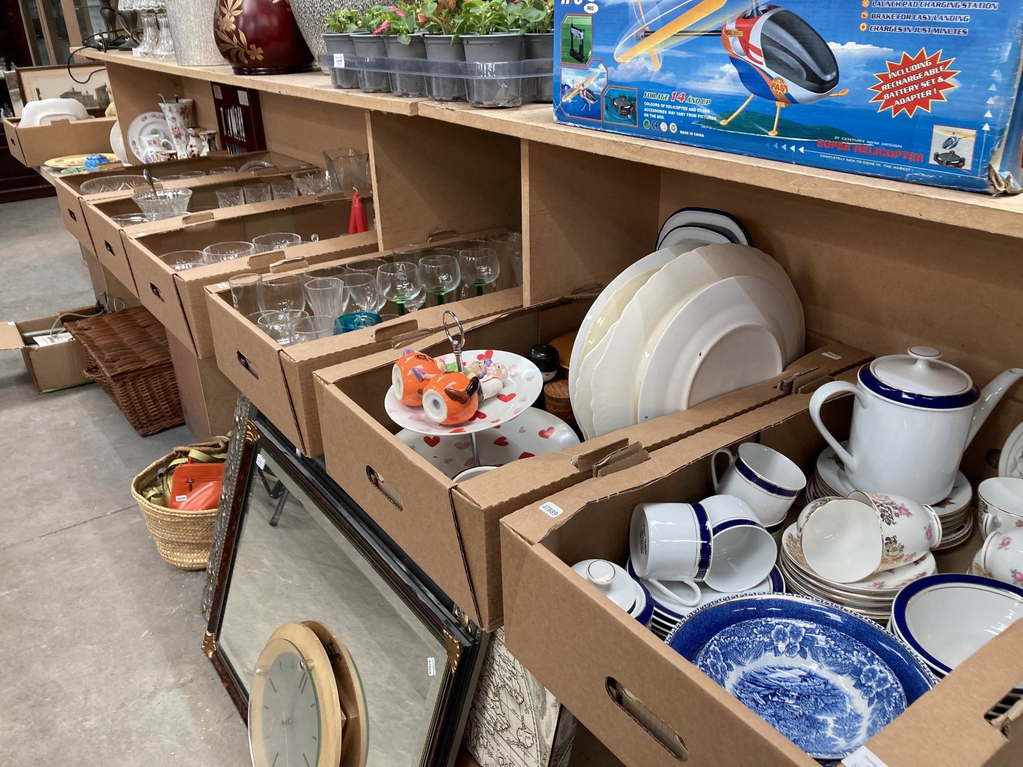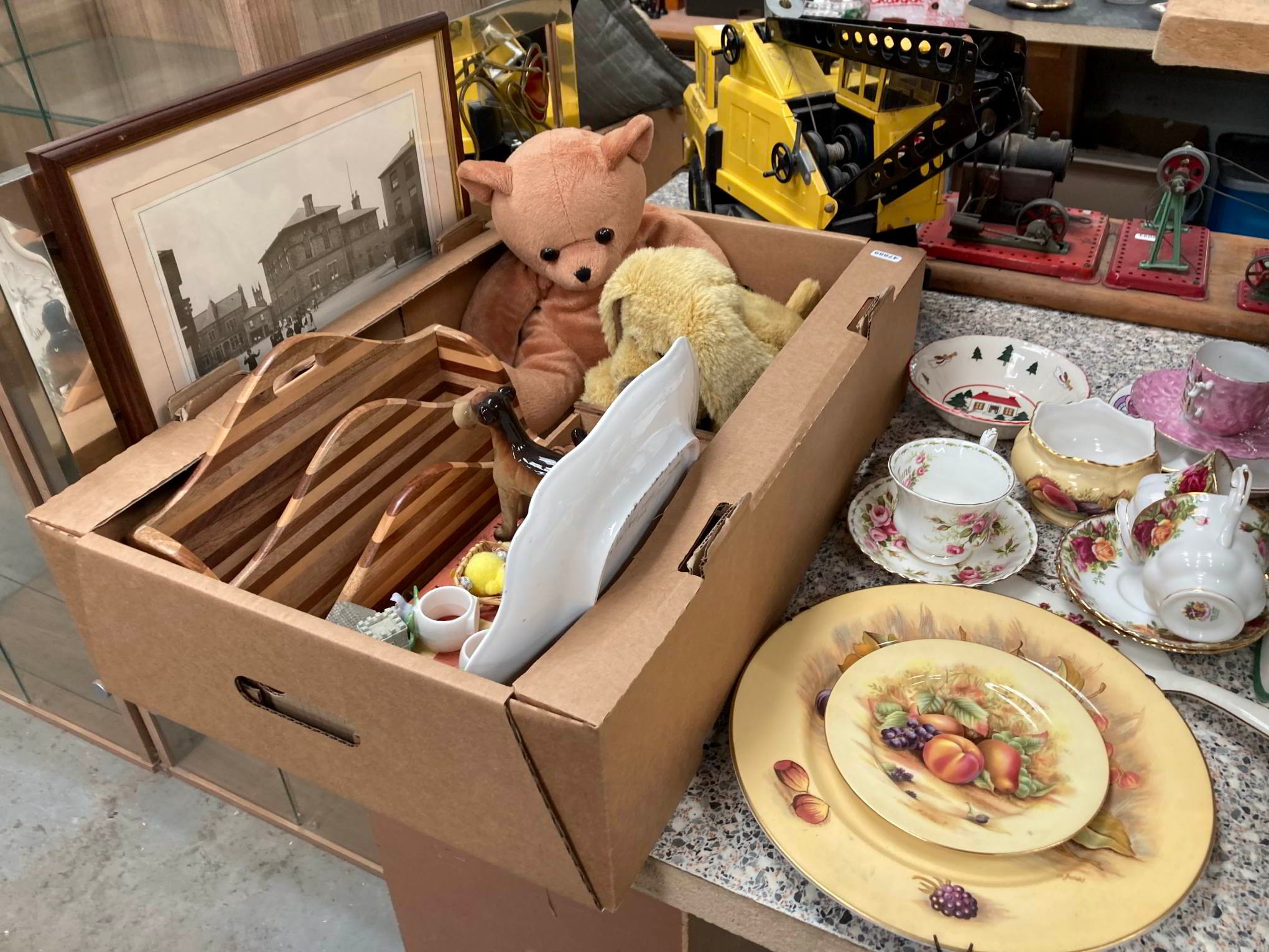 Large collection of mixed glassware, pottery, collectables, teddy bears, meat plates, letter rack, Shelley, Mason's 'Floral Parchment', Coalport, Viners part canteen etc.