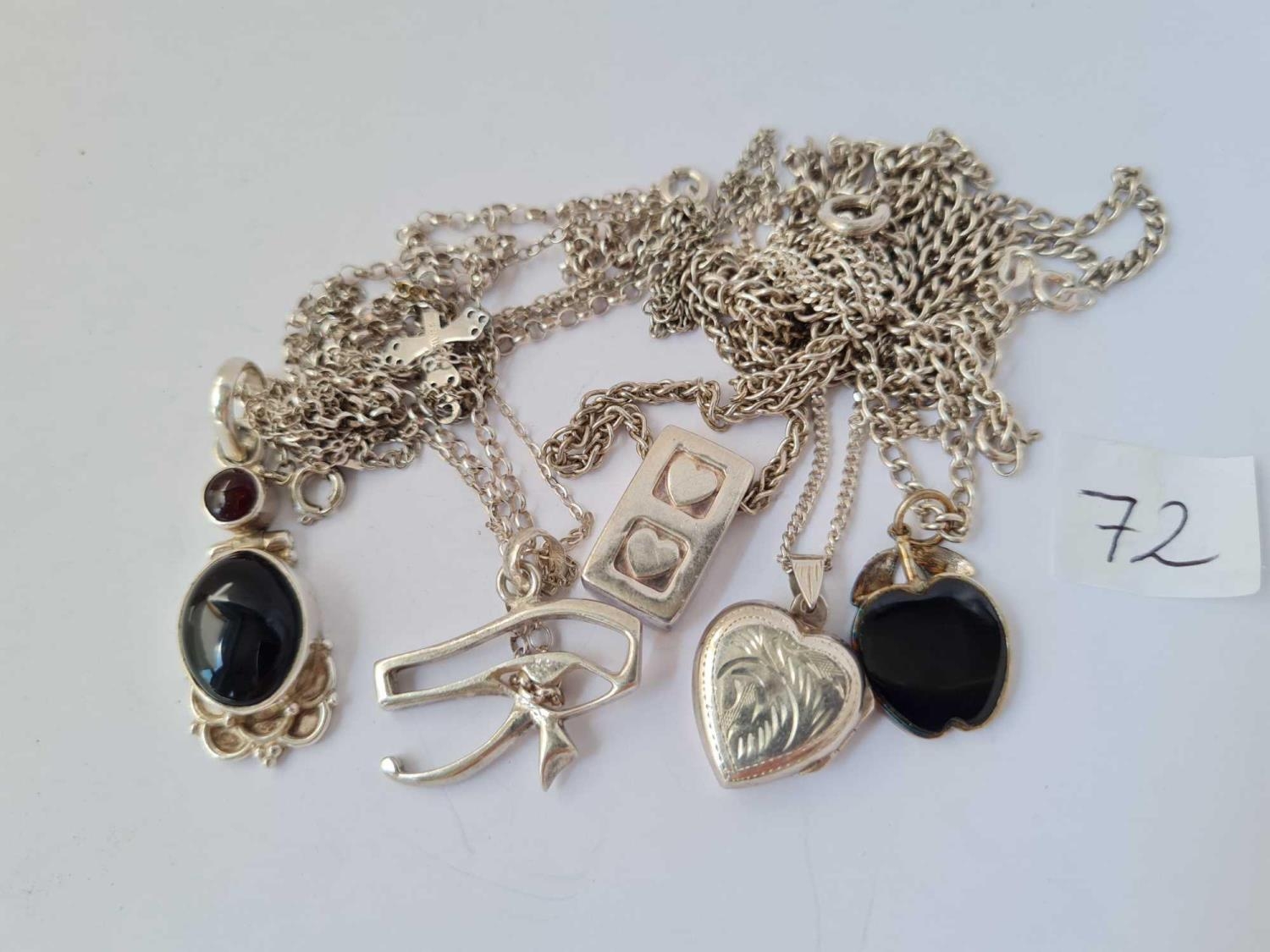 Six silver pendants on silver chains 50g
