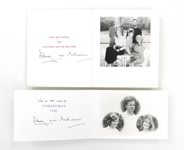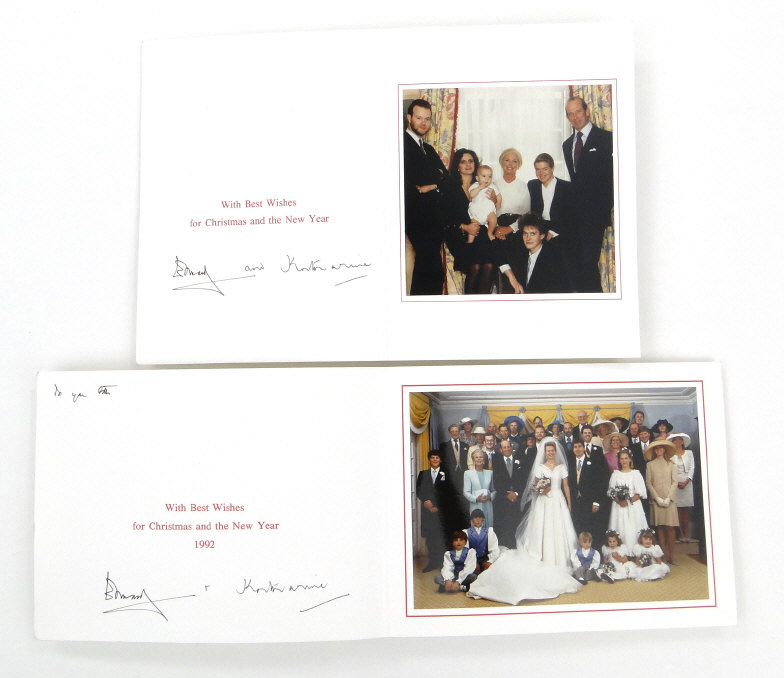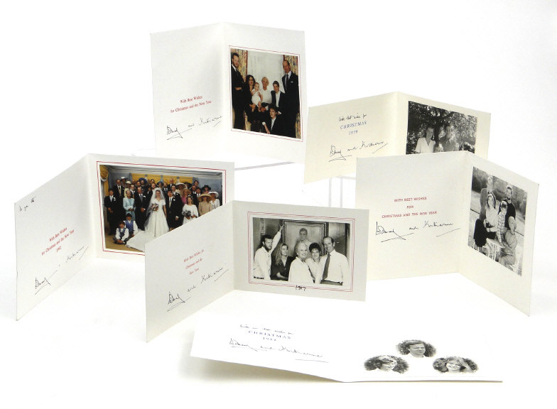 Six Royal commemorative Christmas cards signed by Edward and Katherine - Duke and Duchess of Kent