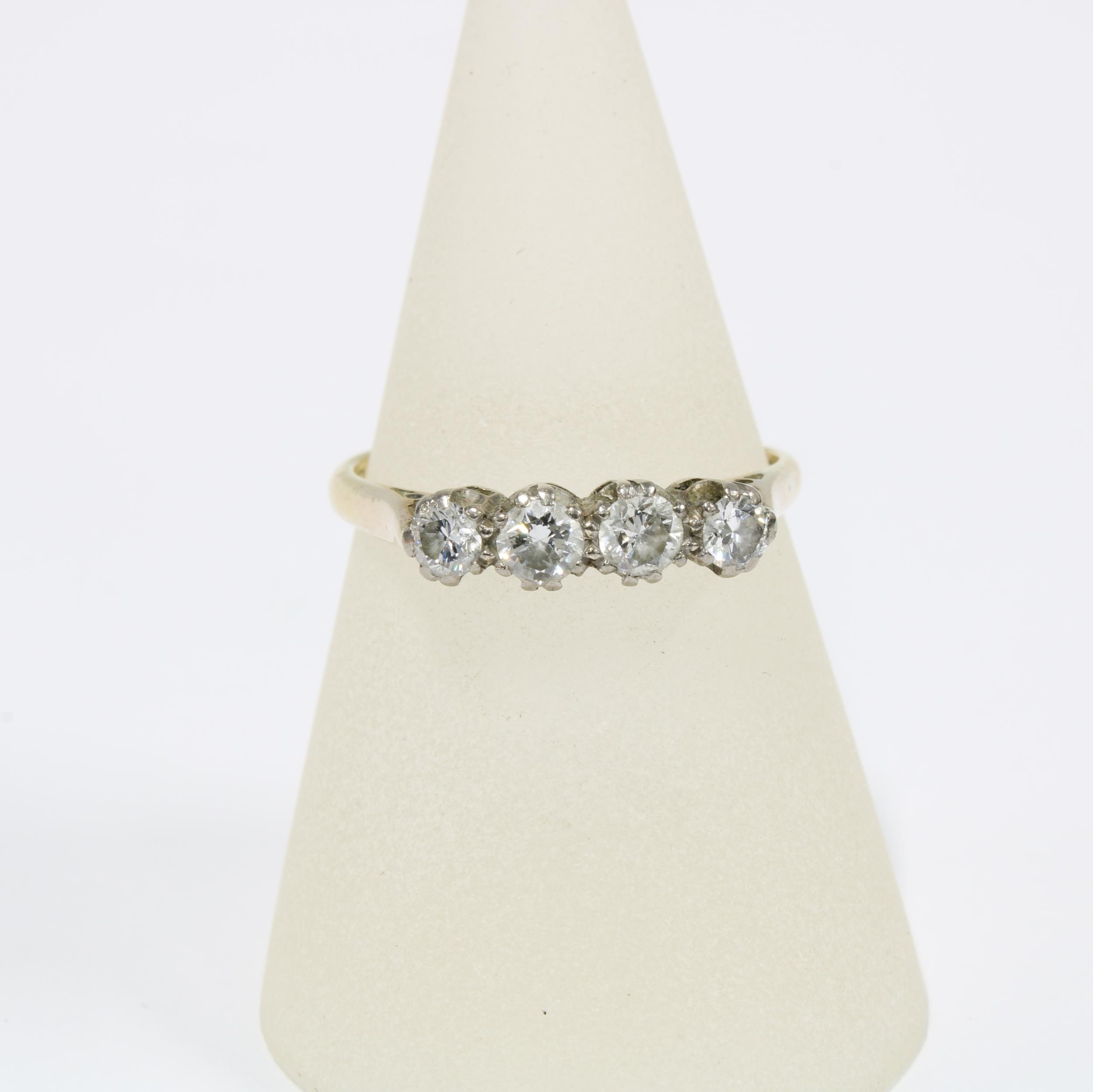 18ct gold and platinum diamond ring, claw set with four brilliant cut diamonds, size P