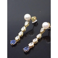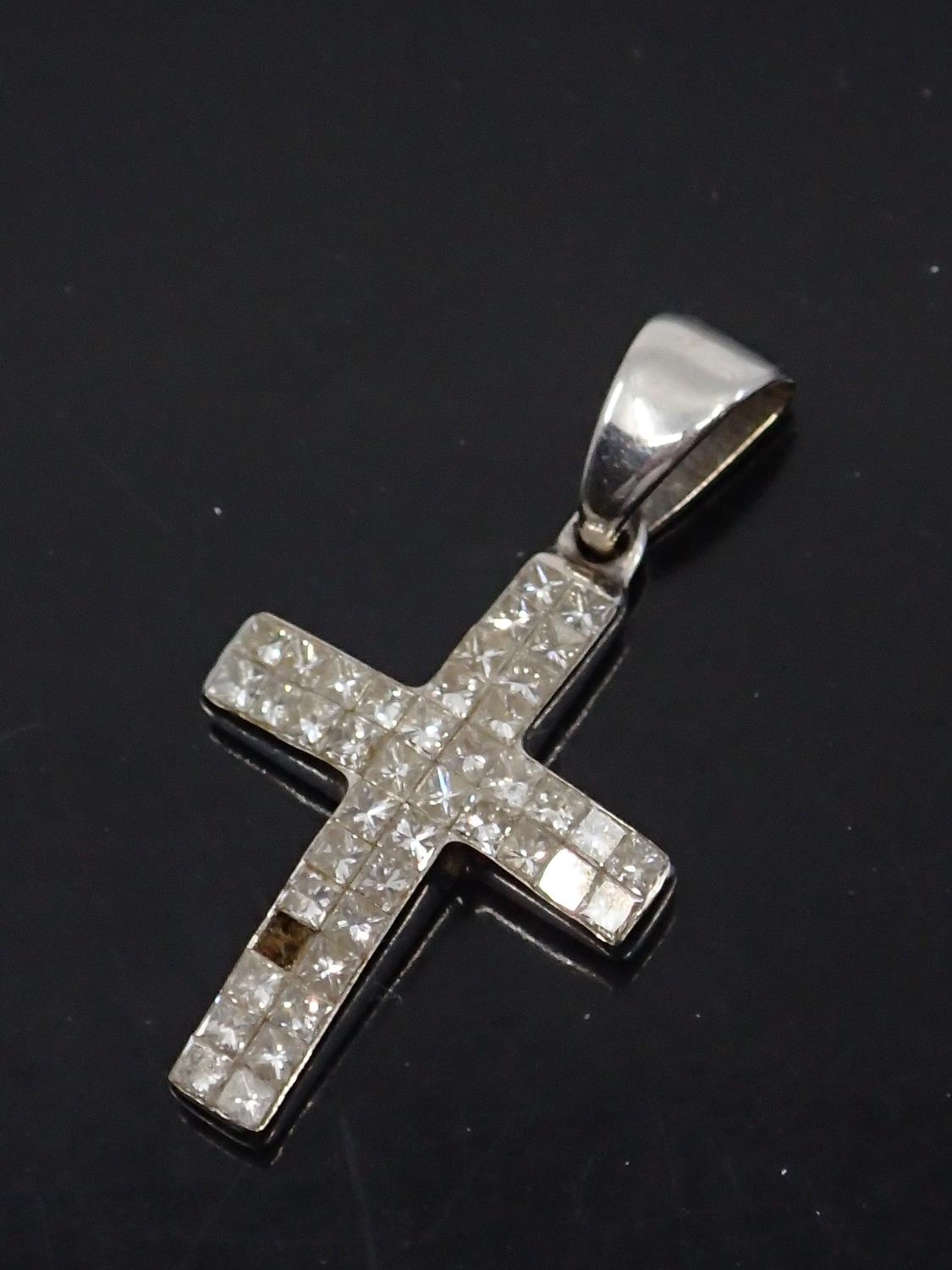A 14kt diamond set cross (missing one diamond) approx. 2.5 grams, and a gem set gold earring