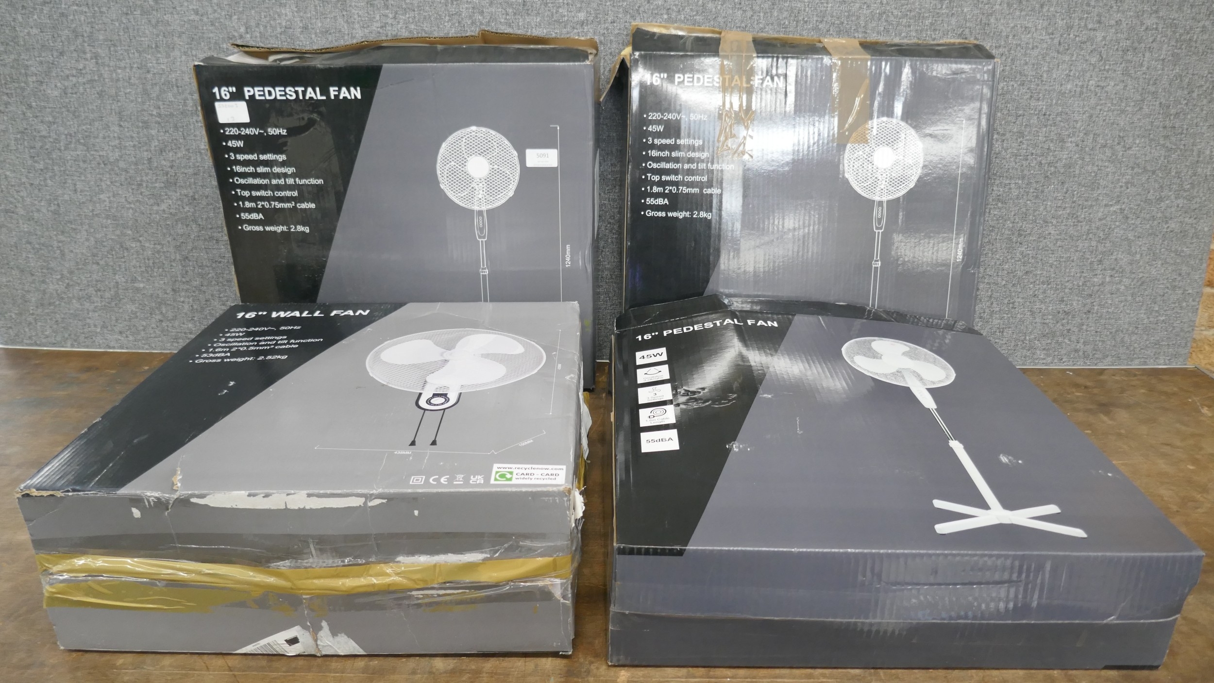 4 x 230V 16" pedestal fans - boxed * This lot is subject to VAT