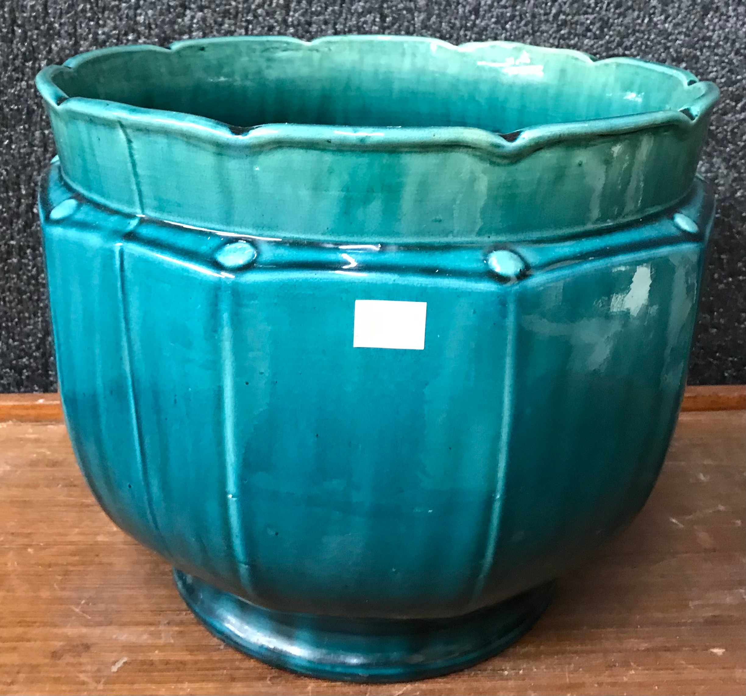 A teal glazed terracotta jardiniere