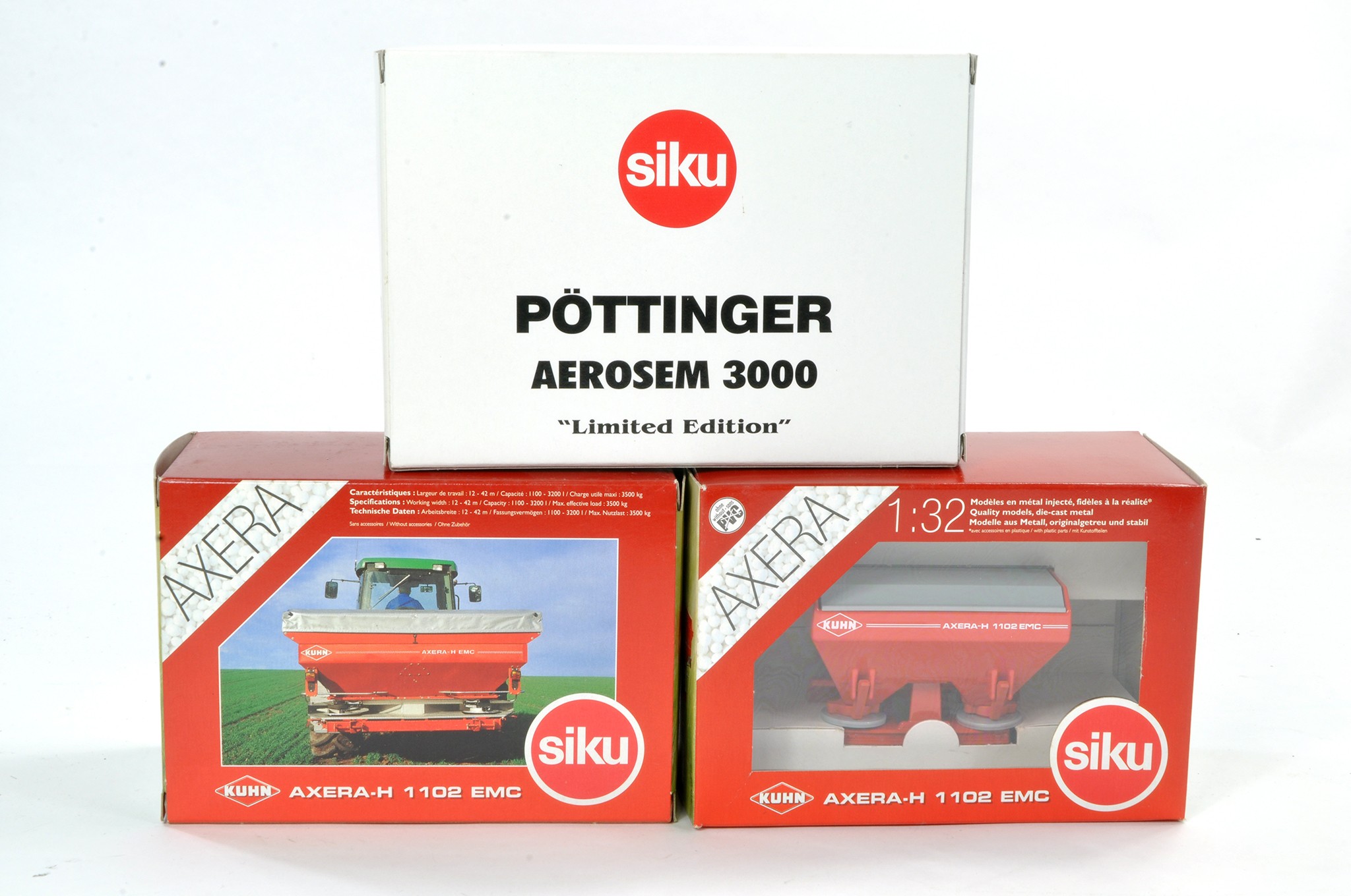 Siku 1/32 Model Farm Issues comprising trio of limited edition implements from Kuhn and Pottinger. All look to have not been removed from boxes, hence excellent.
