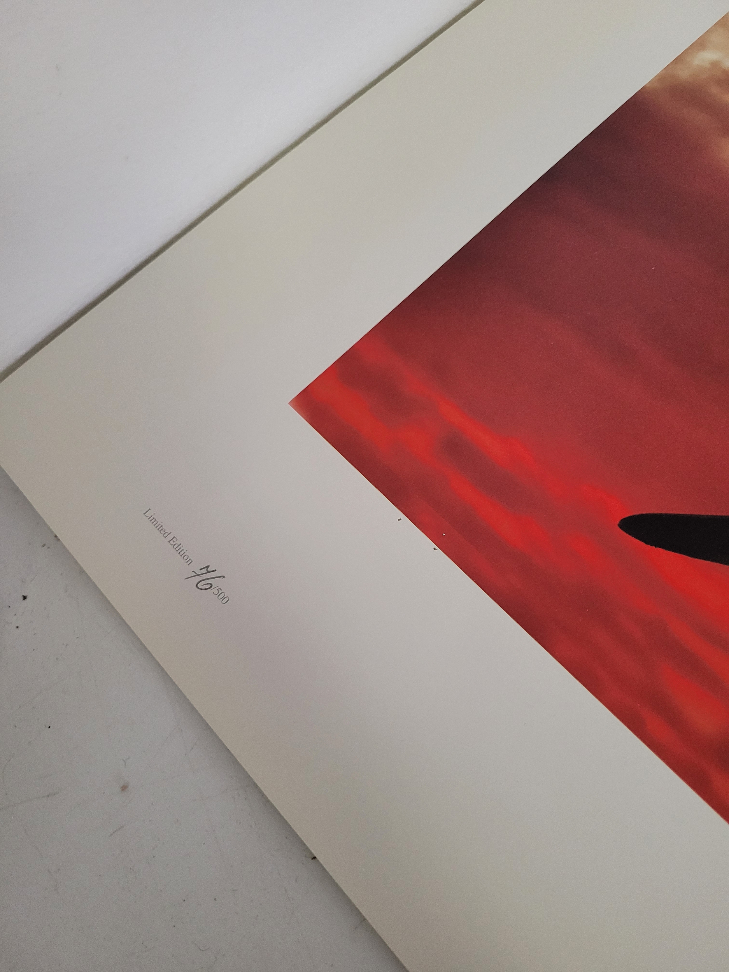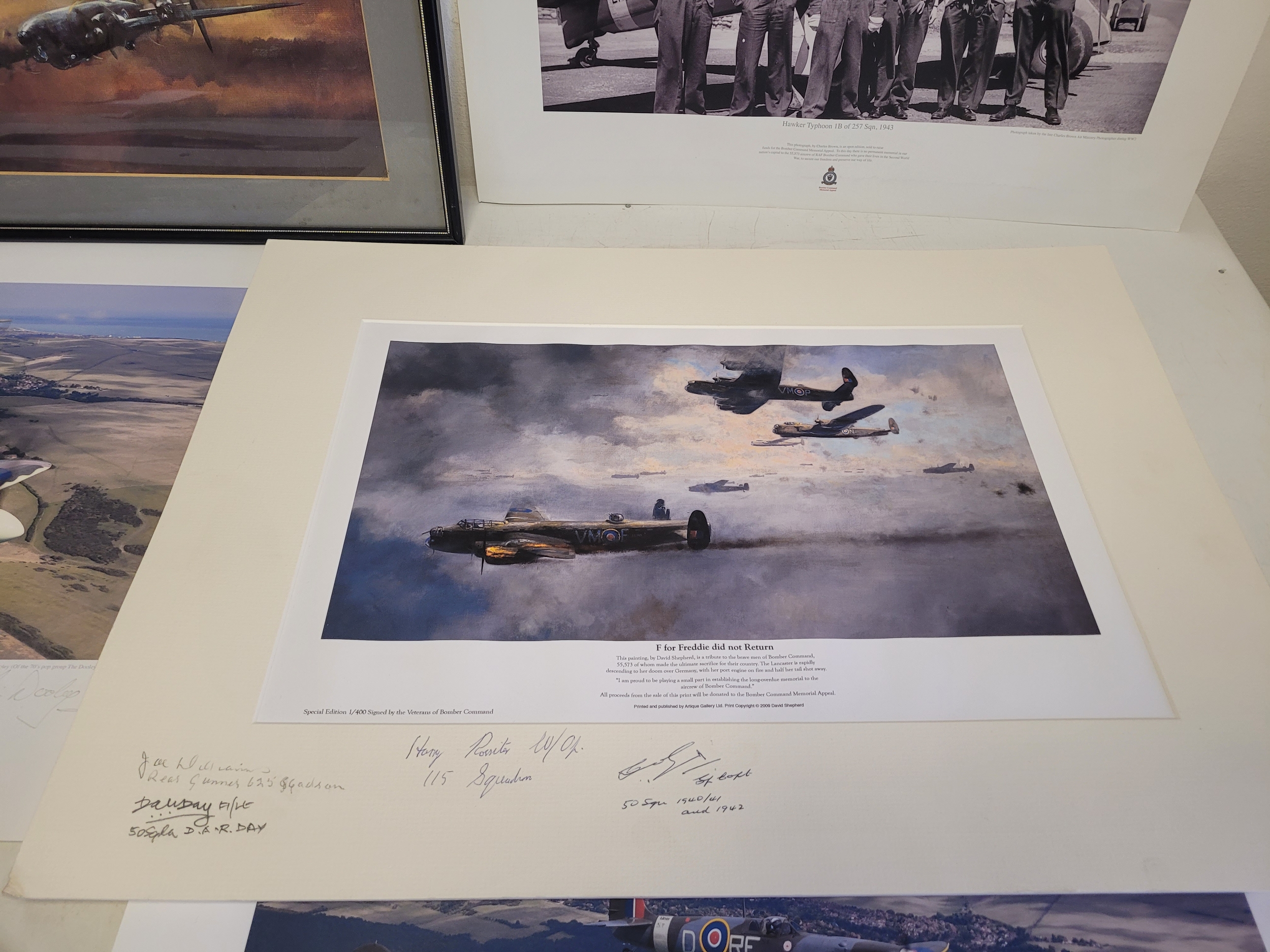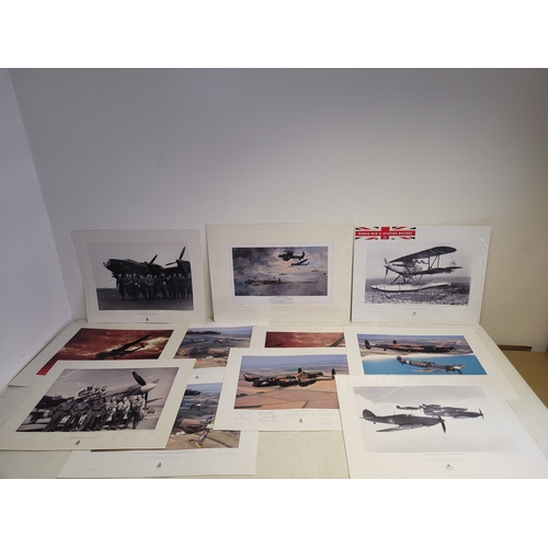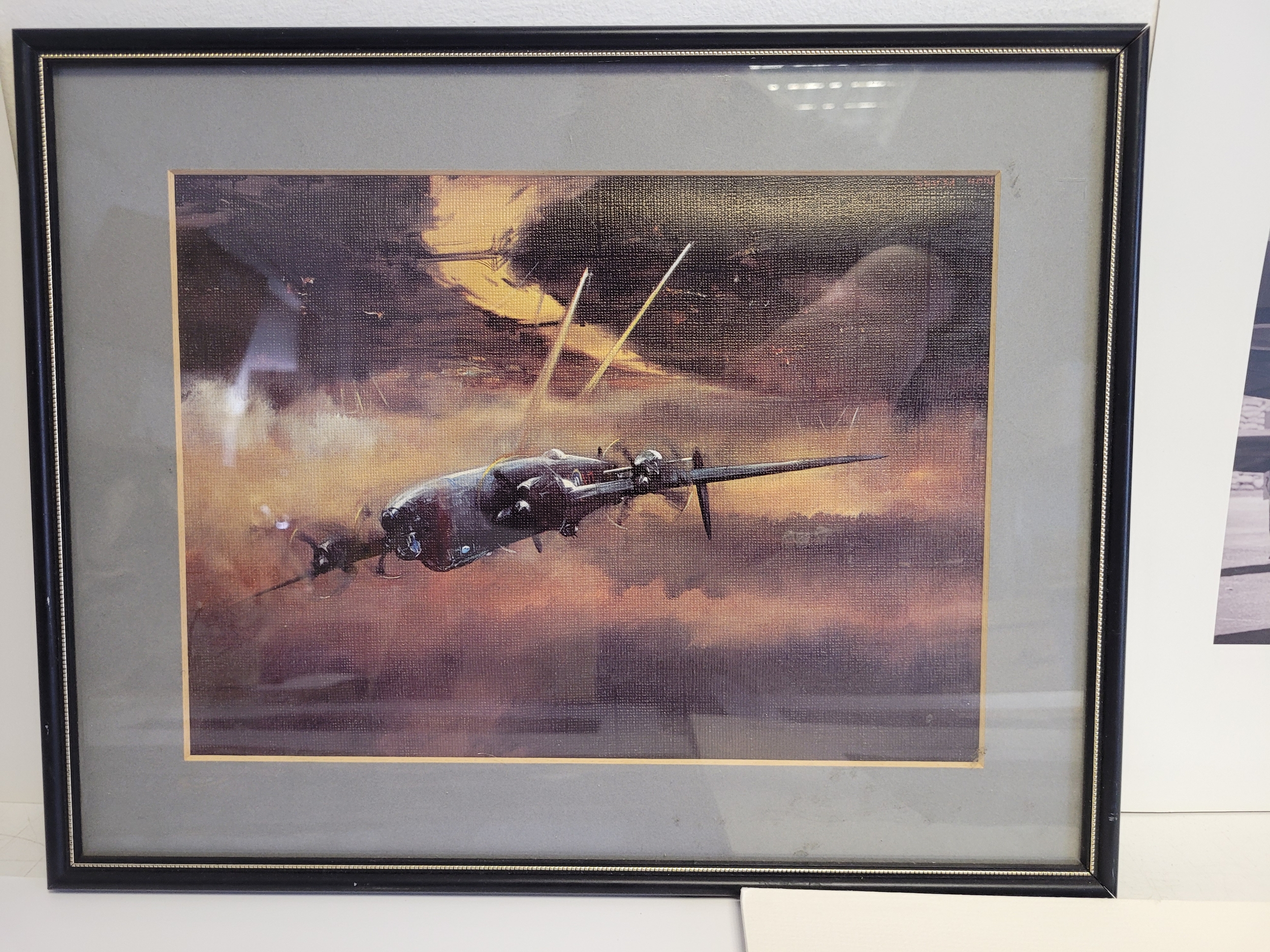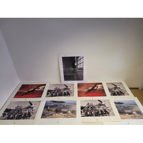 Collection of WWII Aviation Prints by James Dooley + Spitfire Oil Painting This lot features a curated selection of commemorative aviation art, prominently featuring the work of James Dooley. These prints are part of a series celebrating the Battle of Britain Memorial Flight (BBMF) and the legendary aircraft of the RAF Under the Moon": The striking silhouette of an Avro Lancaster bomber against a vivid, fiery orange and red sunset. This is one of Dooley's most iconic "night patrol" compositions.