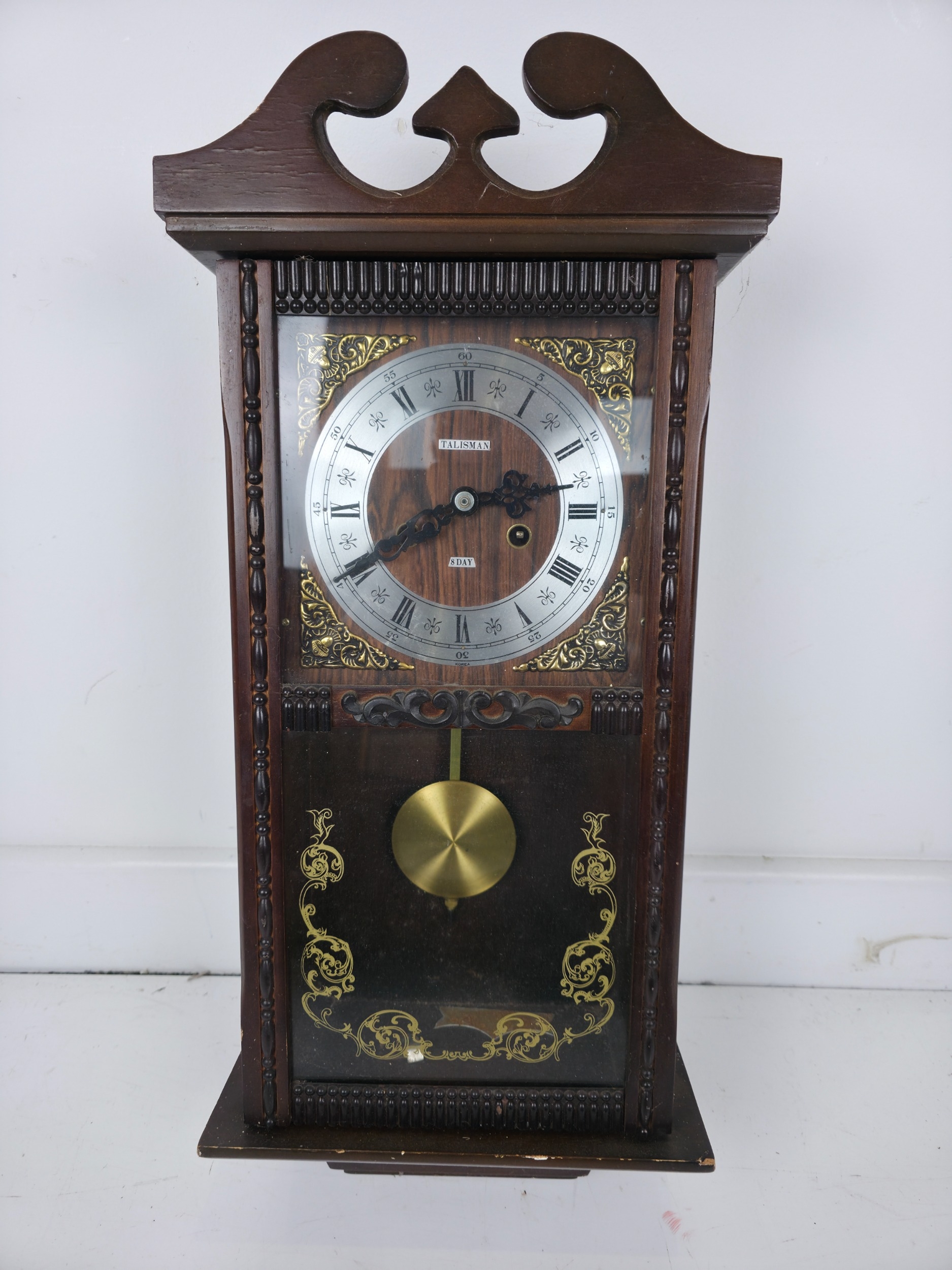 Talisman 8 Day Wall Clock With Pendulum in Carved Wooden Cas...