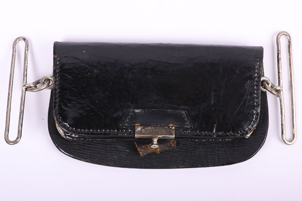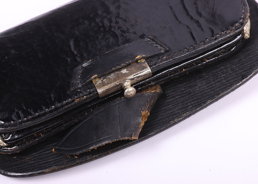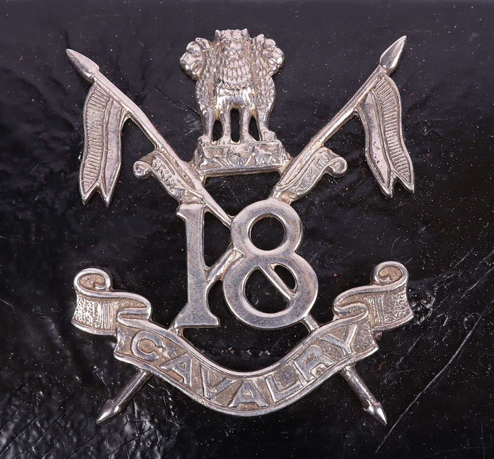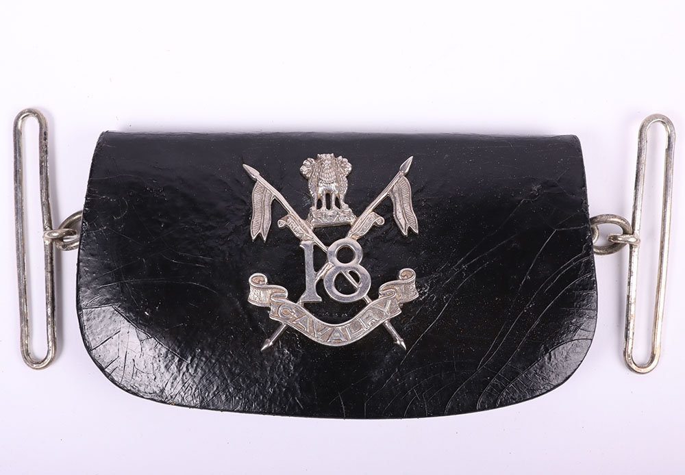 Indian Army 18th Cavalry Officers Undress Pouch, interesting early patent leather undress pouch which is fitted with a post 1949 silvered regimental badge of the Indian 18th Cavalry. Pouch with side belt fittings. Generally good condition.