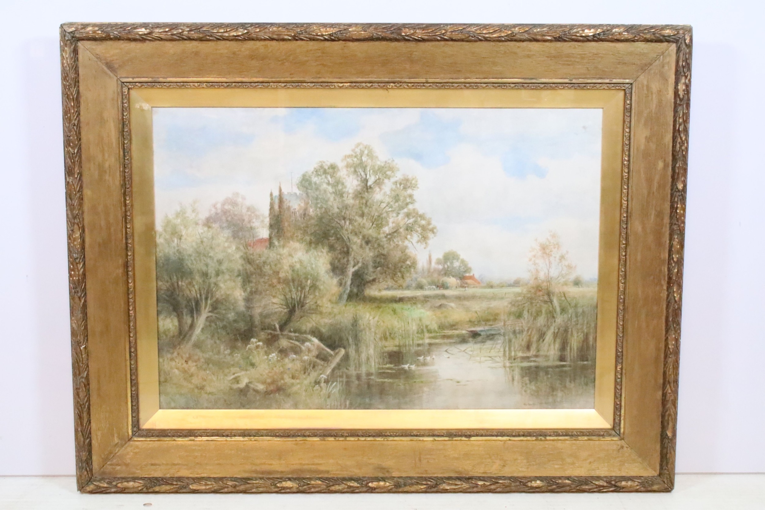 Henry John Kinnaird (British, 1880 - 1920), 'The Backwater ******** on Thames' - rural landscape scene, signed lower left, titled lower right, 50.5 x 73cm, gilt framed and glazed