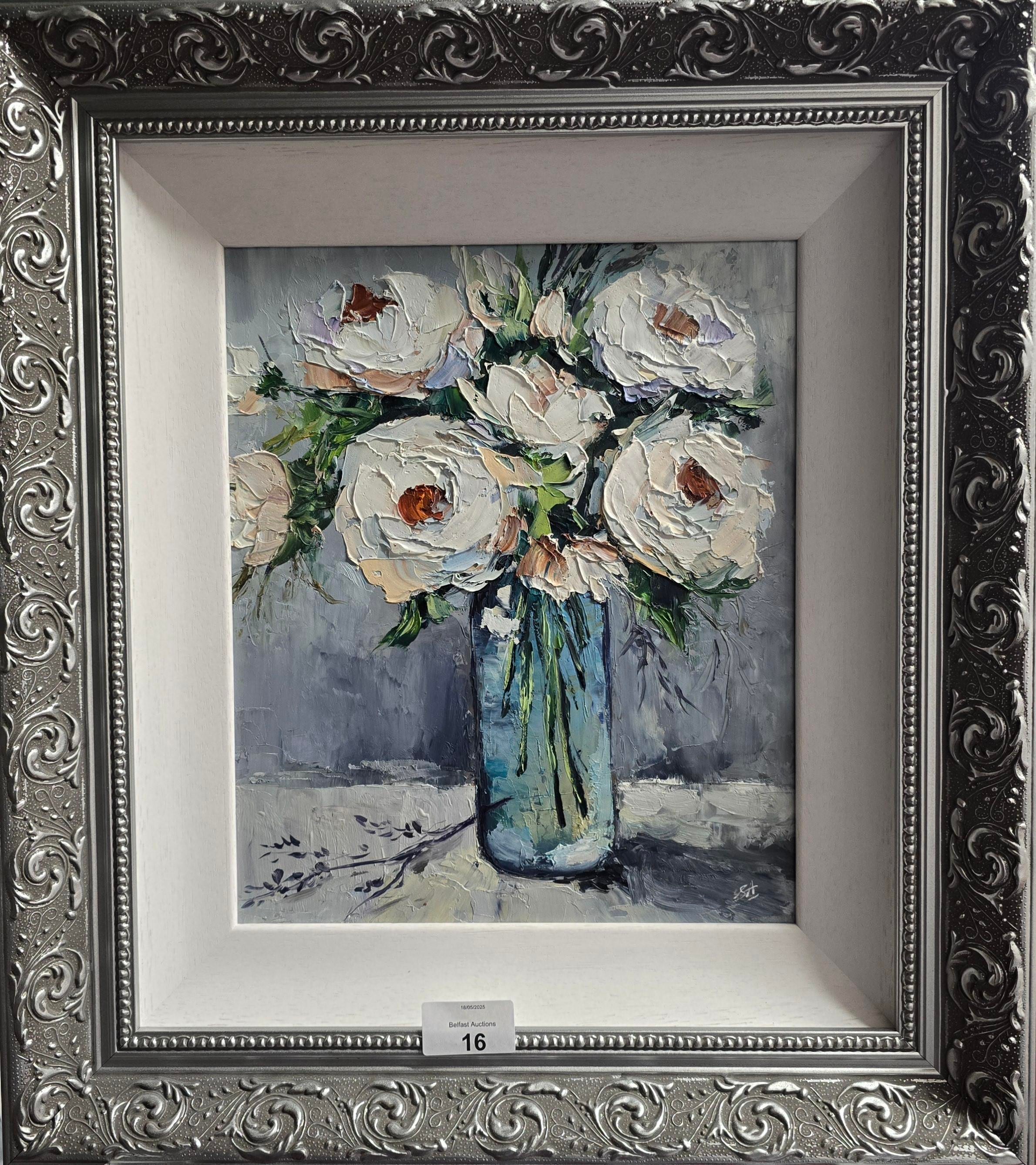 SARAH ADAMS ORIGINAL 12X10 OIL ON BOARD LONG GLASS VASE Inspired By Van Gogh