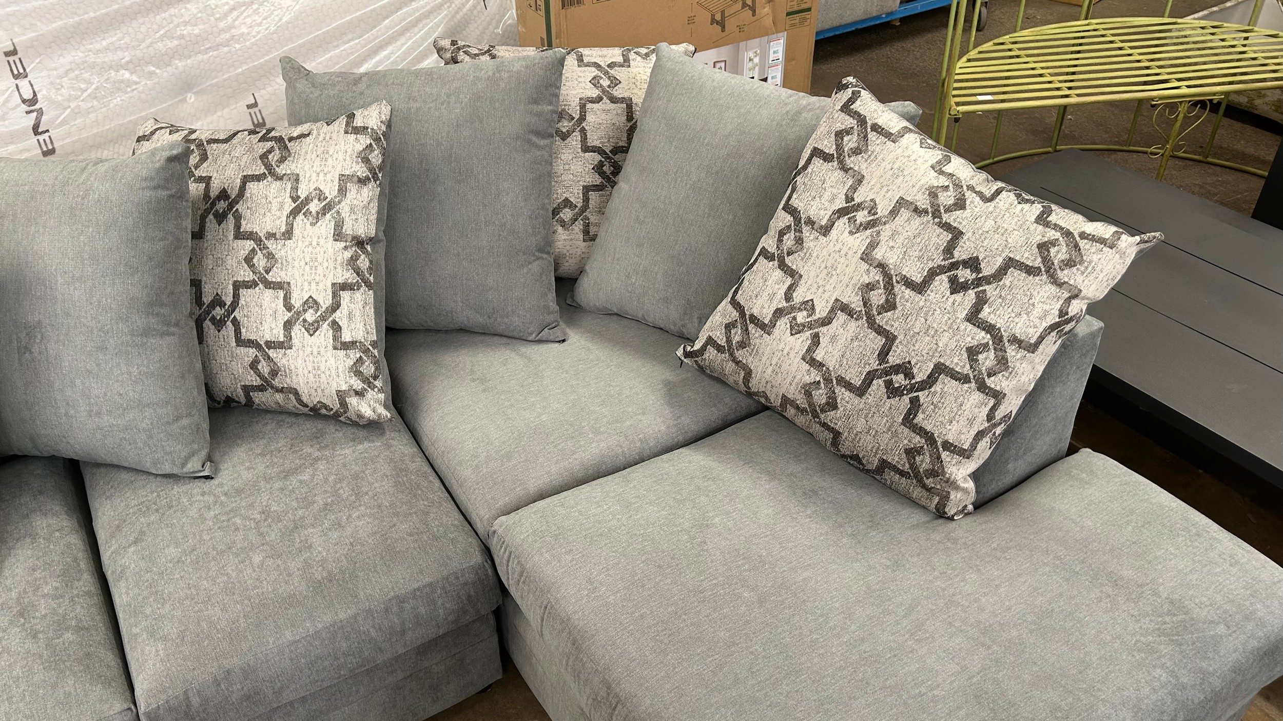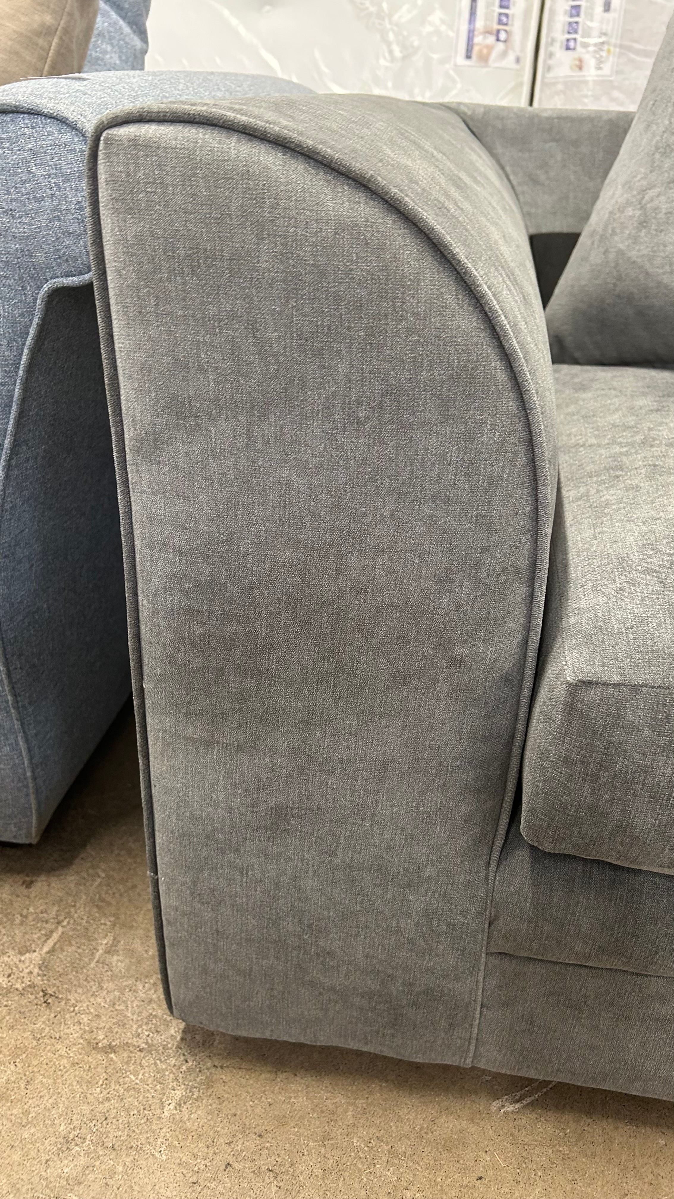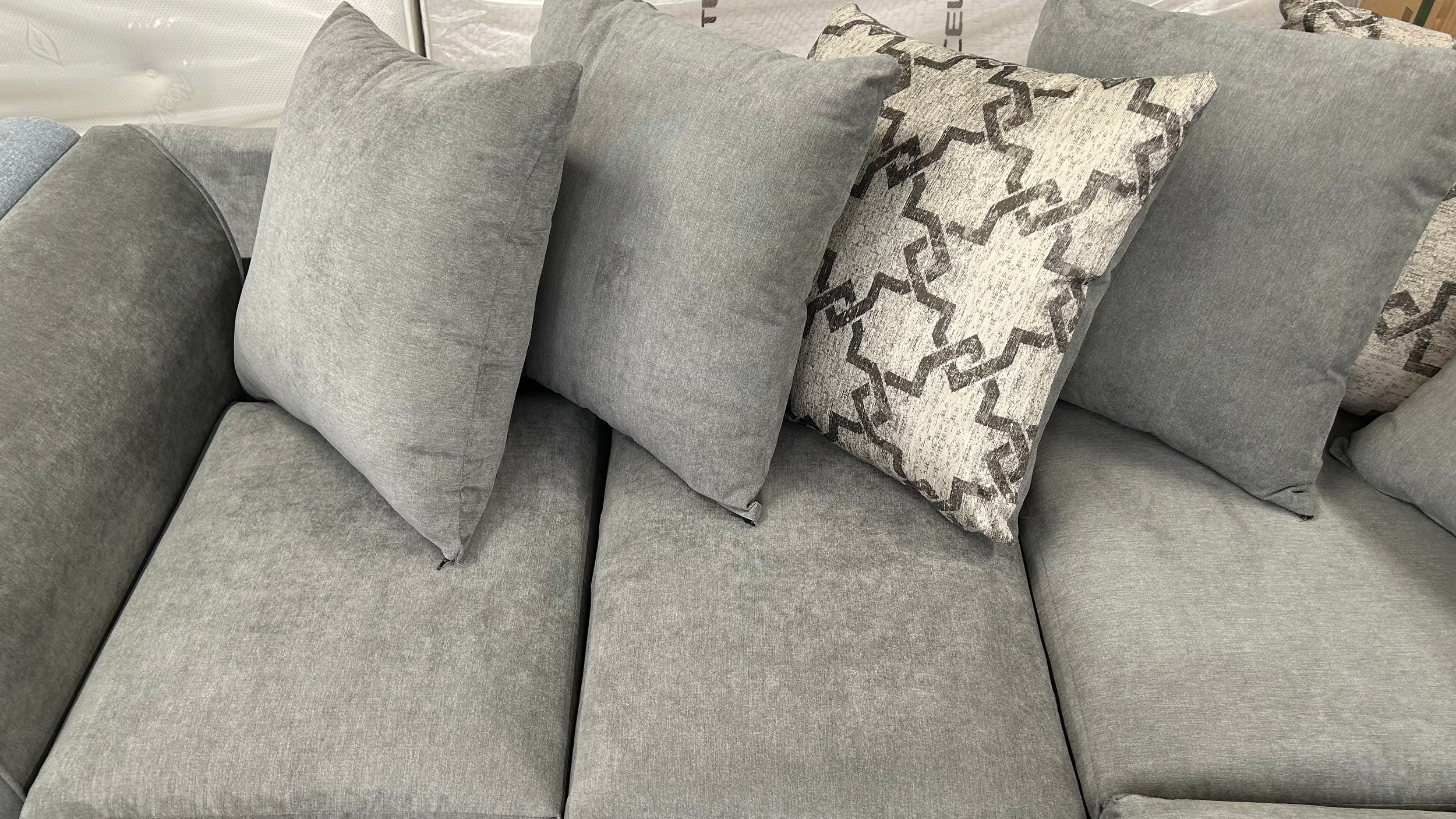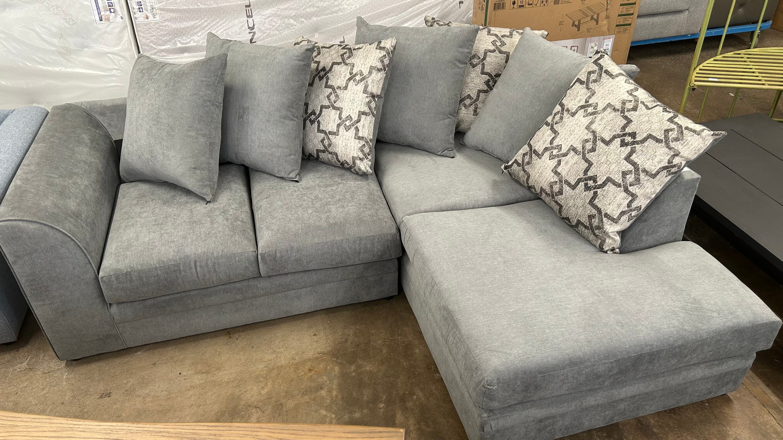 A shark grey fabric upholstered corner sofa