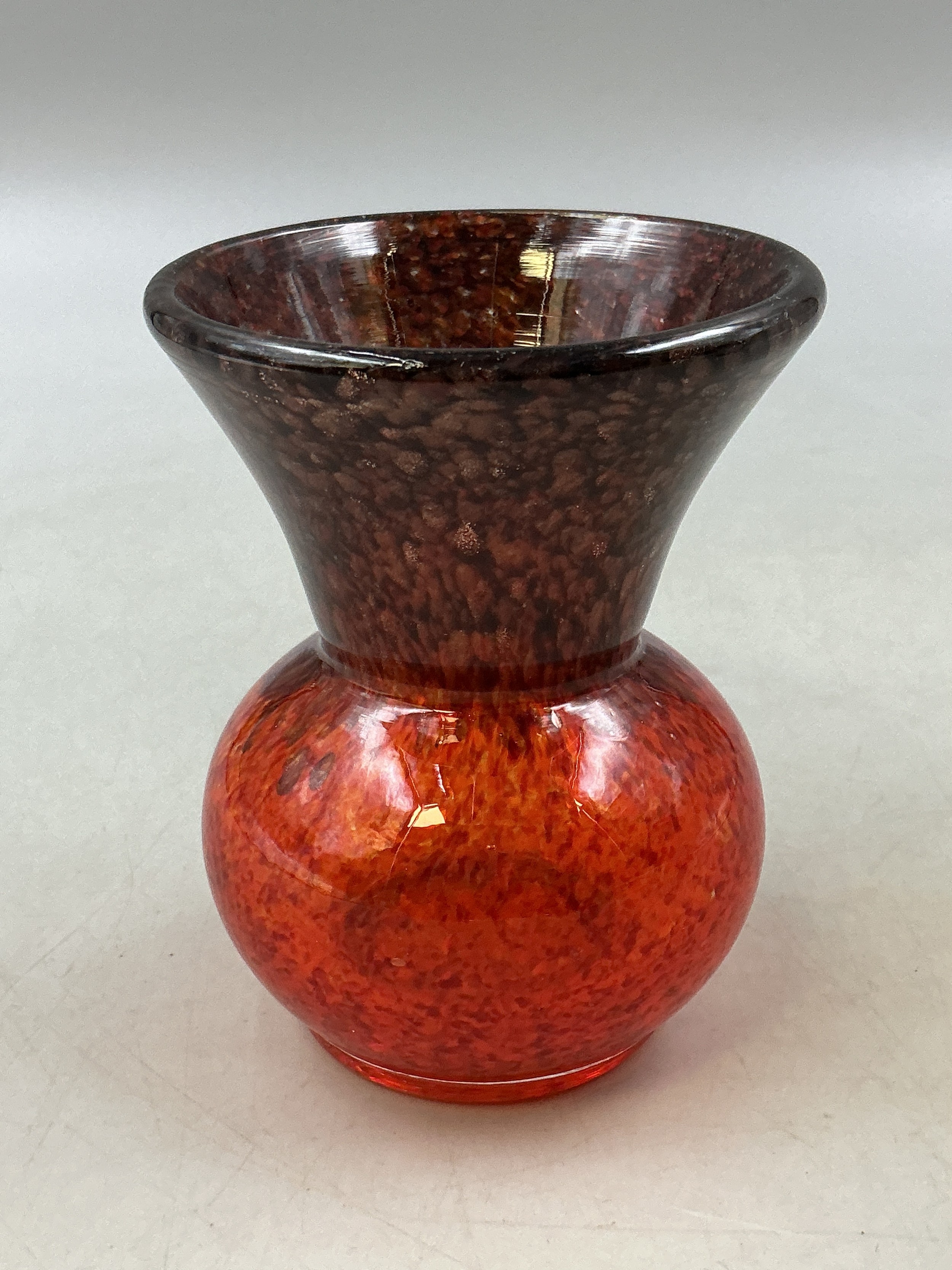 A Monart Style Mottled Red Art Glass Baluster Vase, Approx 10cm Tall