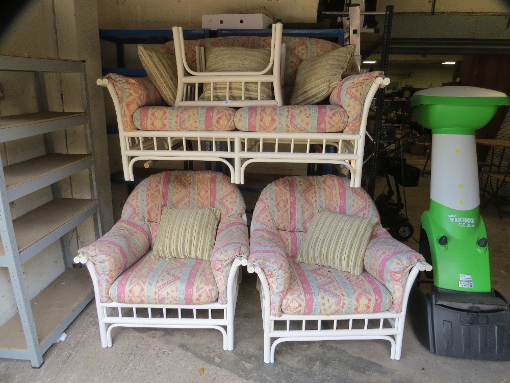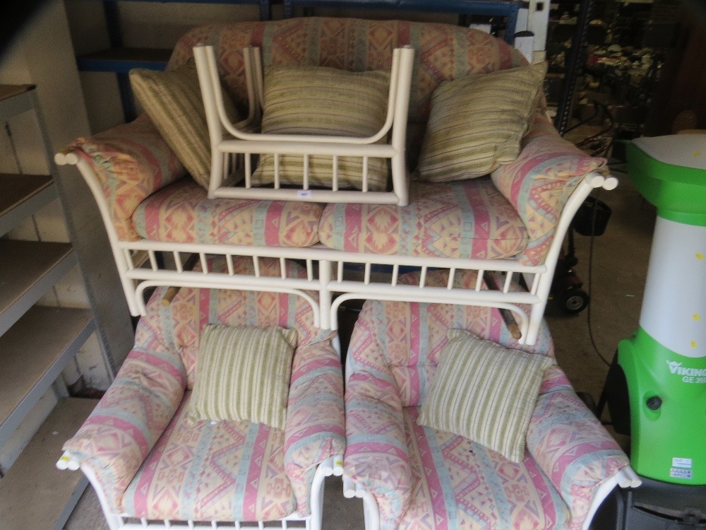 A white four piece bamboo style conservatory suite