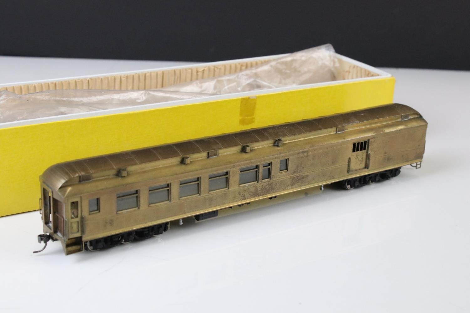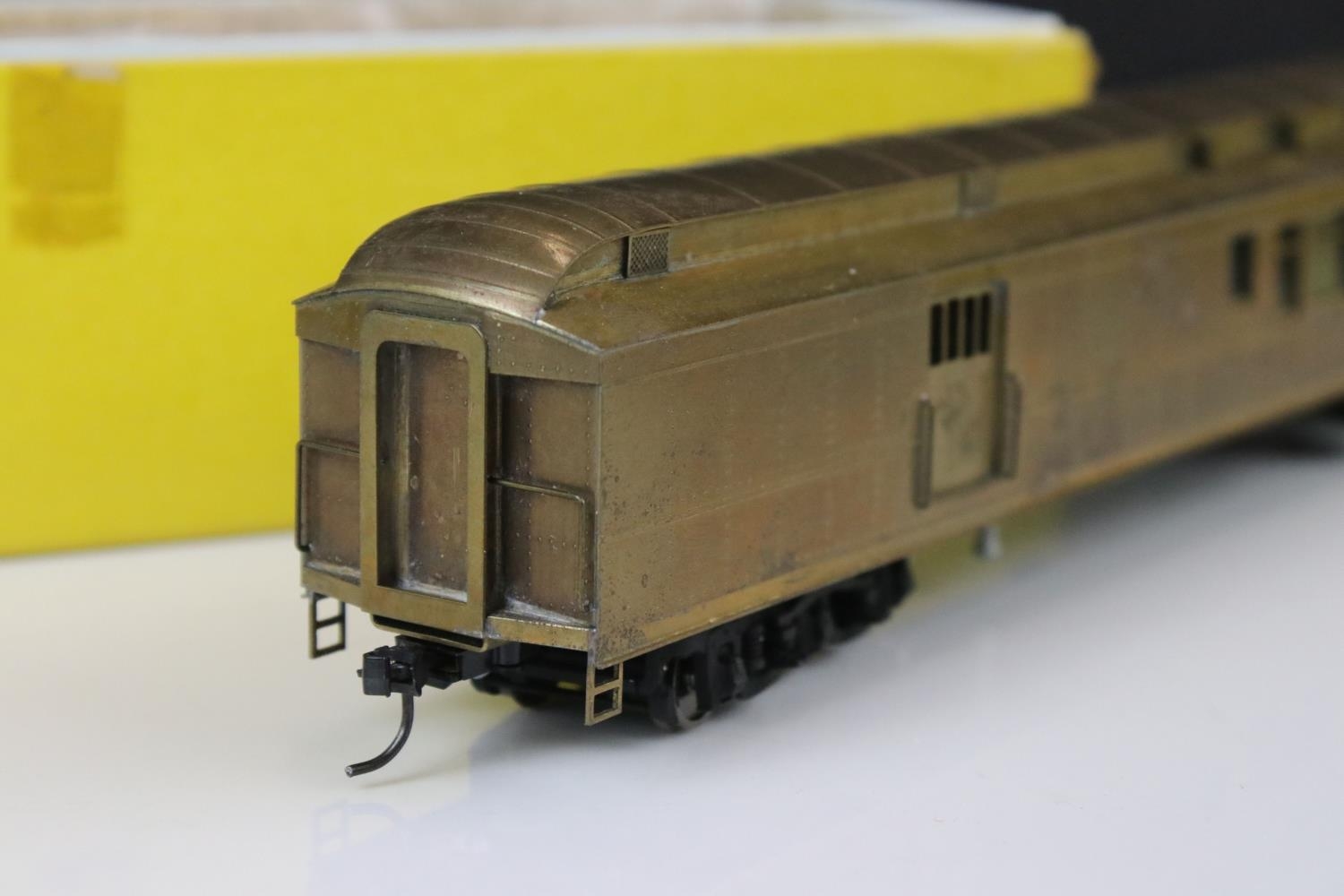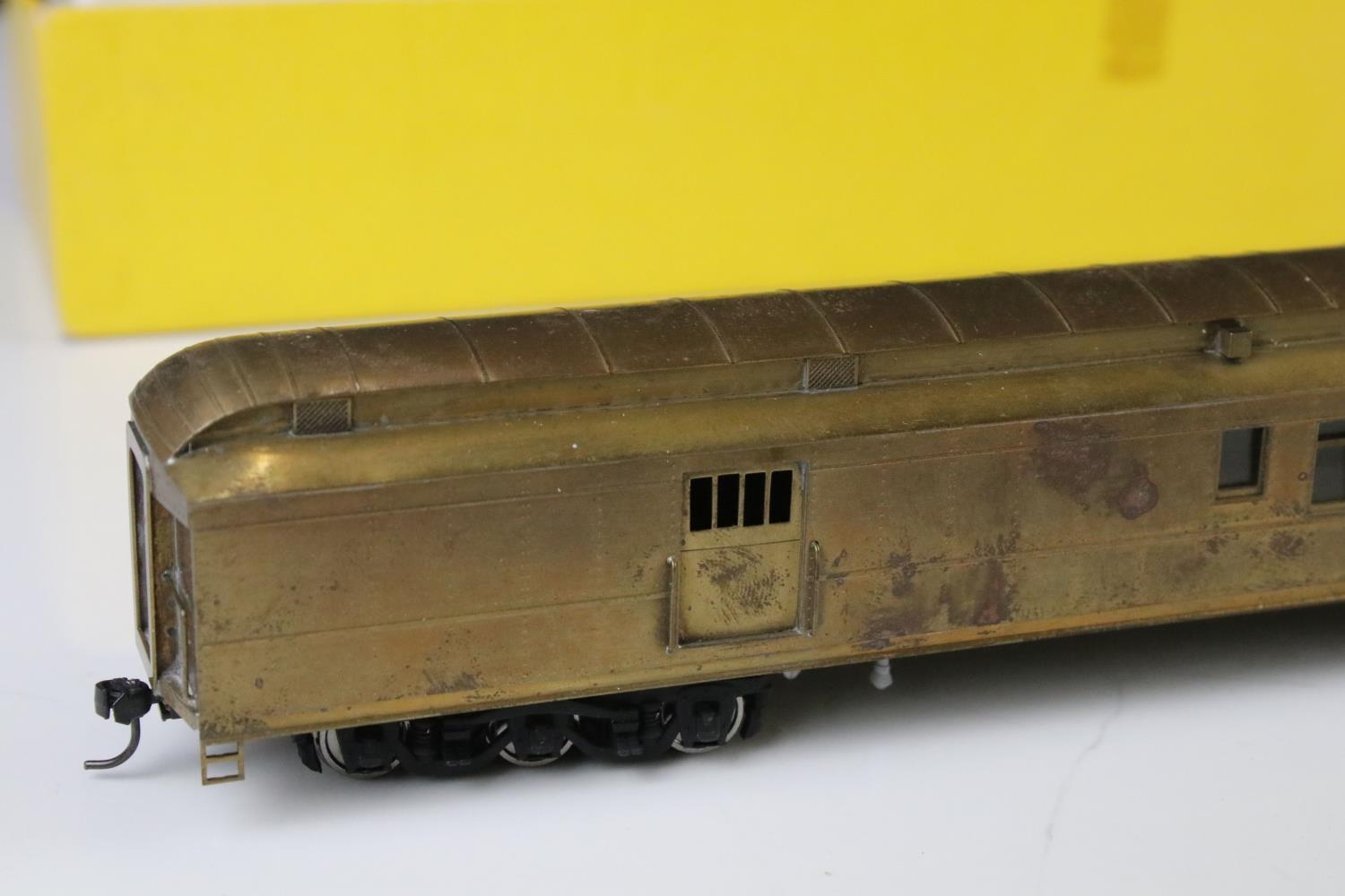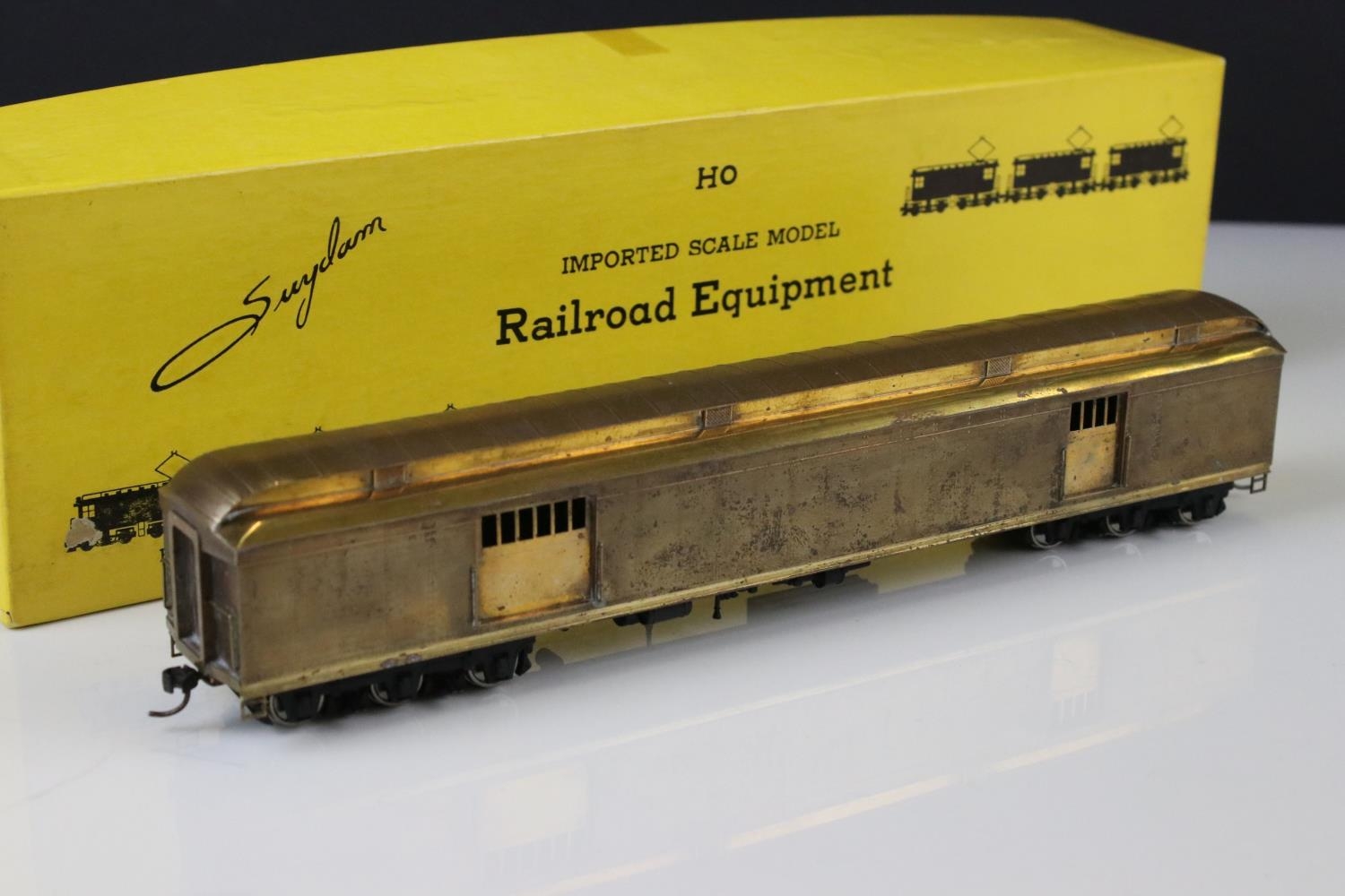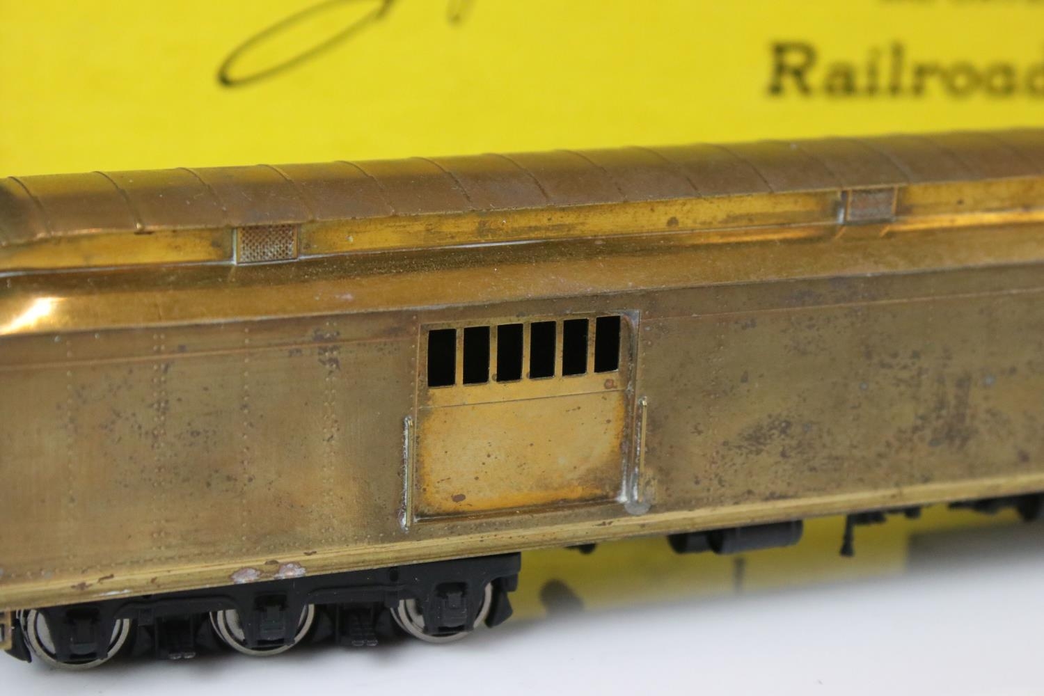 Three boxed E Suydam & Co HO Railroad Equipment Baggage Car brass models to include 2 x RR-7 (one painted) and 1 x RR-5, appearing good, boxes gd