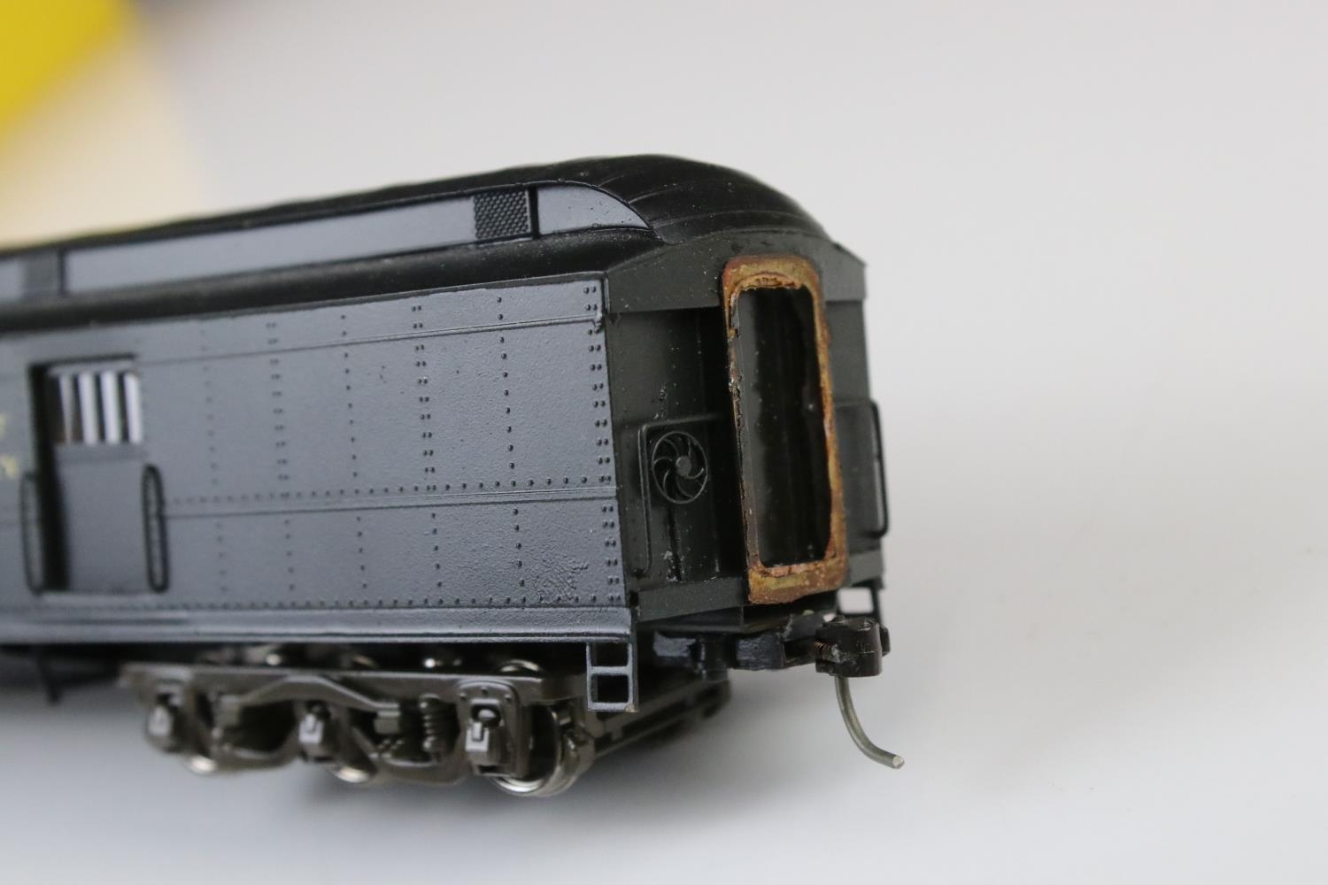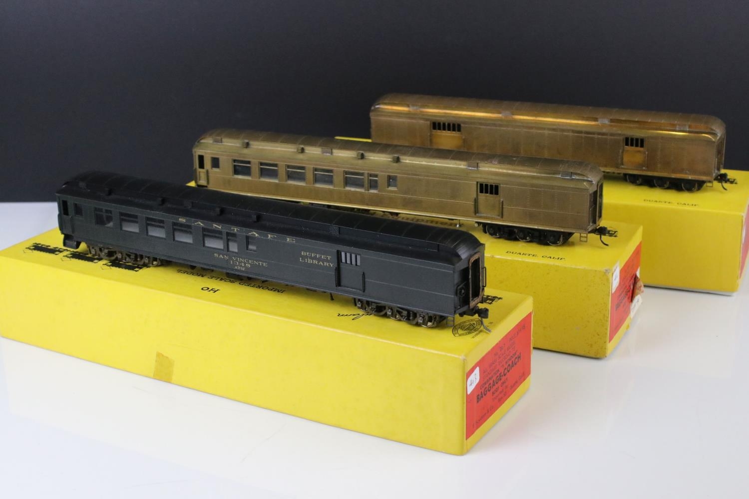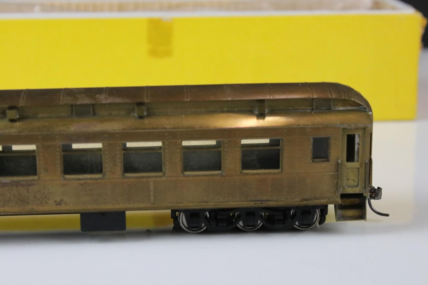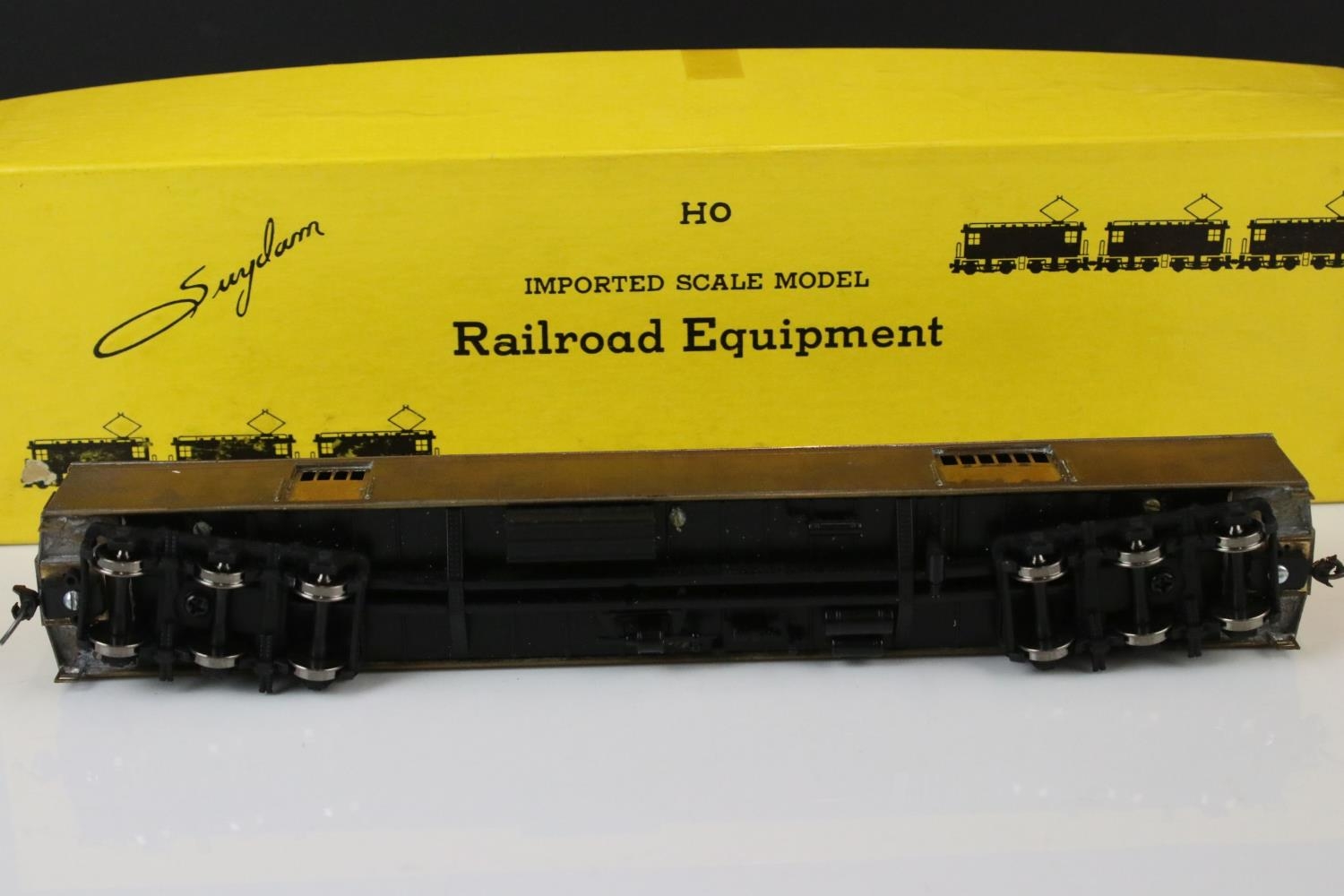 Three boxed E Suydam & Co HO Railroad Equipment Baggage Car brass models to include 2 x RR-7 (one painted) and 1 x RR-5, appearing good, boxes gd