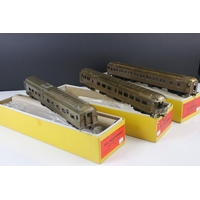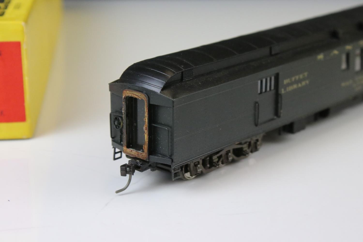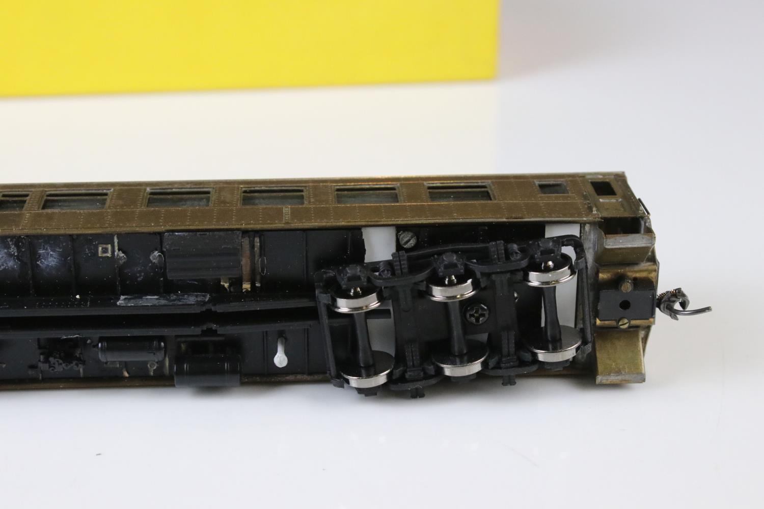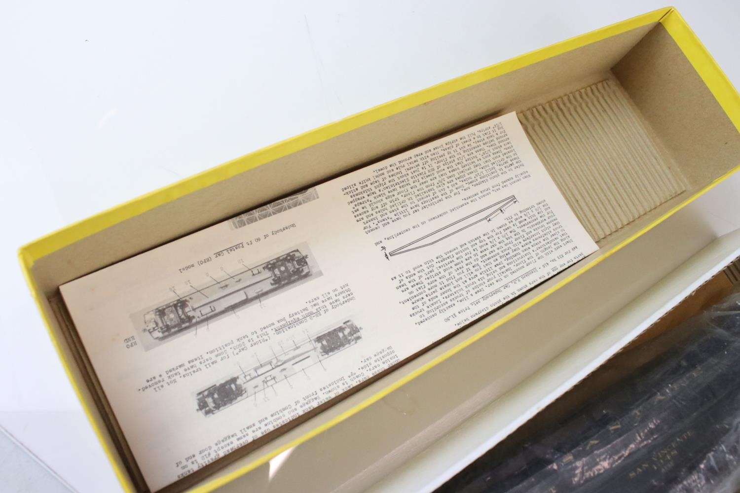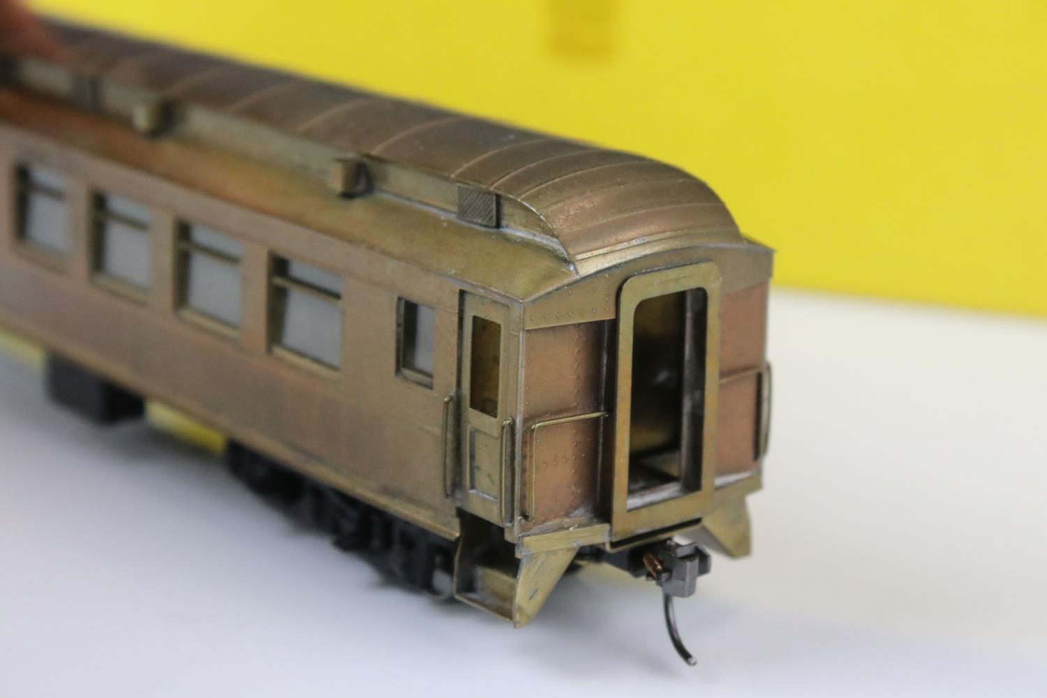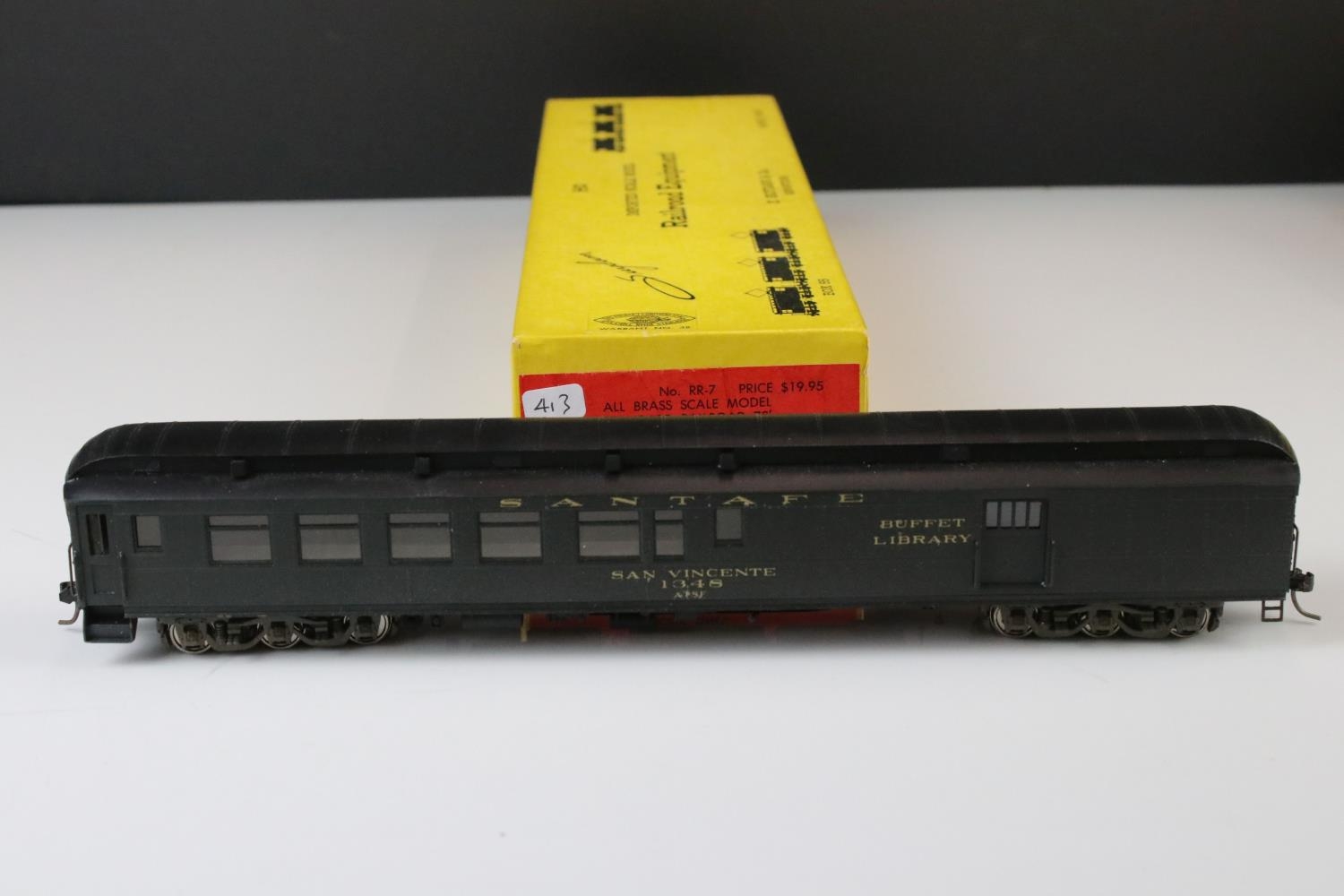 Three boxed E Suydam & Co HO Railroad Equipment Baggage Car brass models to include 2 x RR-7 (one painted) and 1 x RR-5, appearing good, boxes gd