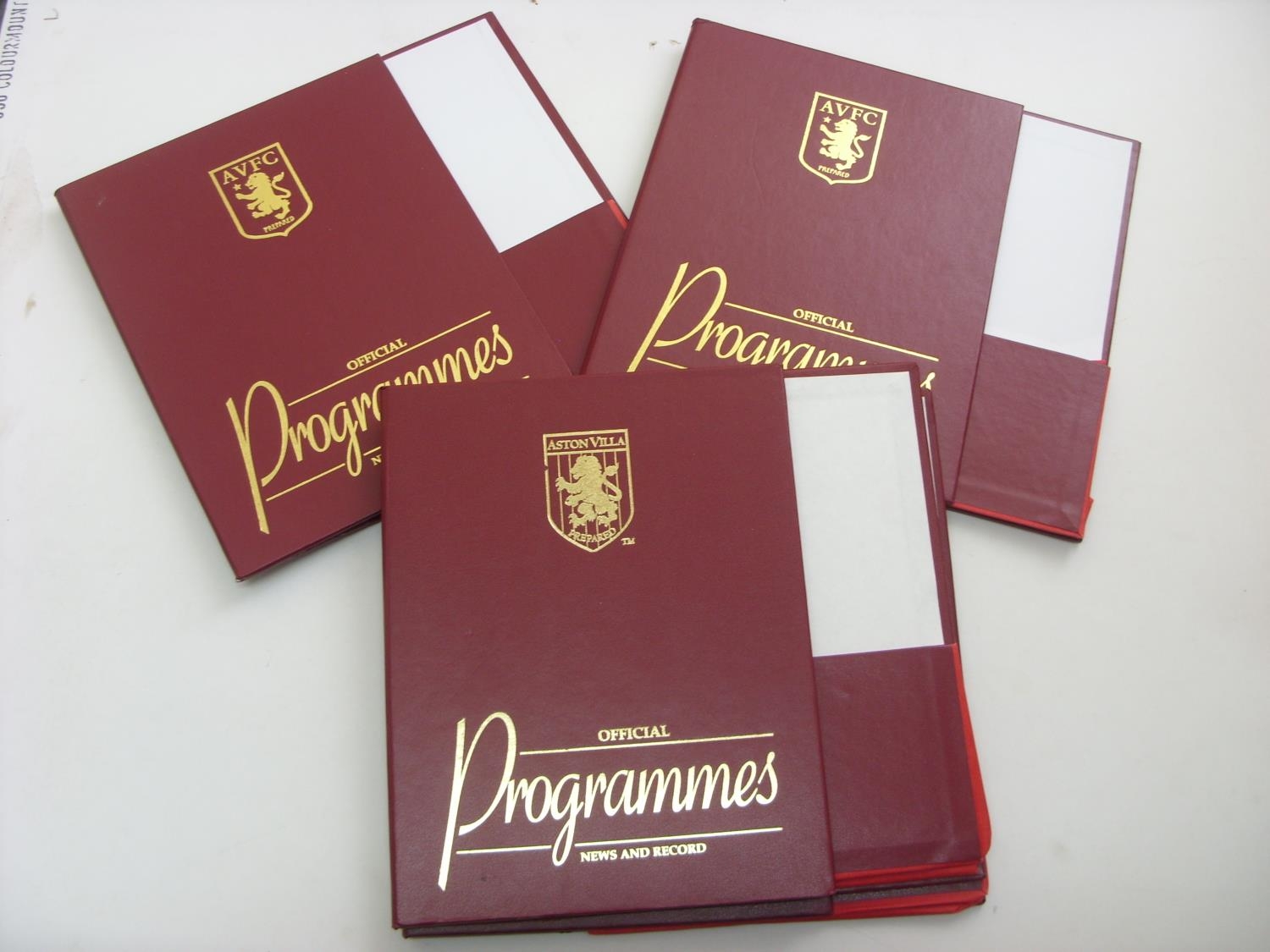 ASTON VILLA, 2005-2009, a collection of 4 Official Programme 'Box' Binders, each is embossed with gold lettering, season & club badge, for the seasons 2005/2006, 2006/2007, 2007/2008 & 2008/2009. Estimate: £12/£14 - Opening Bid: £10