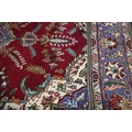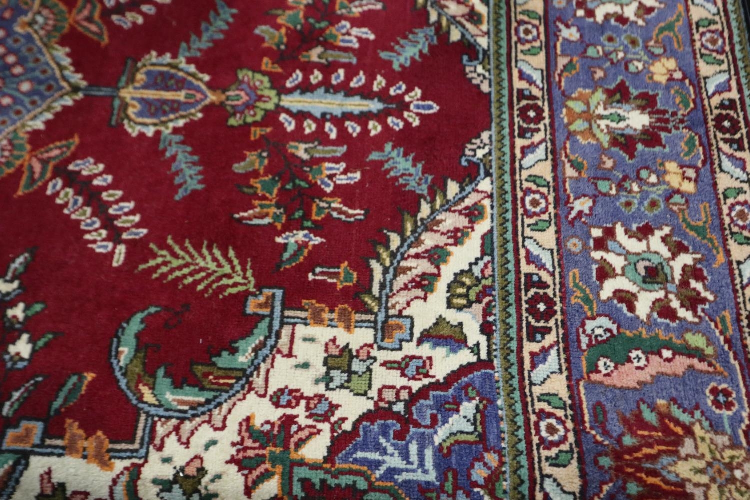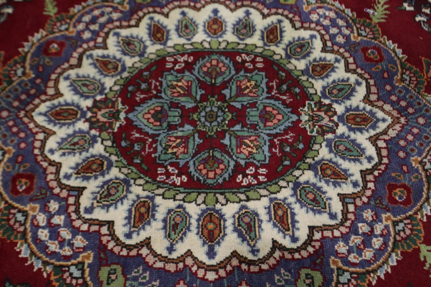 A large 20th century red ground woollen rug, 210 x 290 cm. Not available for in-house P&P