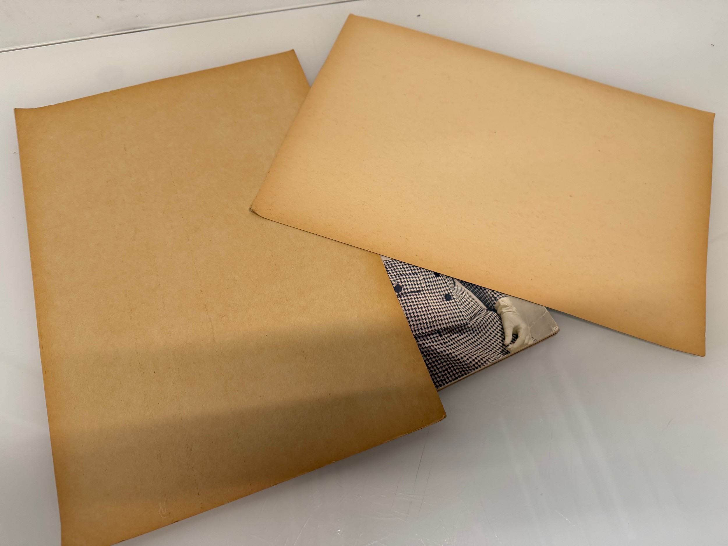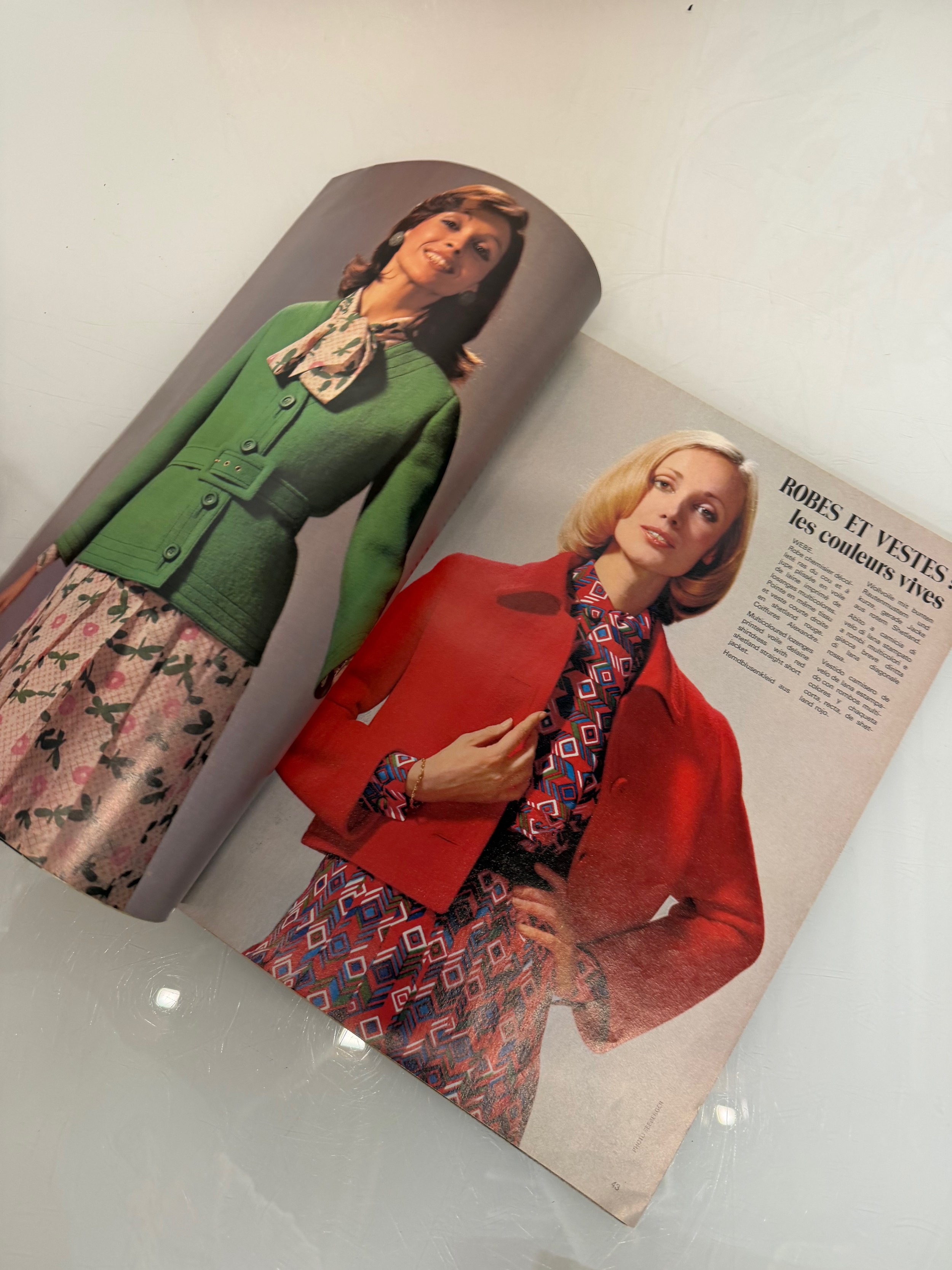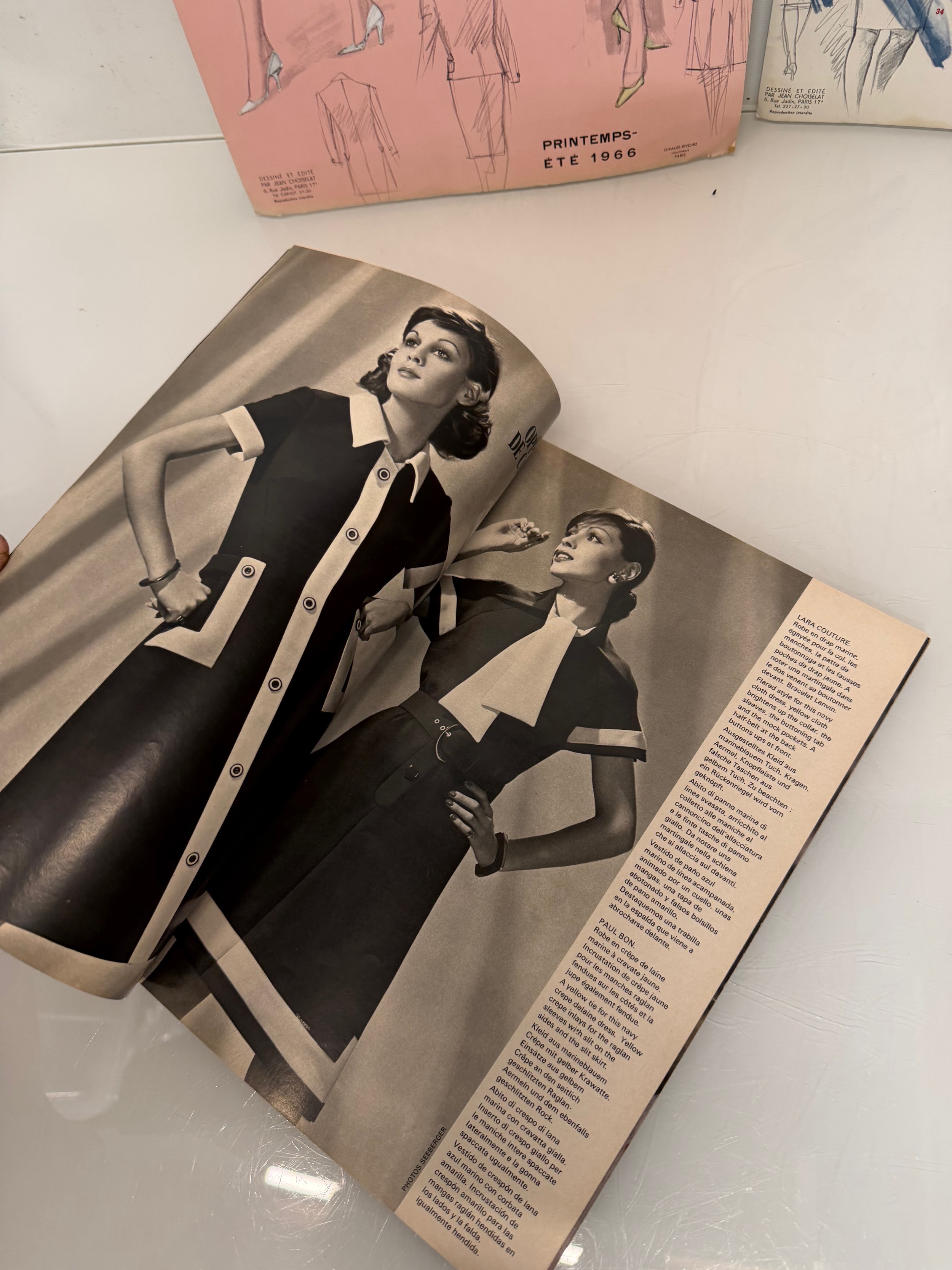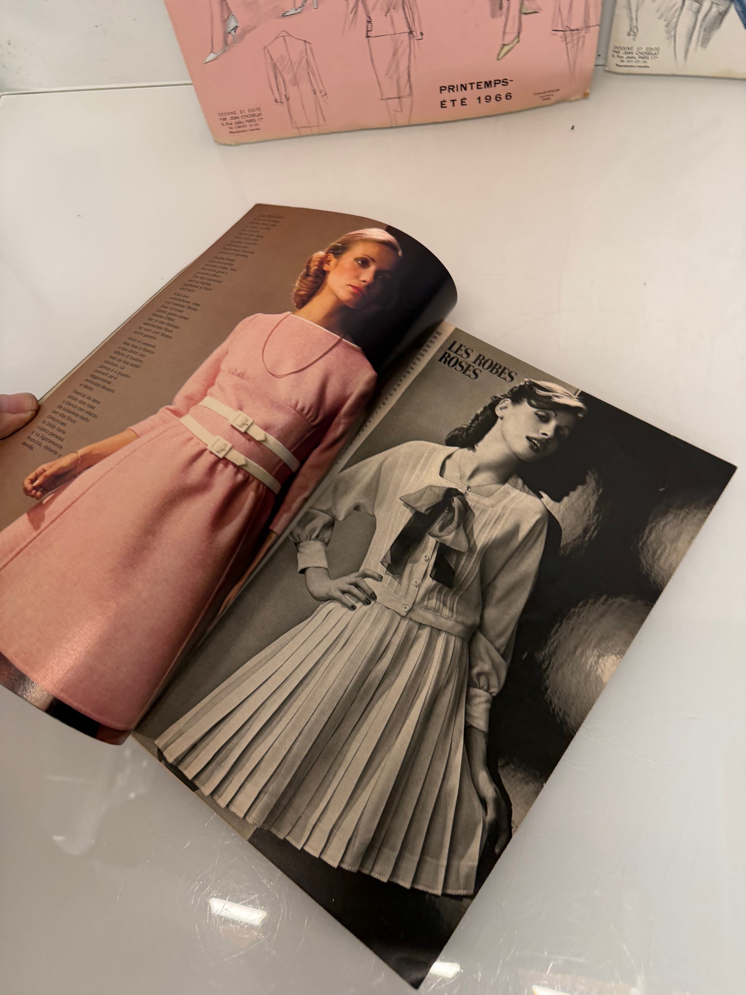 Vintage Fashions, a manufactuers posters on board for 1960 ladies clothing, with a 1973 brochure.