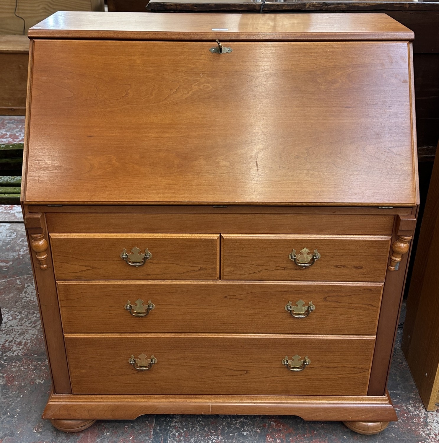 A William Lawrence cherrywood bureau - approx. 107cm high x 97cm wide x 52cm deep