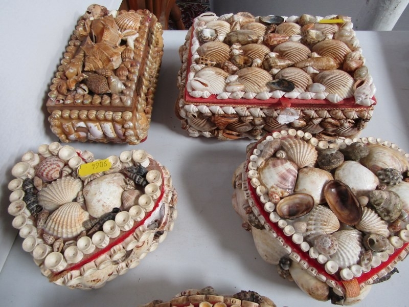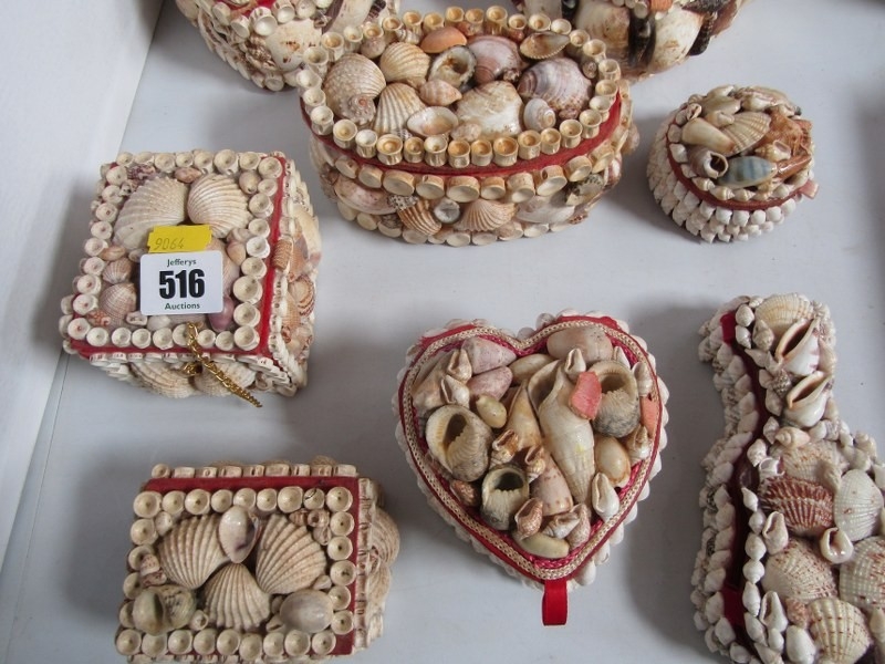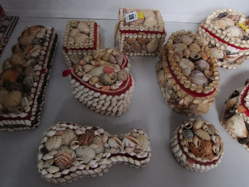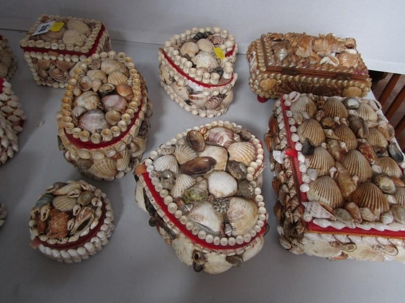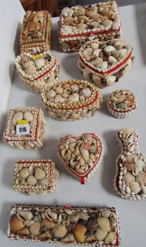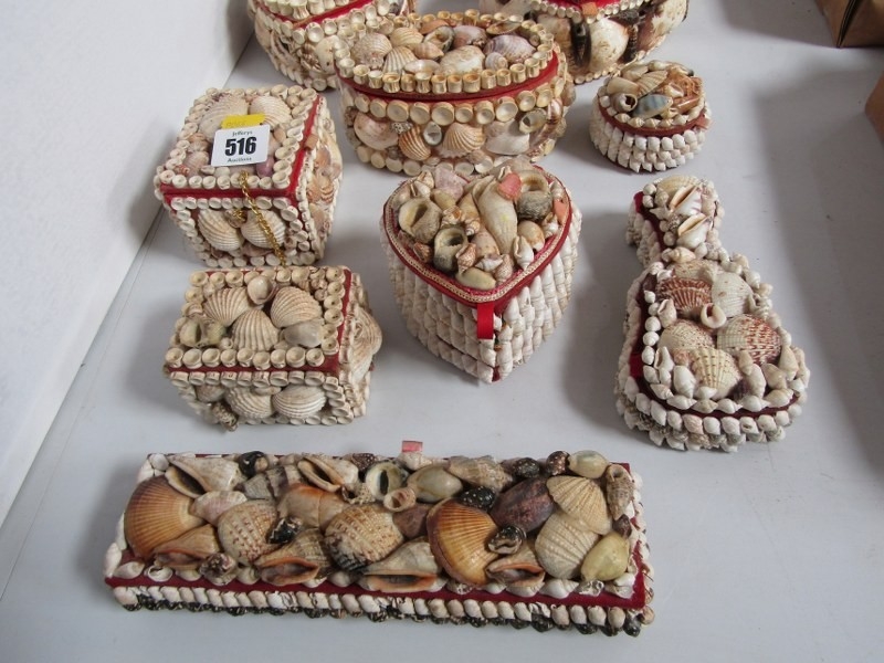 SHELL BOXES, 11 various vintage shell jewellery and trinket boxes