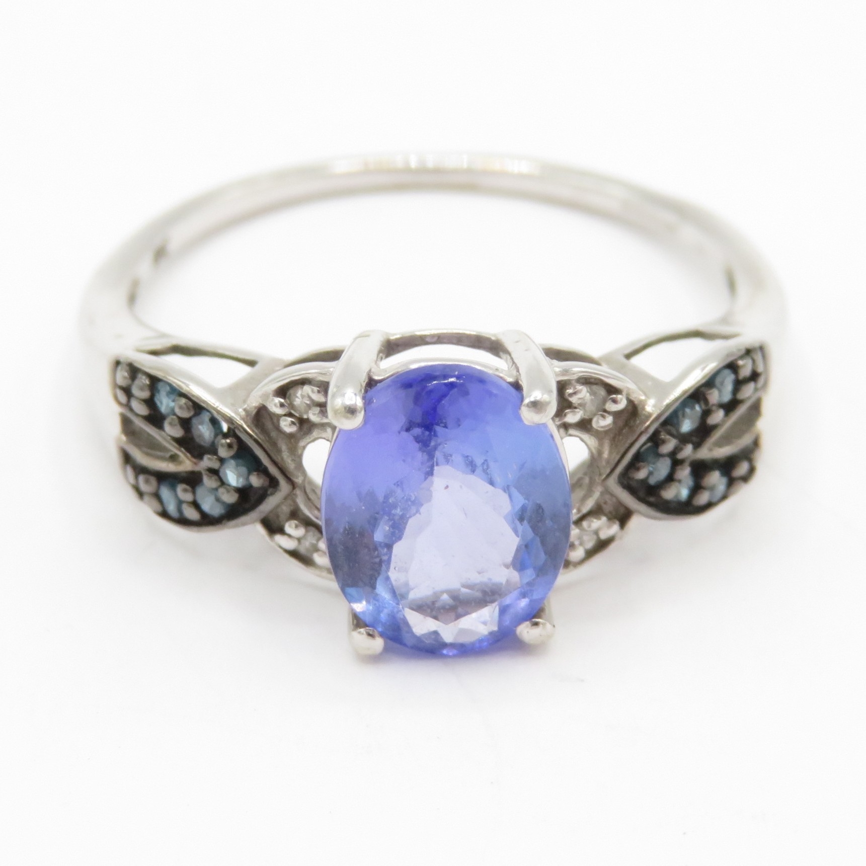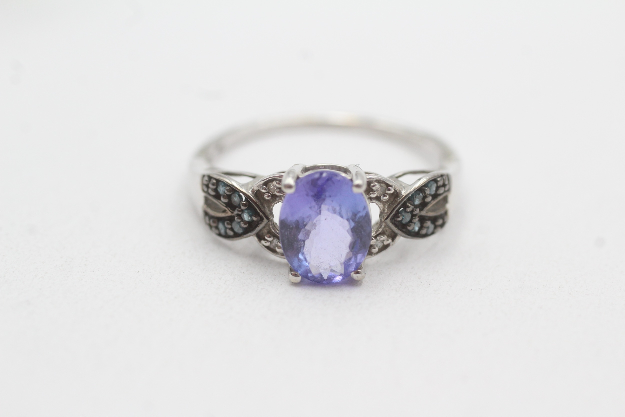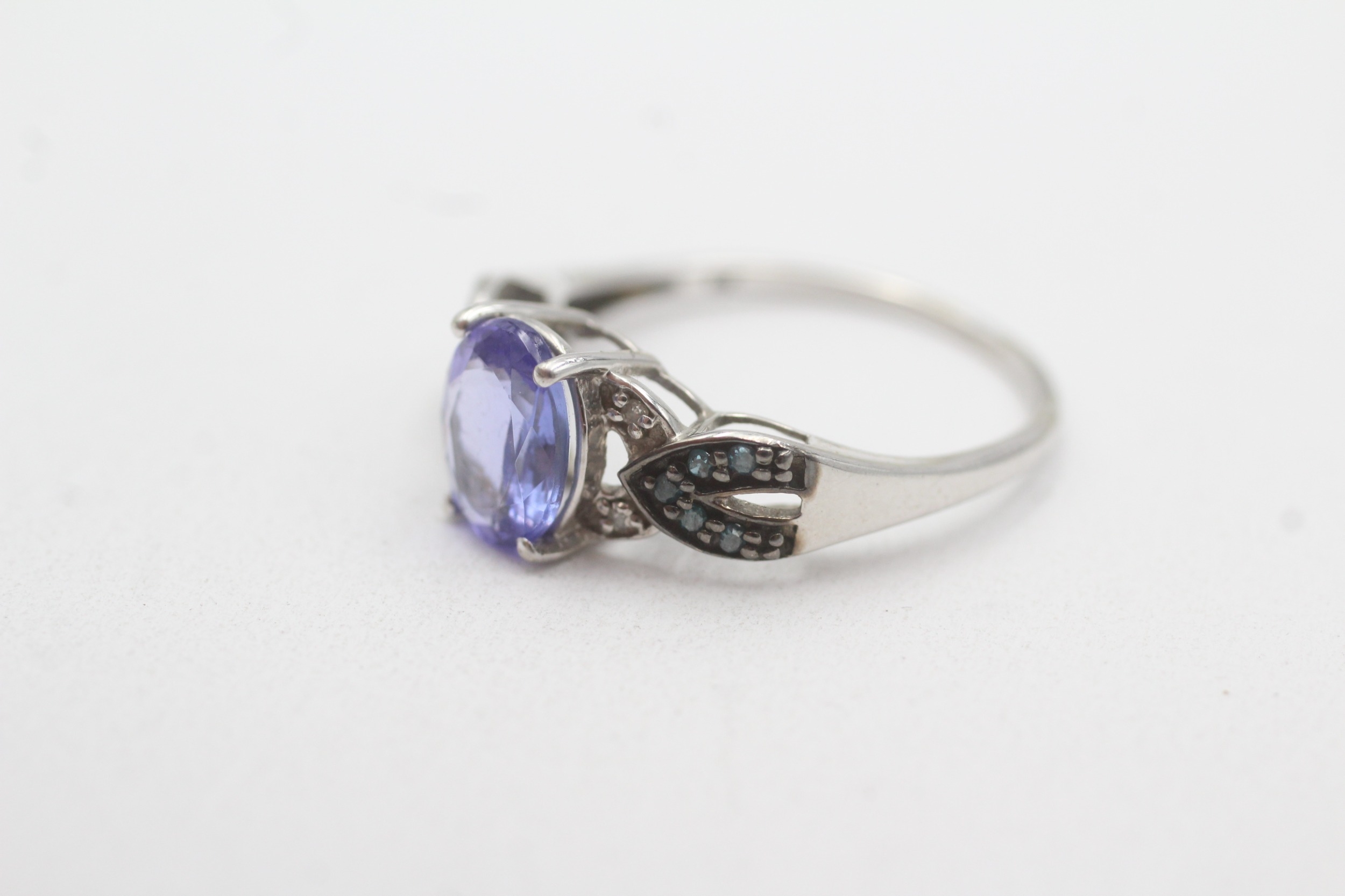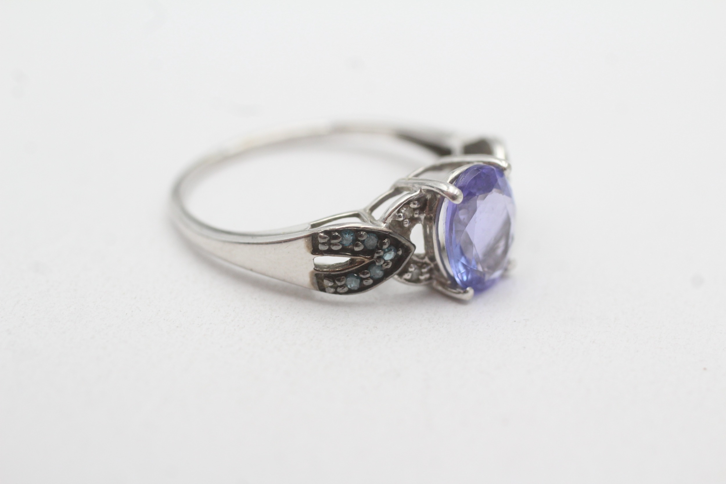 9ct gold tanzanite & diamond dress ring (2.5g) Size R 1/2
