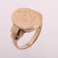 An Antique 9ct rose gold signet ring, oval panel with engraved initials EC, and stepped shoulders, setting height 14.3mm, size I, 3.7g