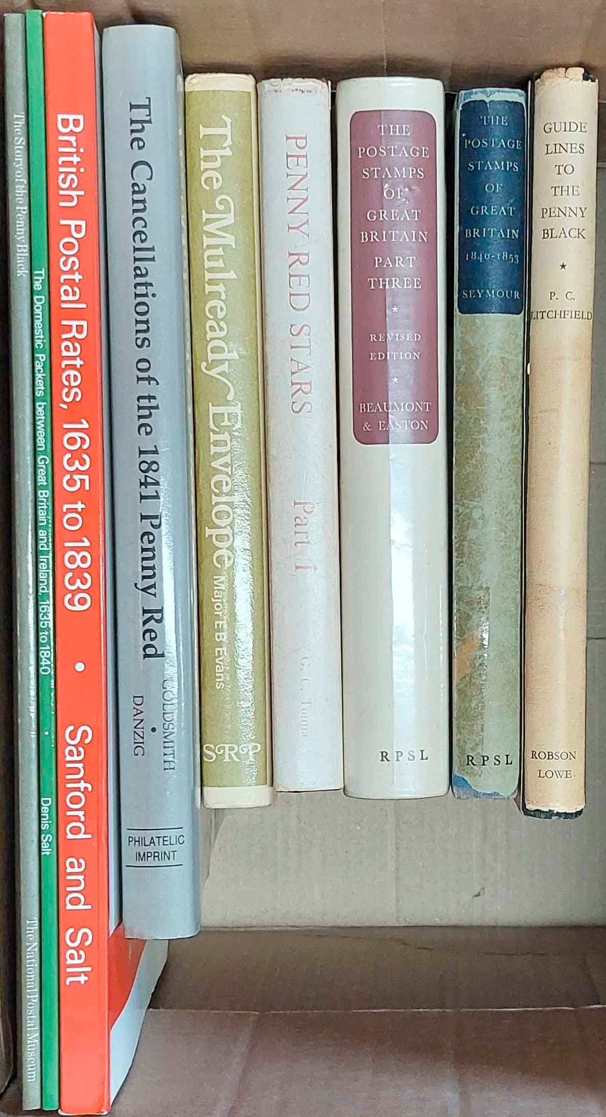 MISCELLANY: Cancellations of the 1841 1d Red by Goldsmith & Danzig; The Mulready Envelope by Evans (SG Reprint); Penny Red Stars by Tonna; British Postal Rates 1635-1839 by Sandford & Salt; etc. (9)Cross Reference: GREAT BRITAIN, CANCELLATIONS