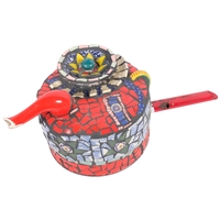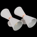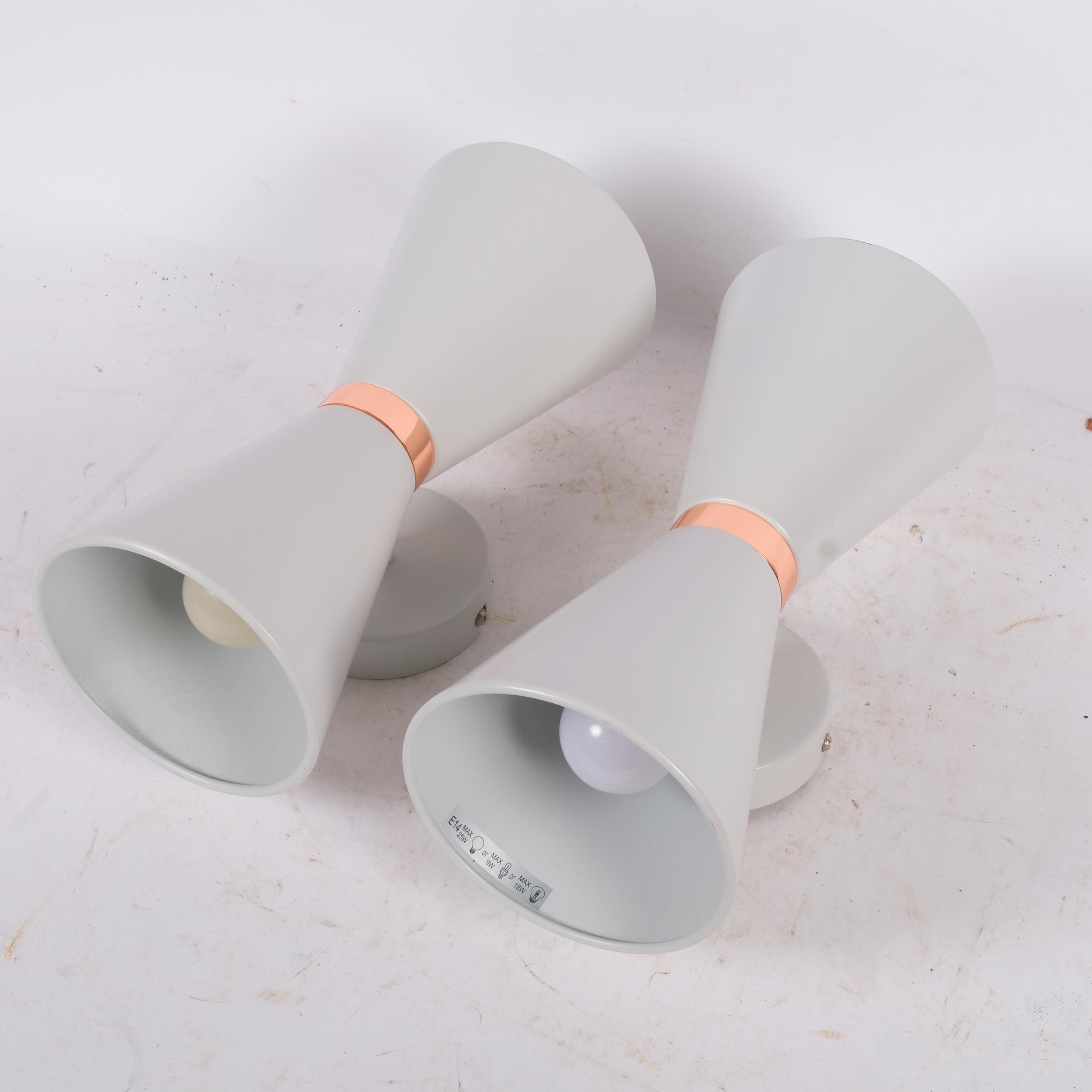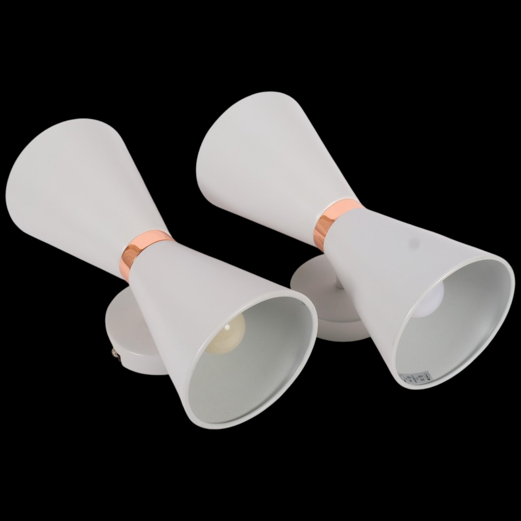 A pair of contemporary mid-century design wall lights, in the form of Diabolos, with copper waistline, L30cm